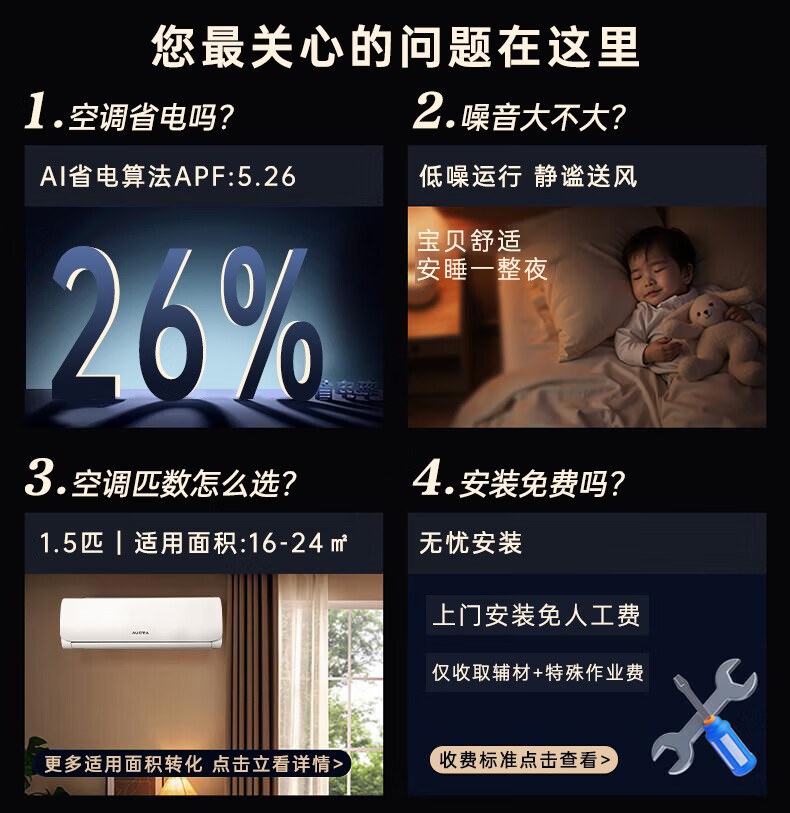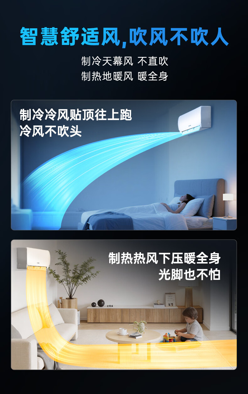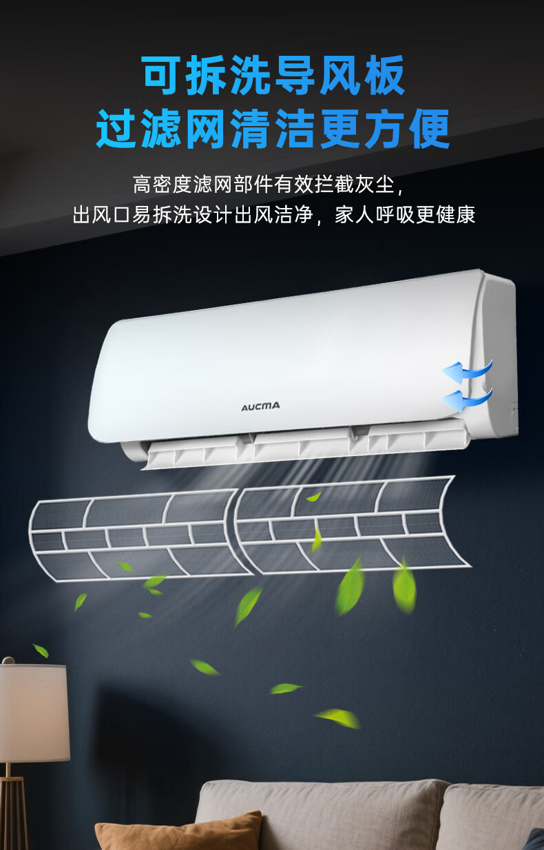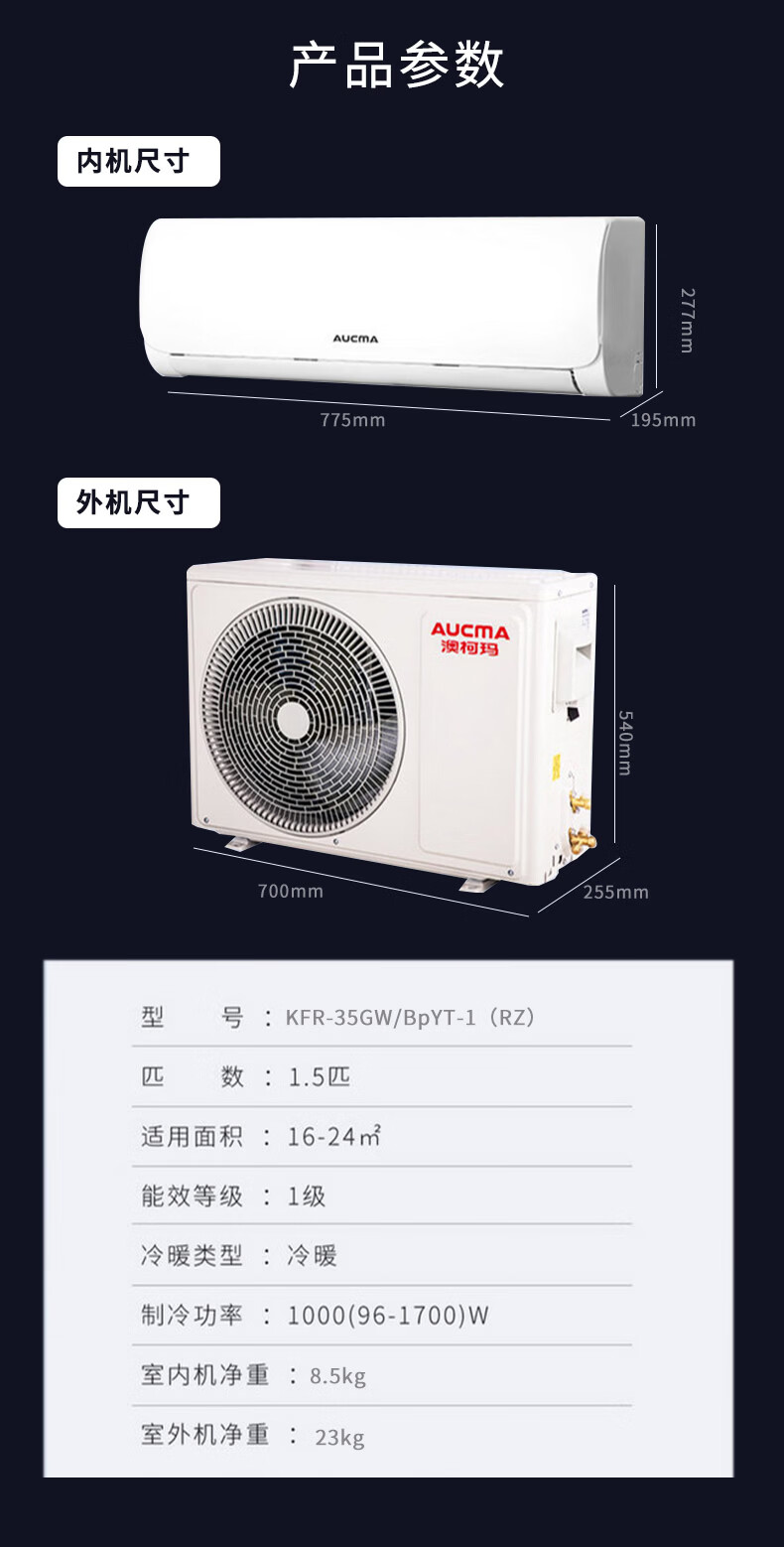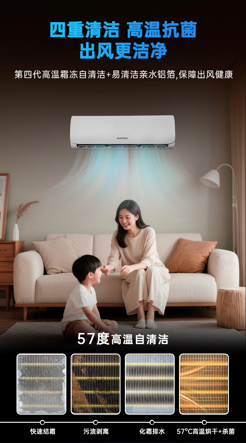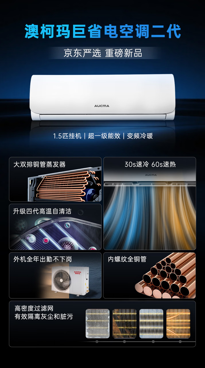 Aucma JD.com co-branded giant power-saving second-generation 1.5-horsepower new first-class energy-efficiency inverter home heating and cooling wall-mounted bedroom double-row copper tube comfortable wind KFR-35GW/BPYT-1 (RZ)