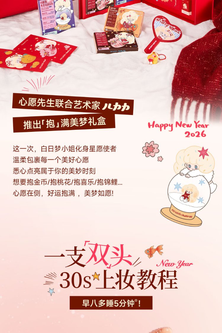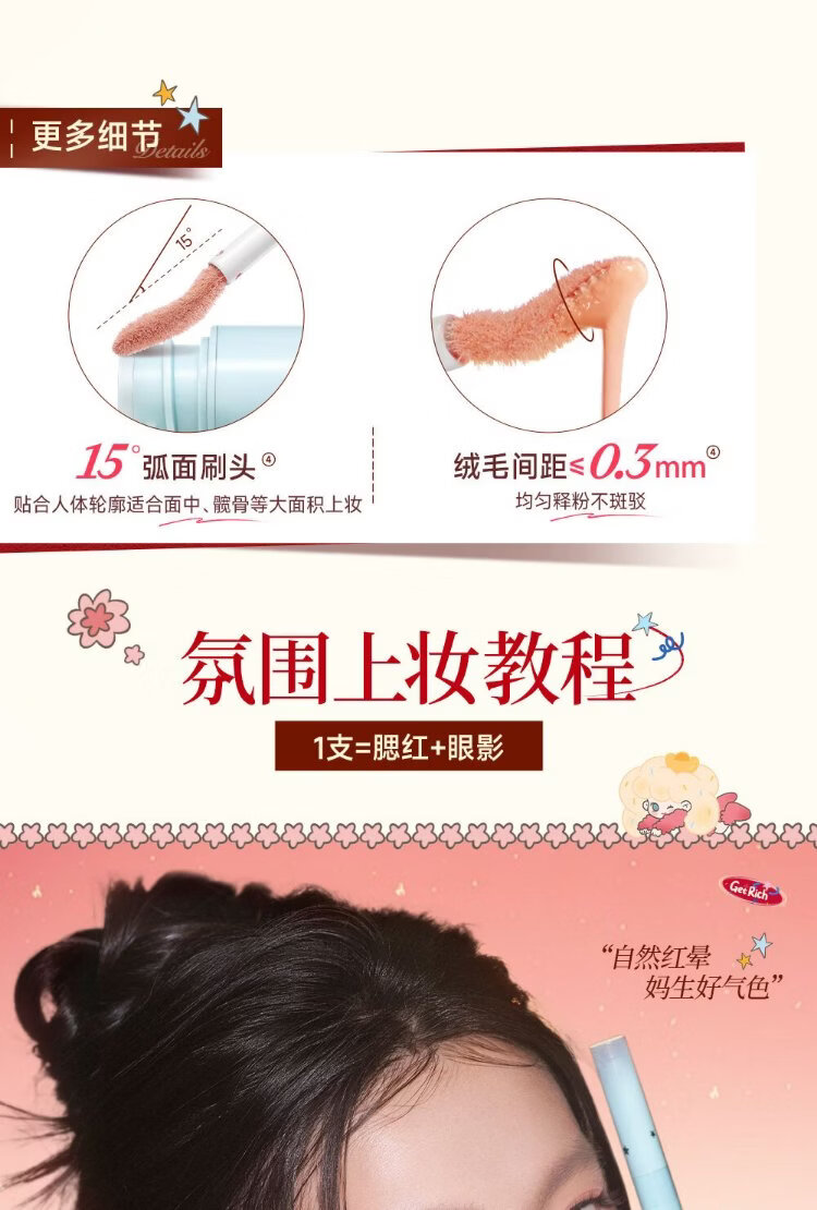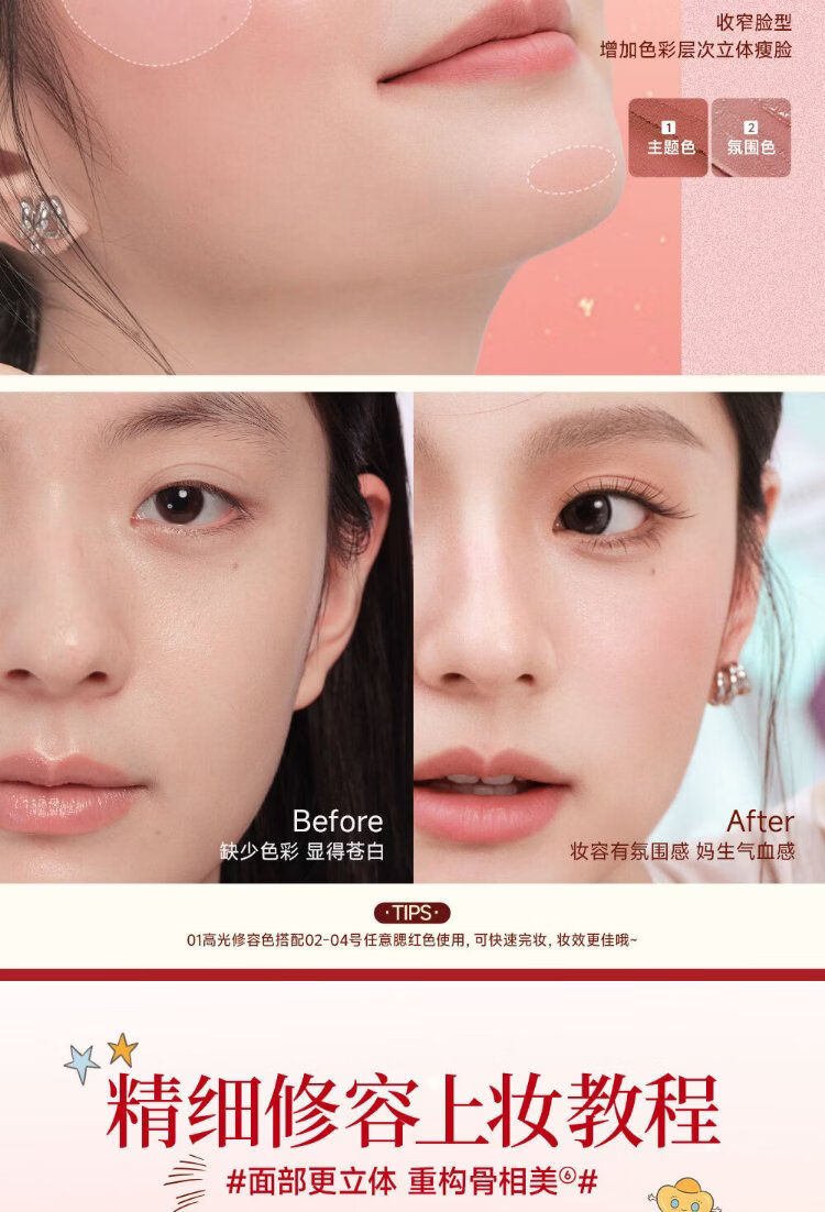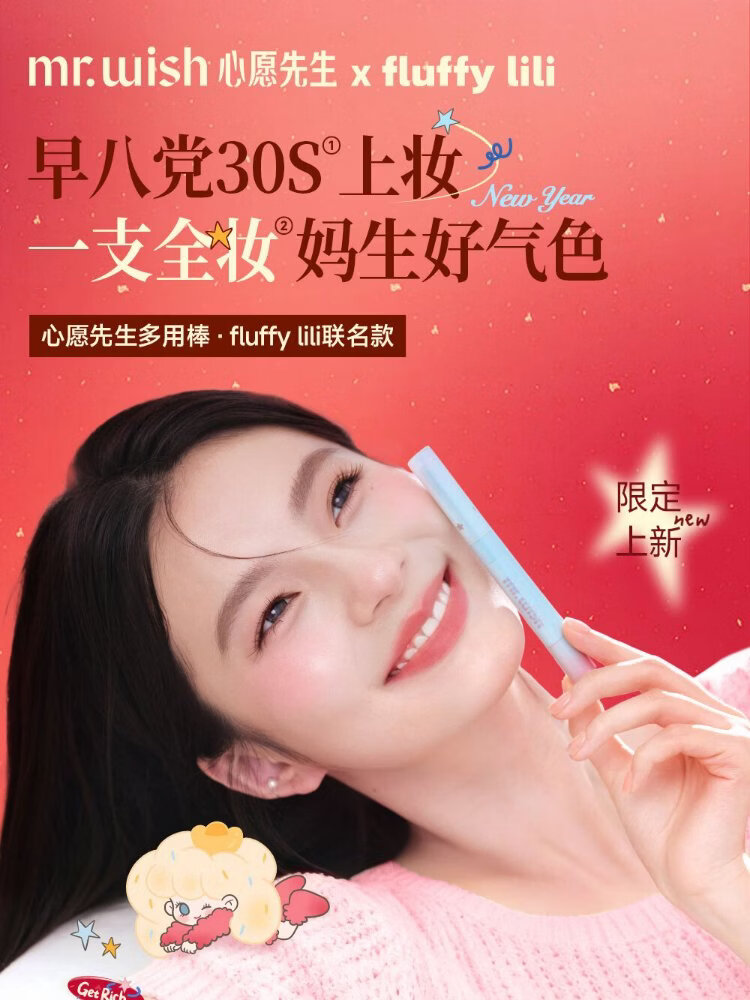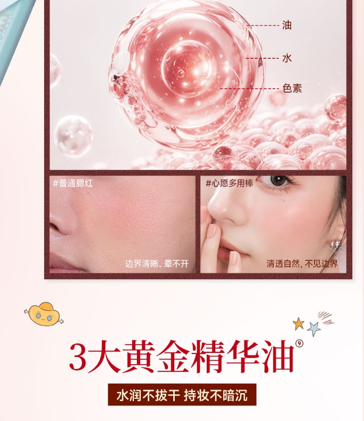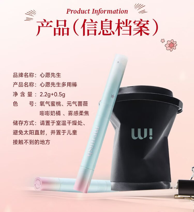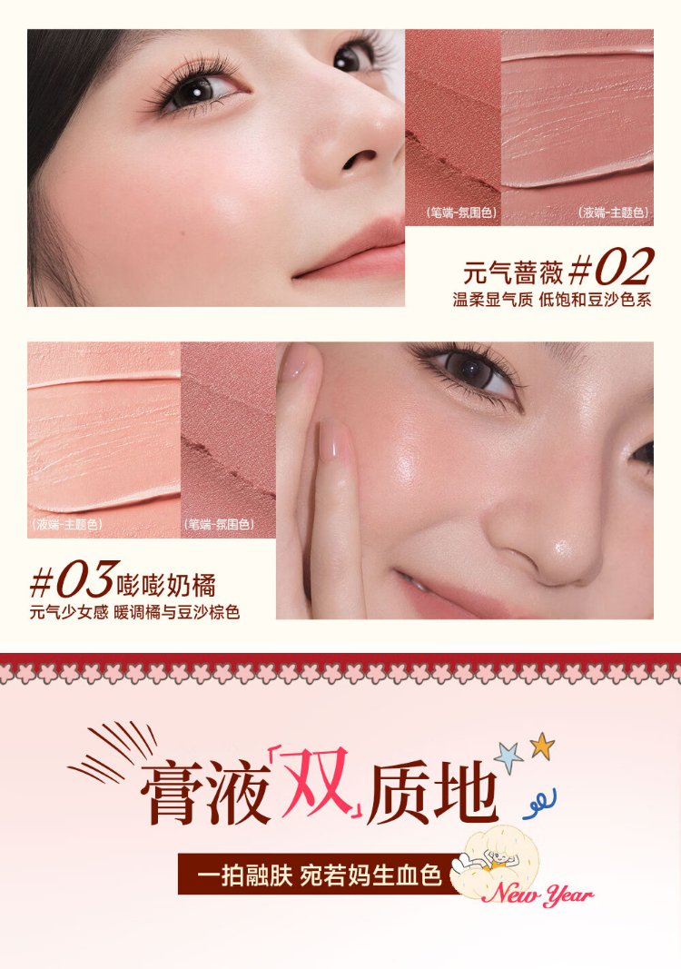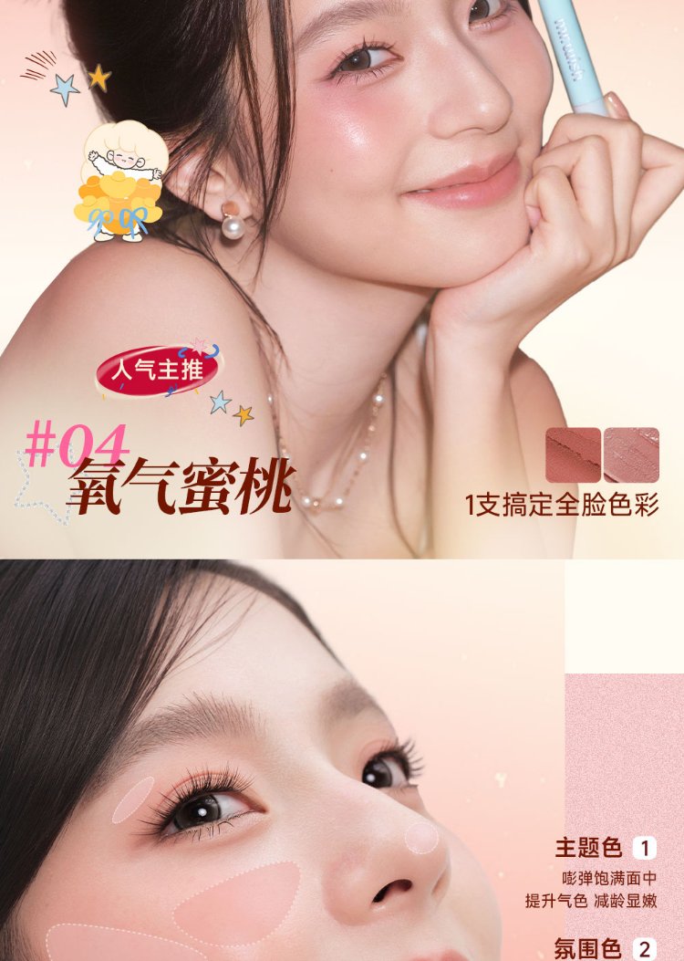 Mr. Wish, use stick blush and play with color eye shadow to contour and brighten delicately. Give your girlfriend a New Year gift. Oxygen Peach 04