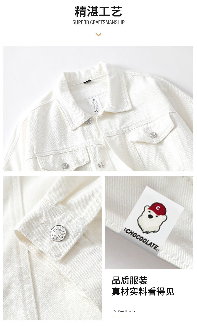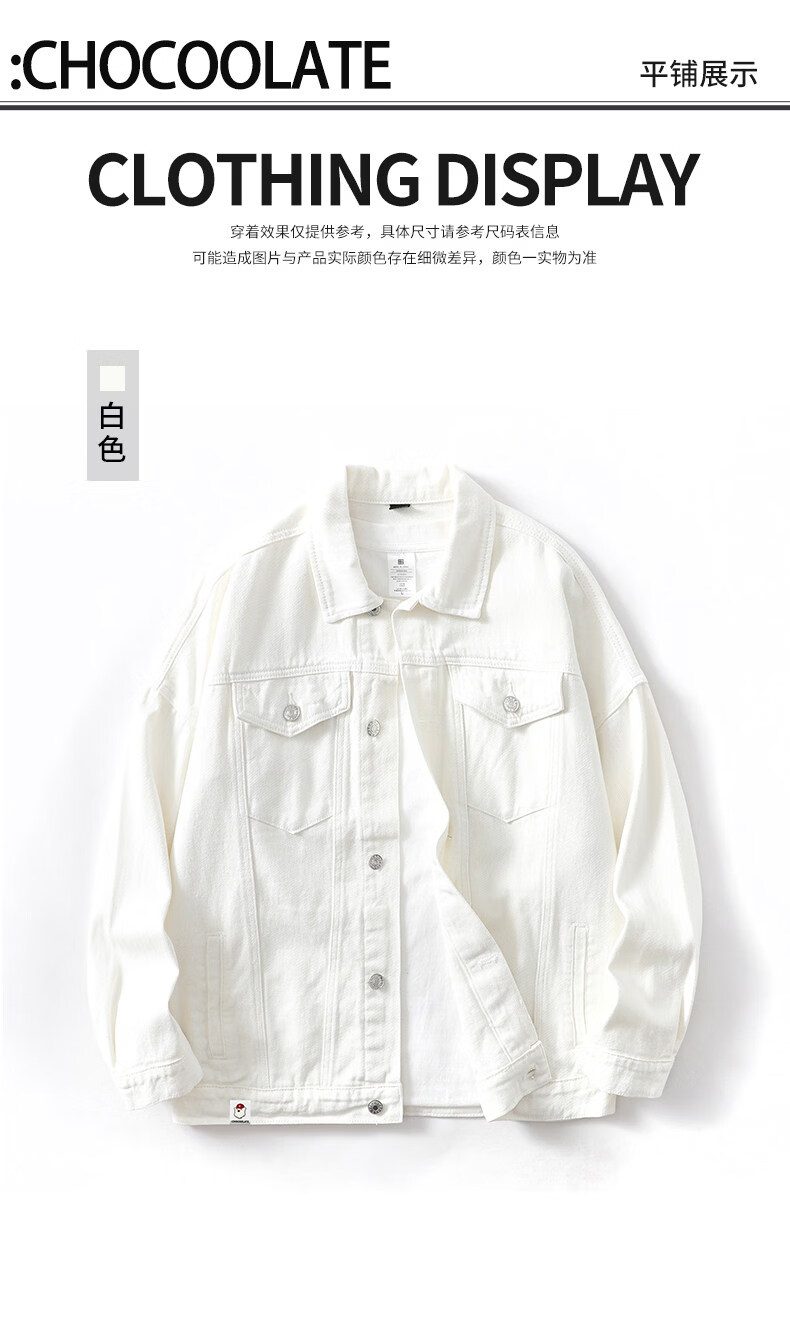 CHOCOOLATEit denim jacket men's autumn trendy brand handsome loose versatile work jacket top white L