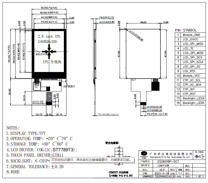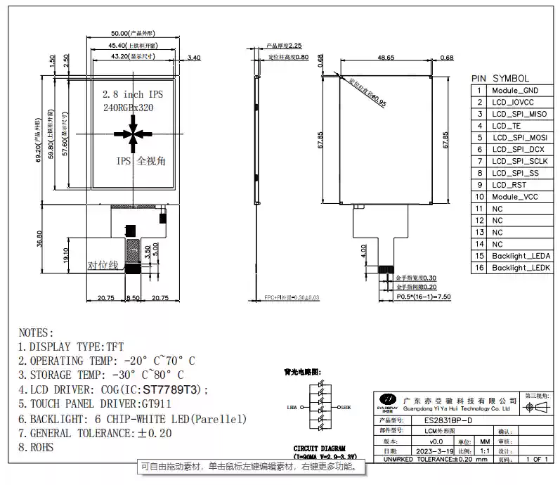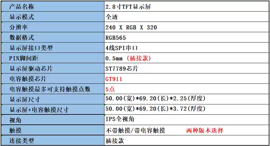 Weiyiyou 2.8-inch TFT LCD display 4-wire SPI serial port IPS full viewing angle LCD color screen with capacitive touch GT911 with capacitive touch