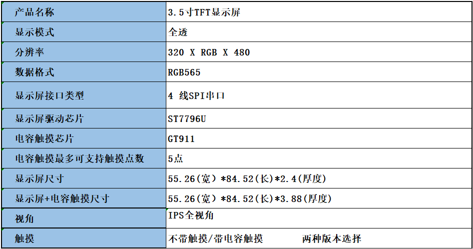 Weiyiyou 3.5-inch TFT LCD display IPS full viewing angle with 5-point capacitive touch SPI serial port LCD color screen GT911