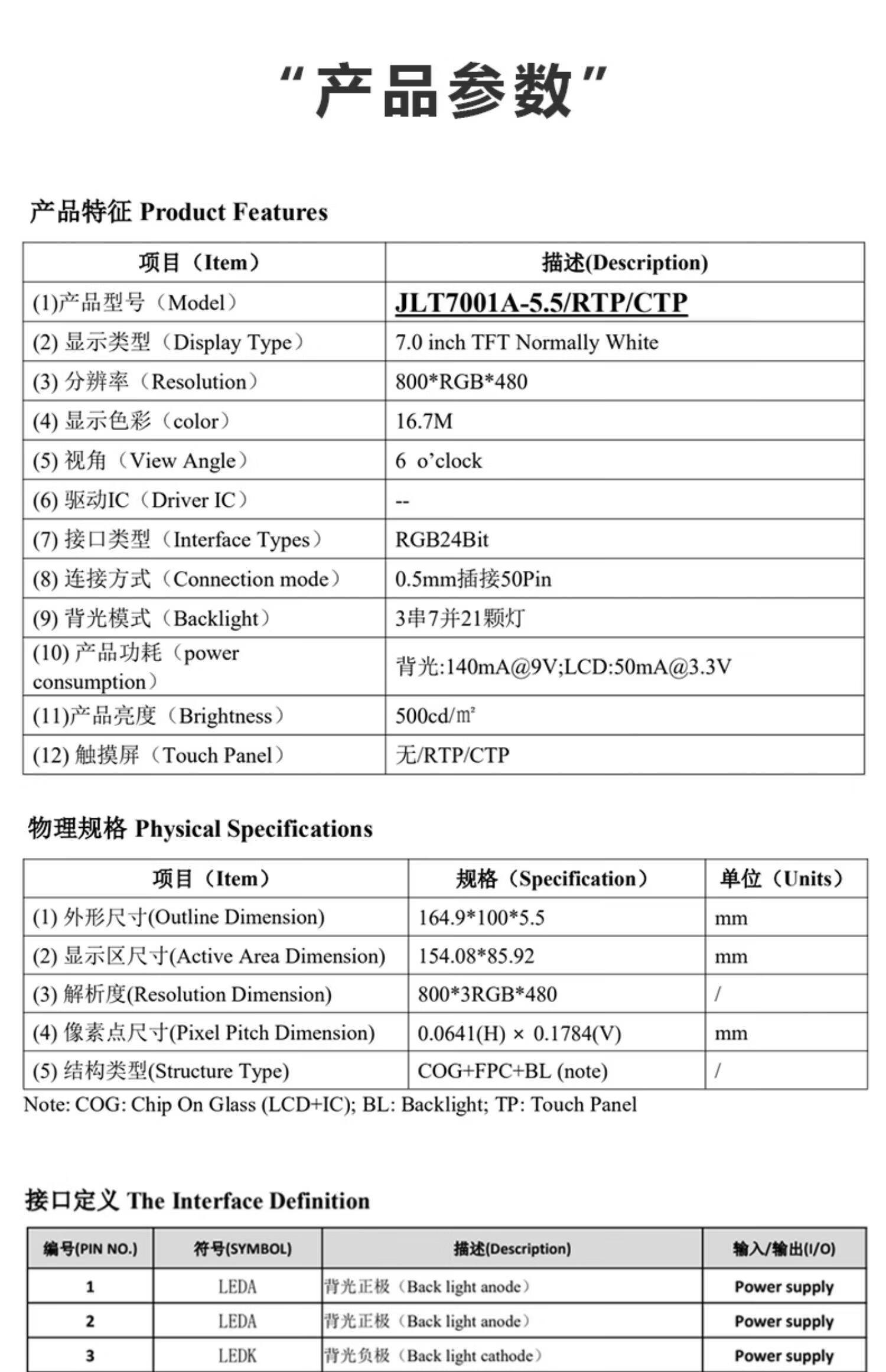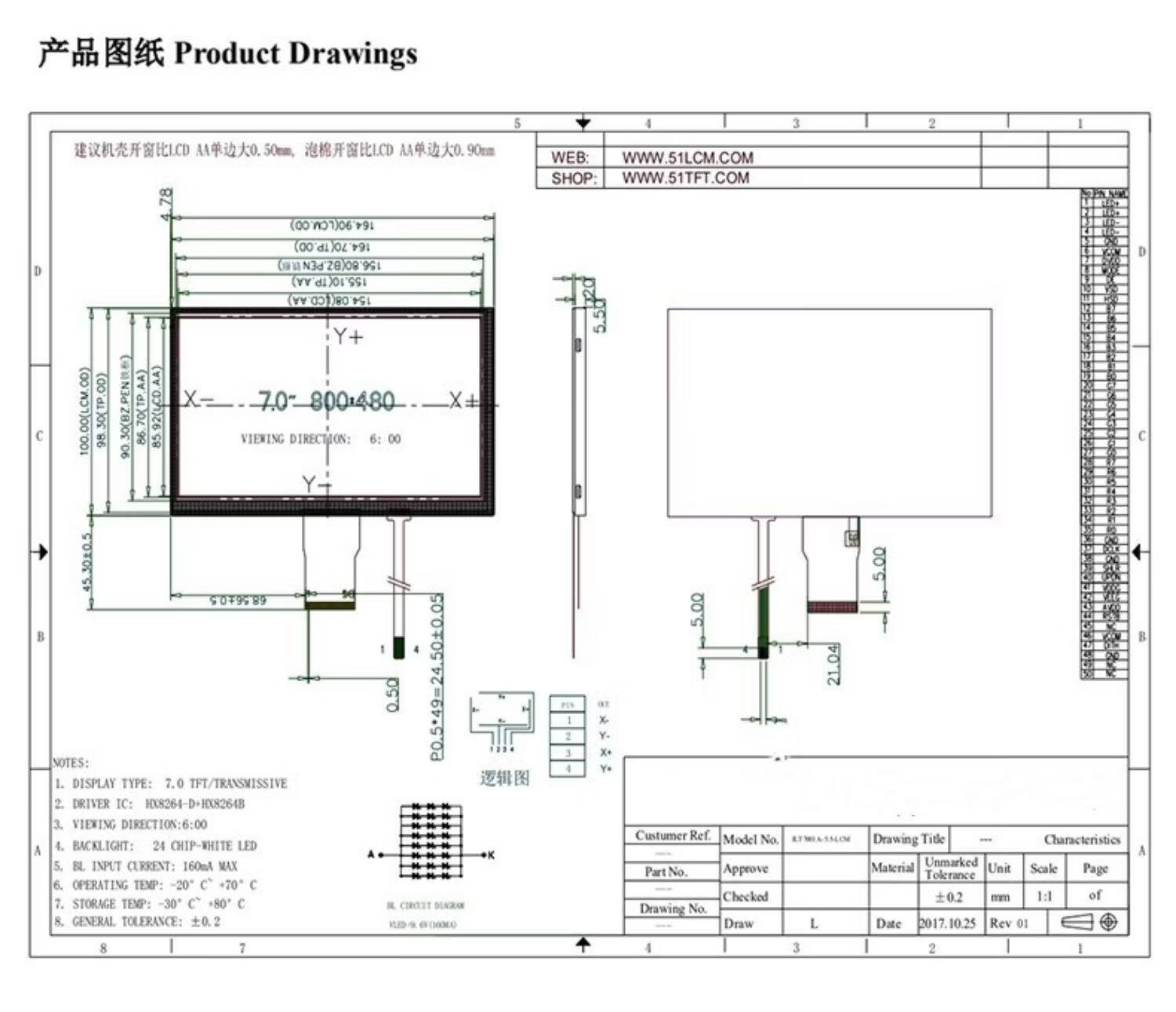 Weiyiyou 7-inch TFT LCD universal 50PIN industrial-grade color screen RGB capacitive touch resolution 800*480 adapter board 50PIN to 40PIN