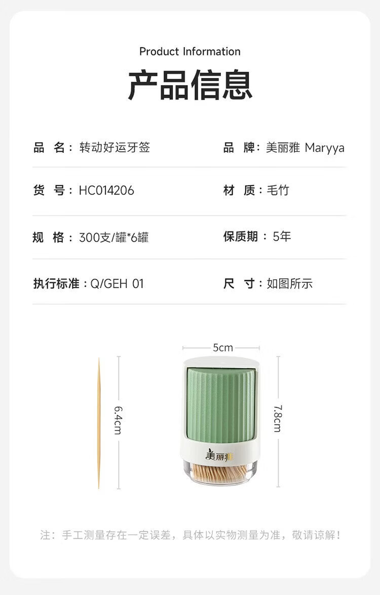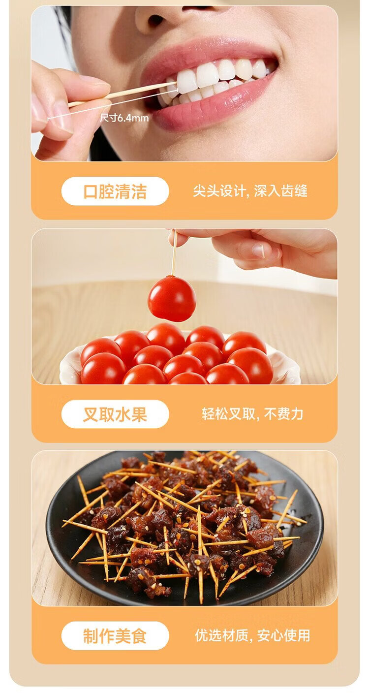 Meliya Bamboo Toothpicks 1800 Food Grade Household Fruit Snacks Premium Toothpick Box Portable Can