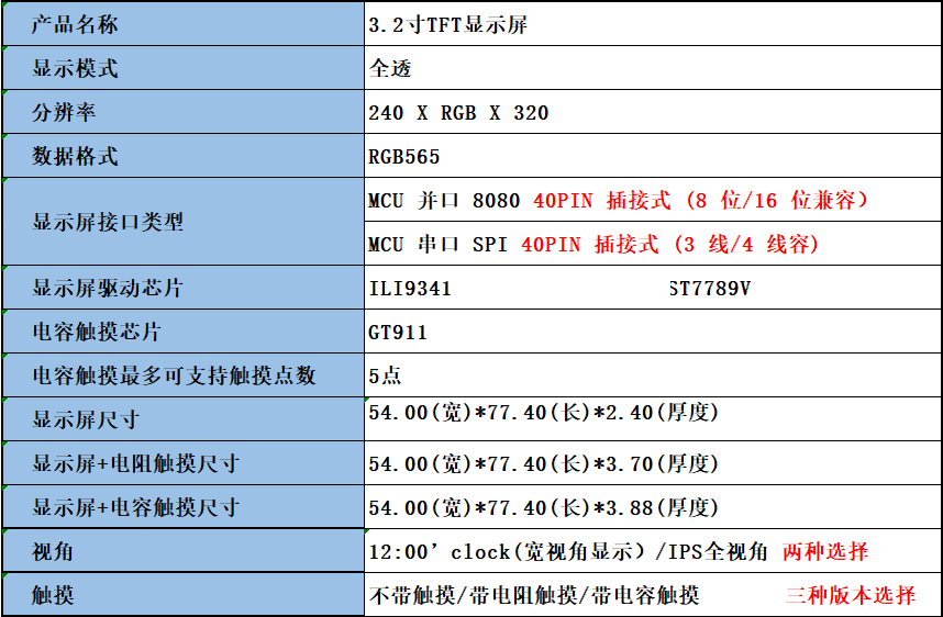 Weiyiyou 3.2-inch TFT LCD display SPI3/4 line serial port 8-bit 16-bit parallel port color screen IPS with capacitive touch ST7789 with resistive touch IPS