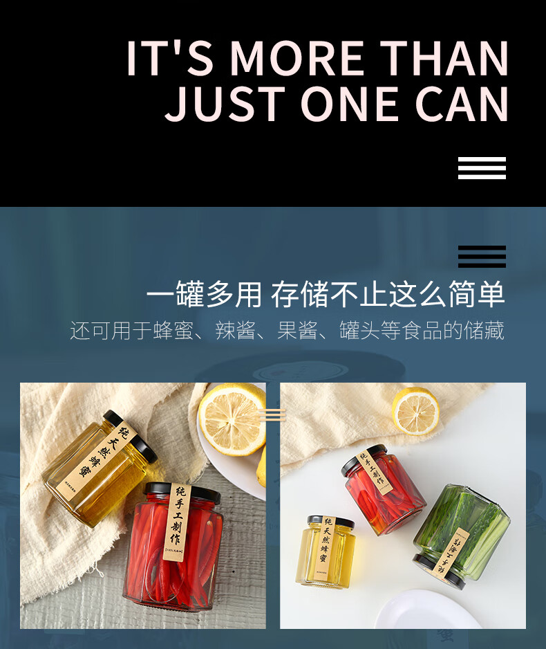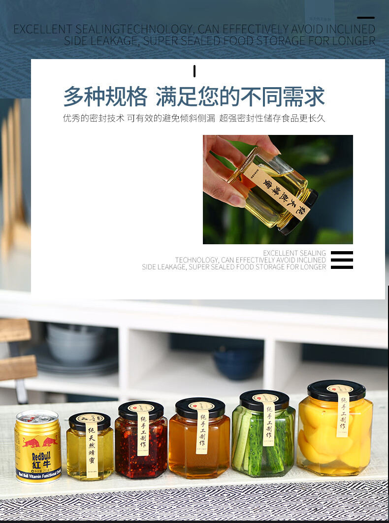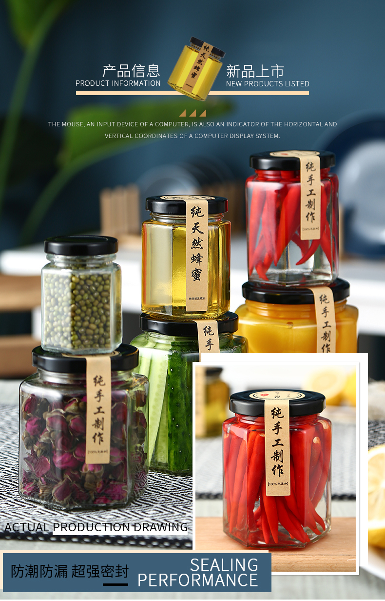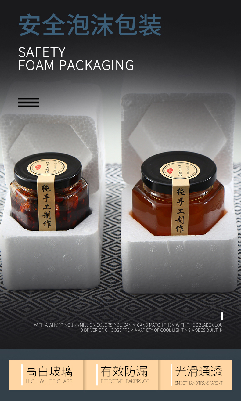Hexagonal hexagonal glass bottle sealed jar honey bottle packaging small jam vegetable lemon paste can bottle with lid wholesale 6 180 ml + foam box