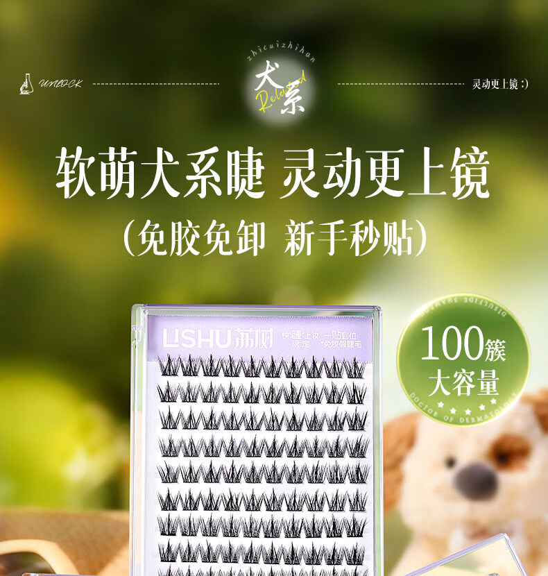 Lishu Glue-free Dog False Eyelashes 100 Clusters Dog Eyelashes Lazy Novice Comic Little Dog Segmented Eyelashes