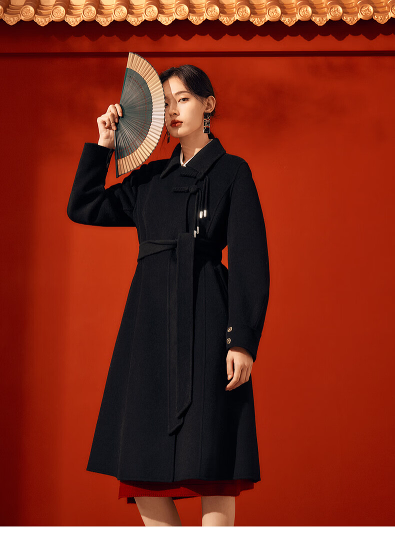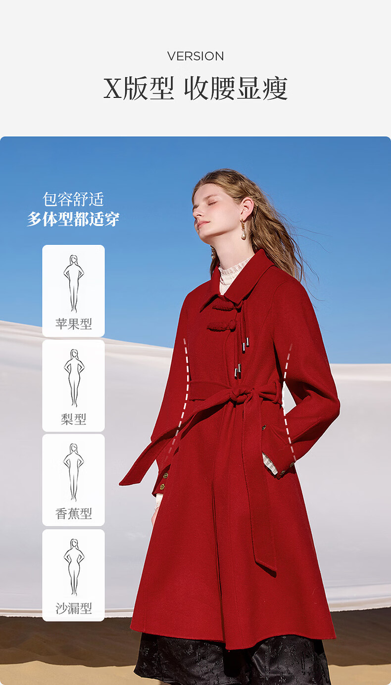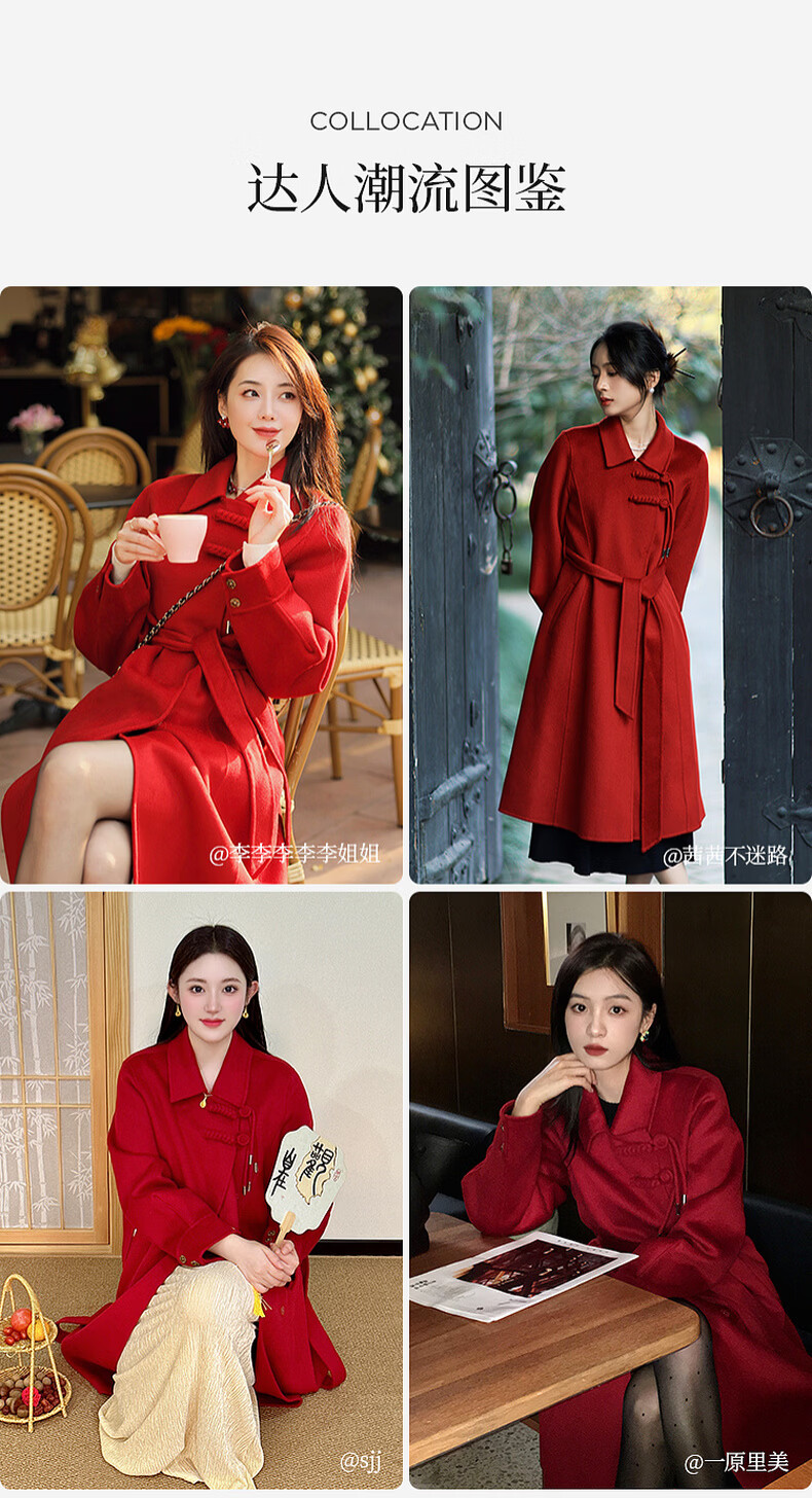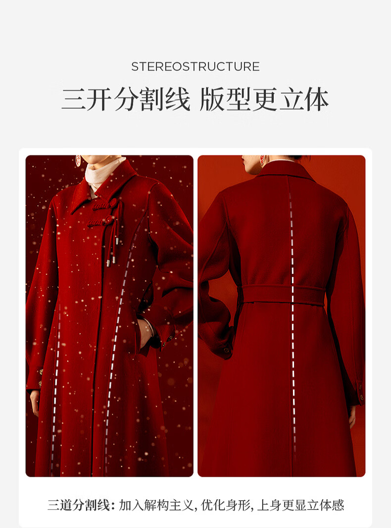 Qiushui Yiren New Year's jersey 100% sheep wool national style double-sided woolen coat 2025 winter new women's silhouette coat