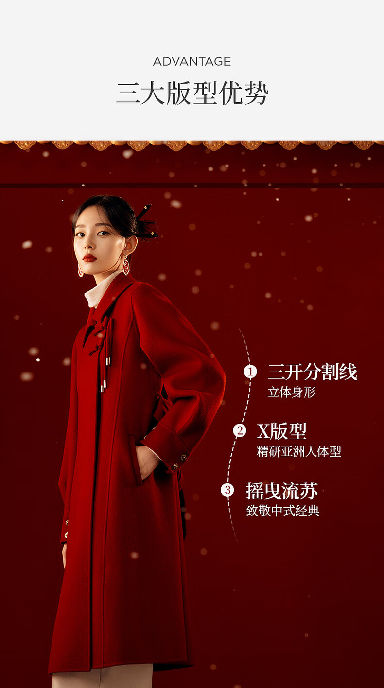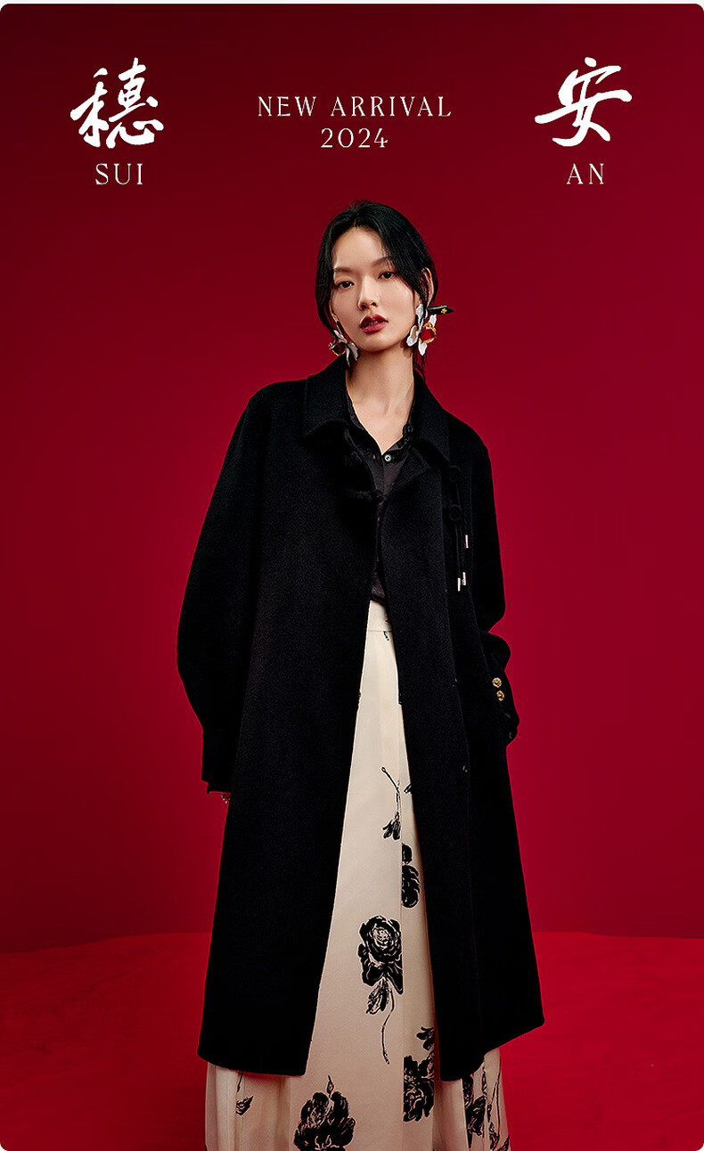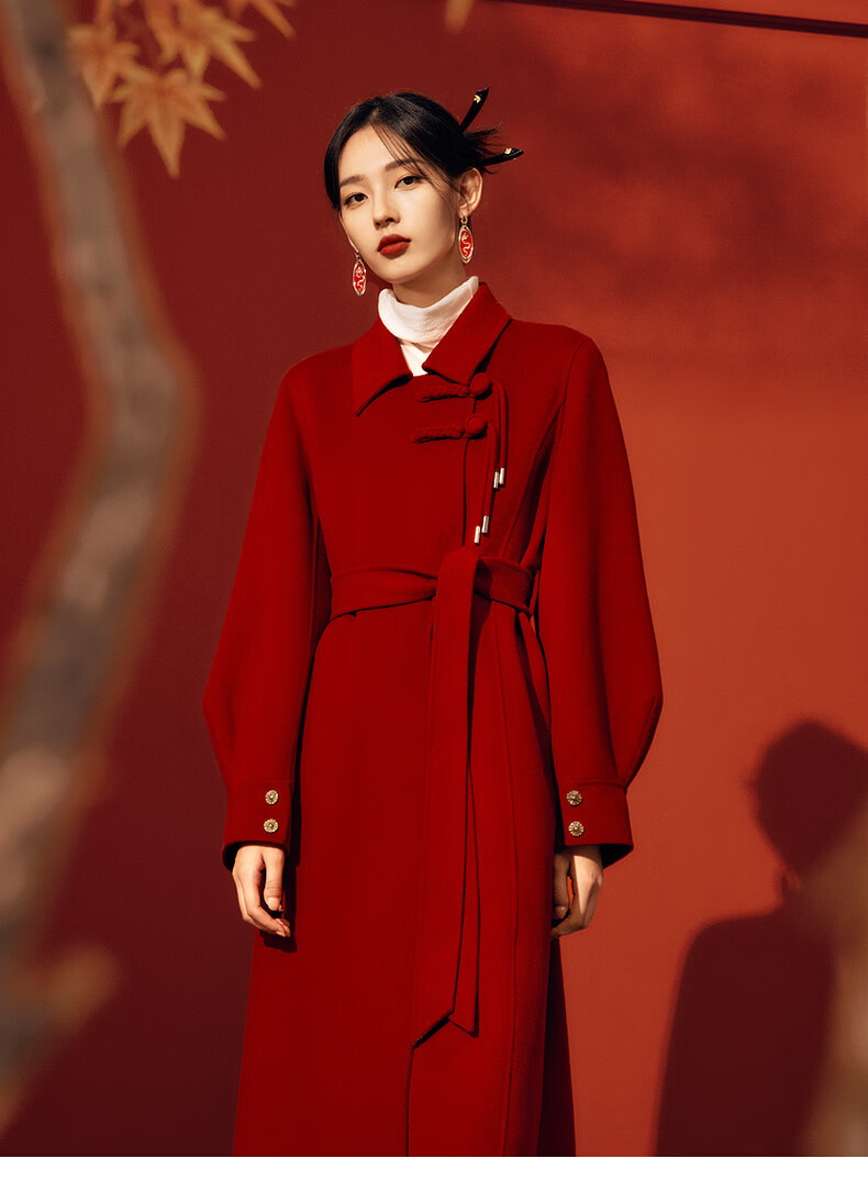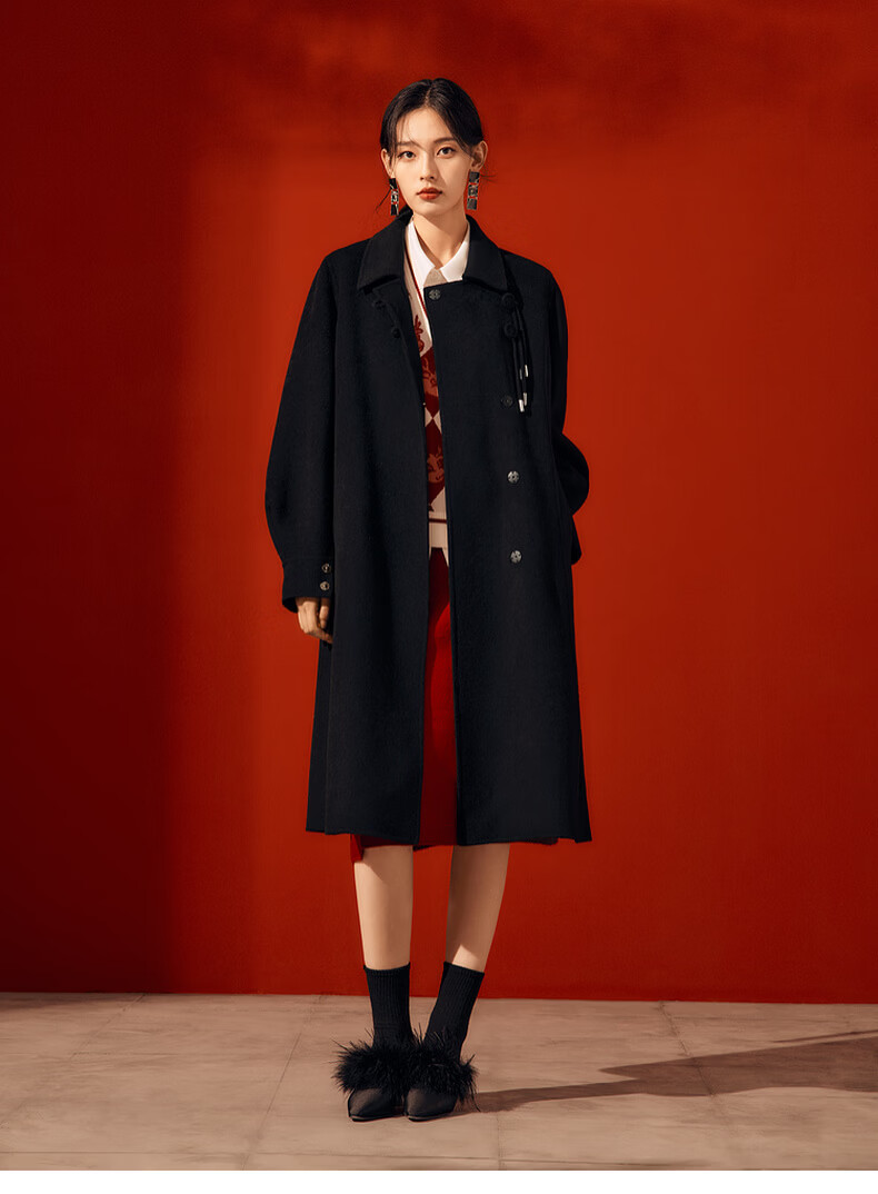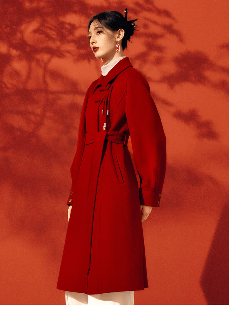 Qiushui Yiren New Year's jersey 100% sheep wool national style double-sided woolen coat 2025 winter new women's silhouette coat