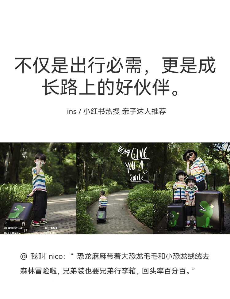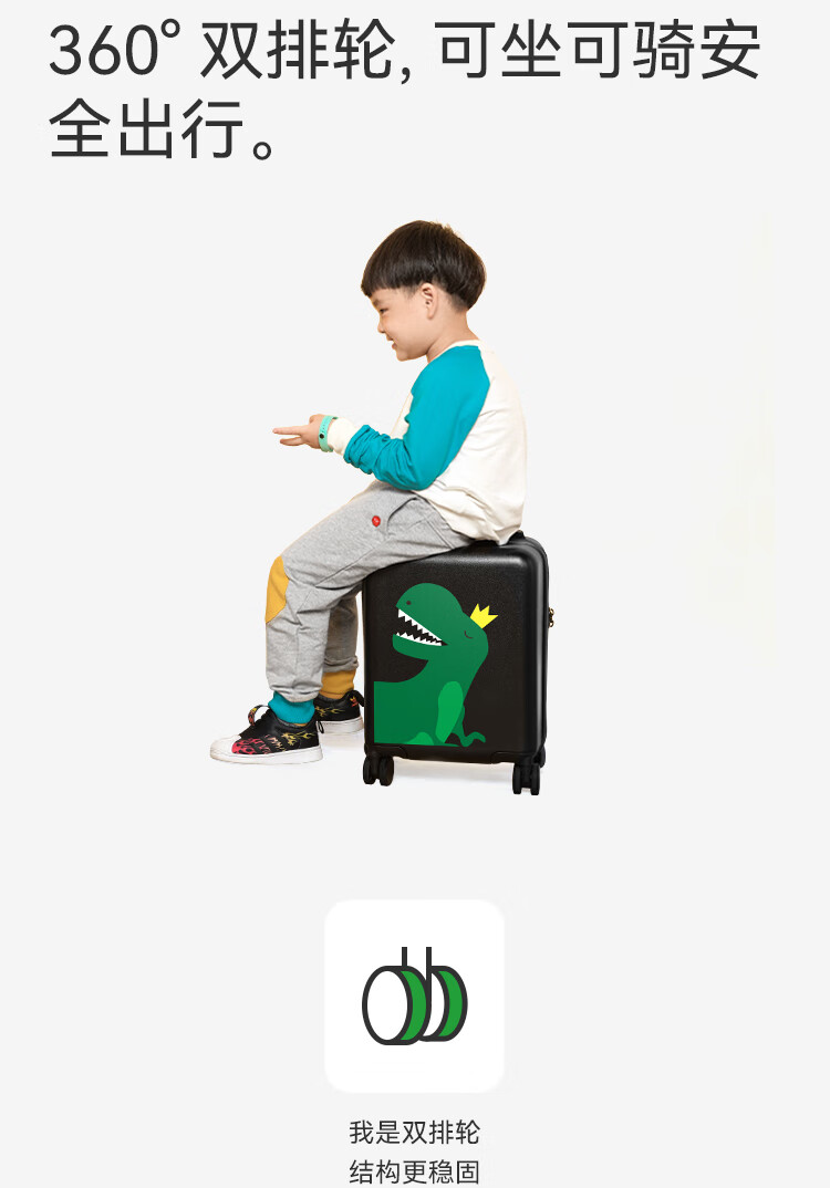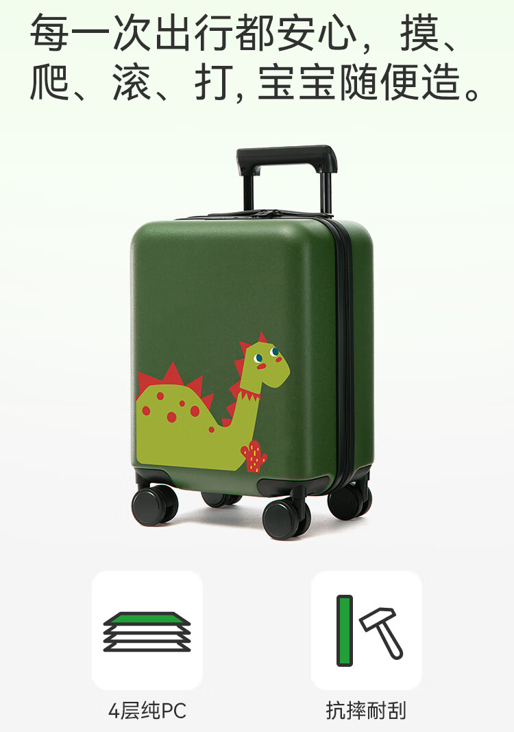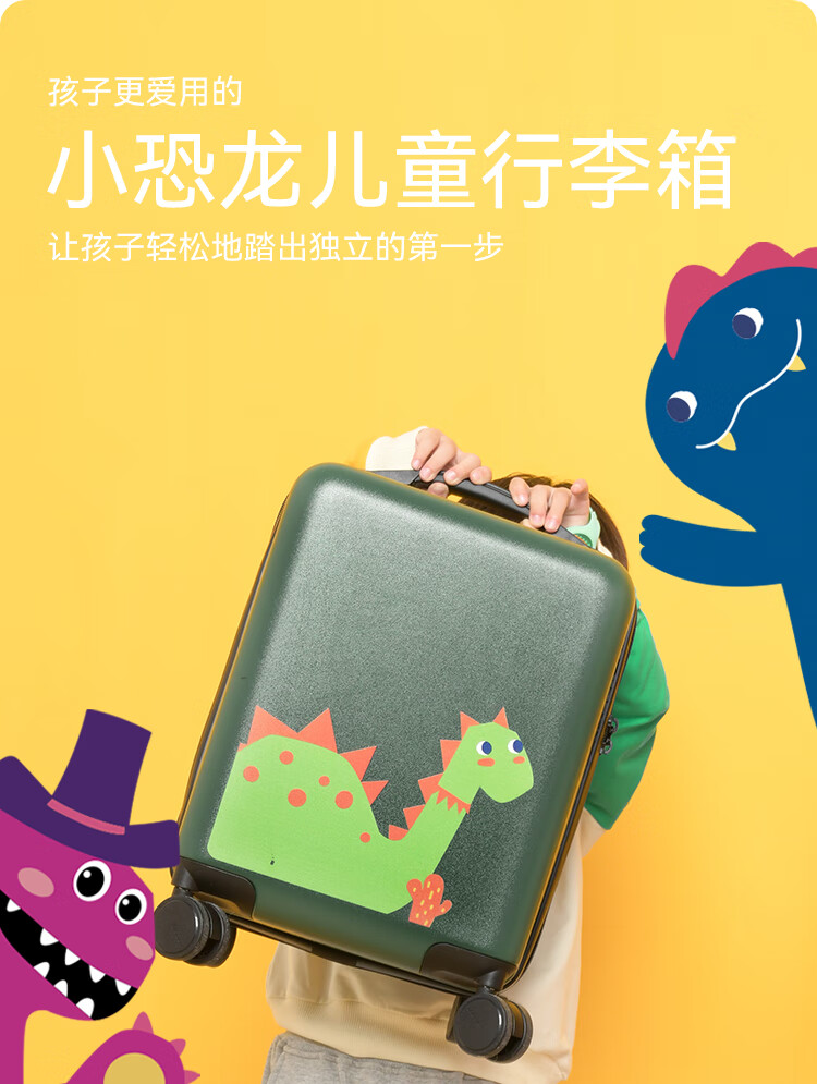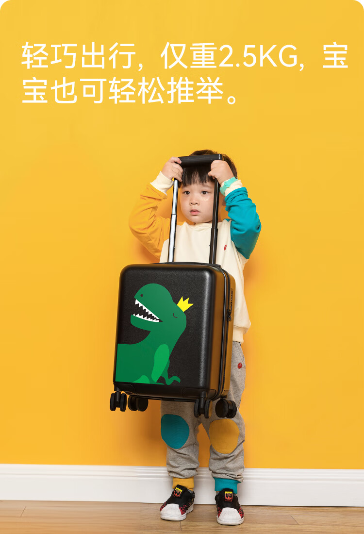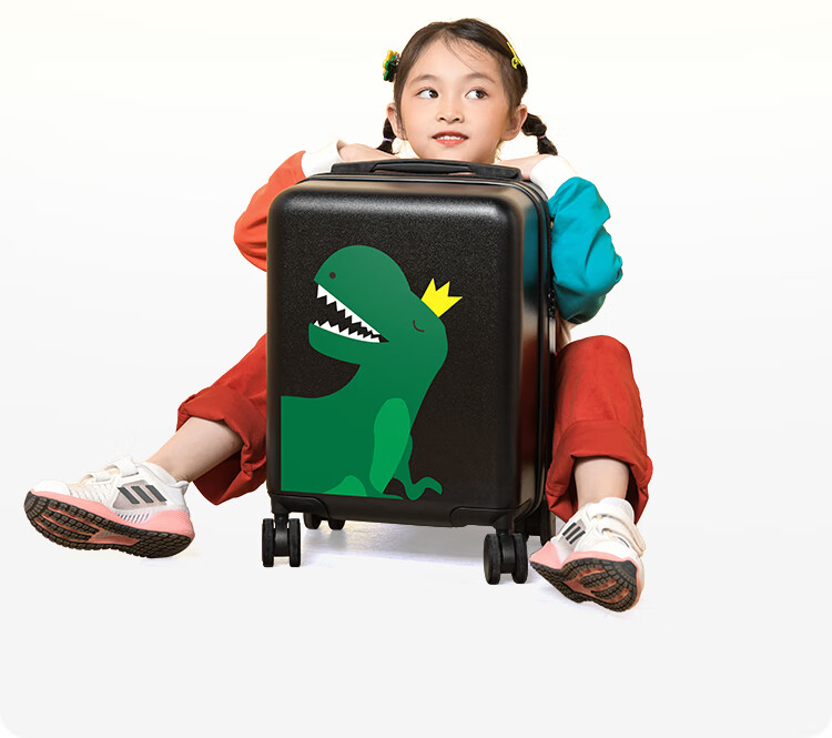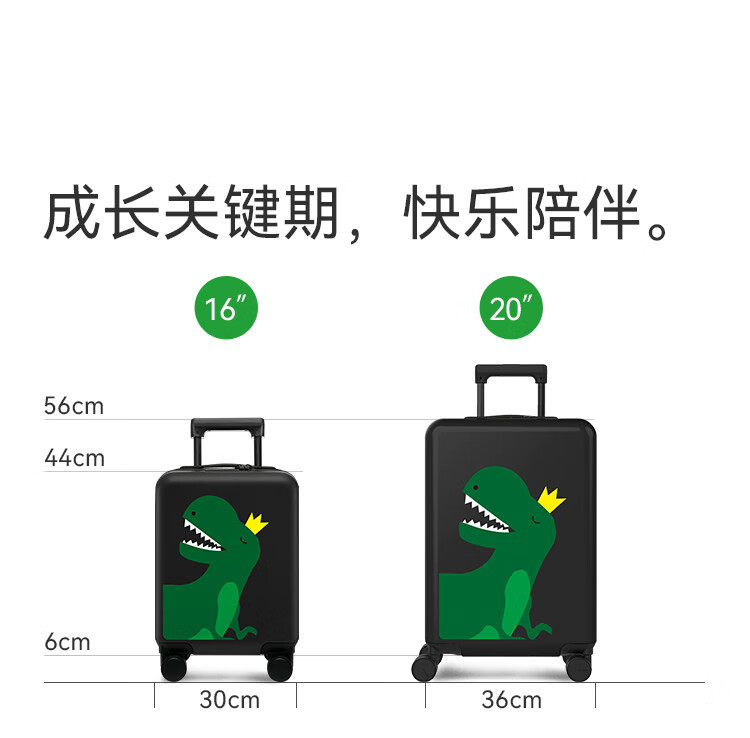 Bremen suitcase female parent-child suitcase children can mount cute small lightweight trolley case little dinosaur black 16 inches