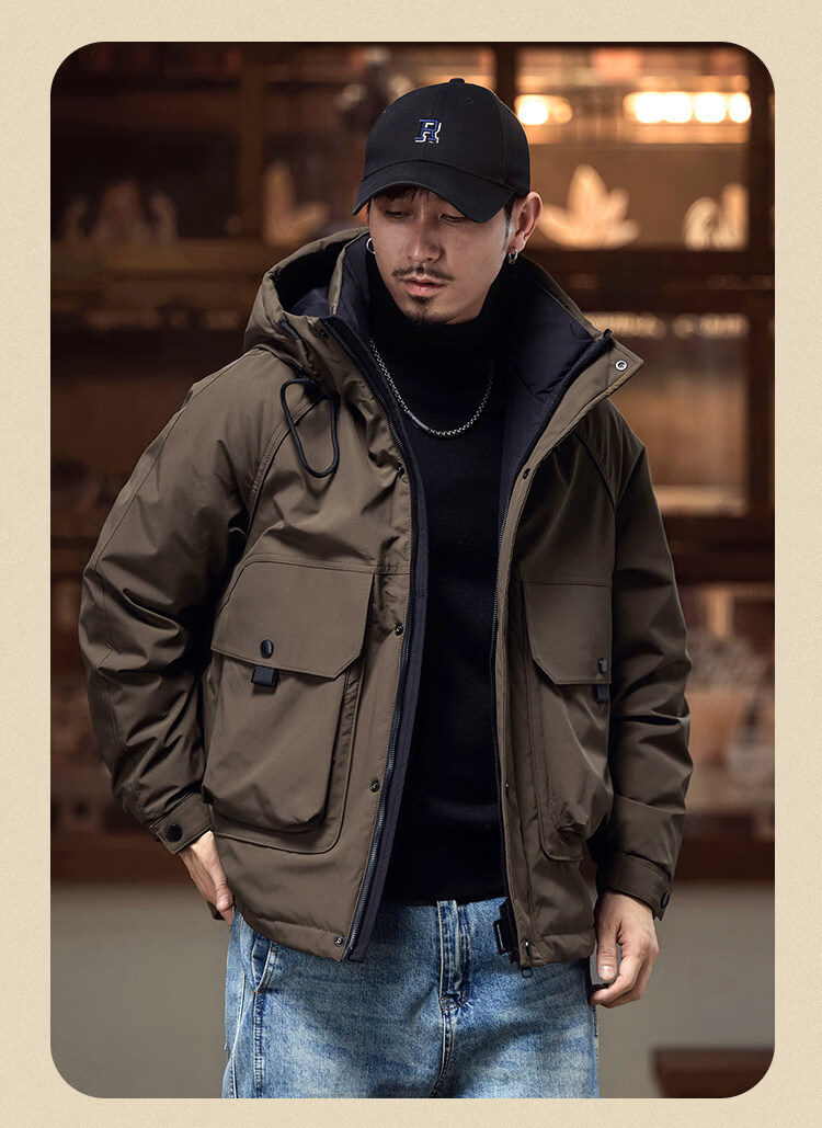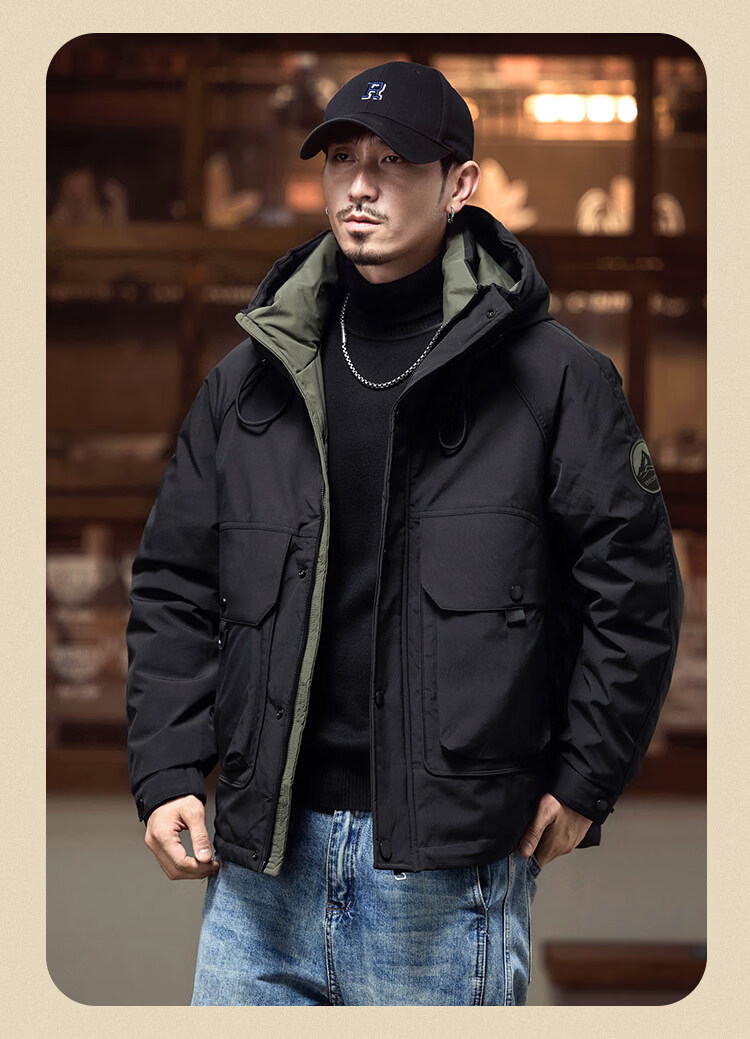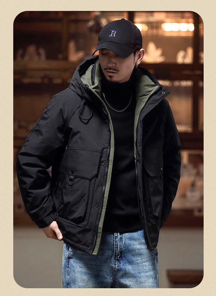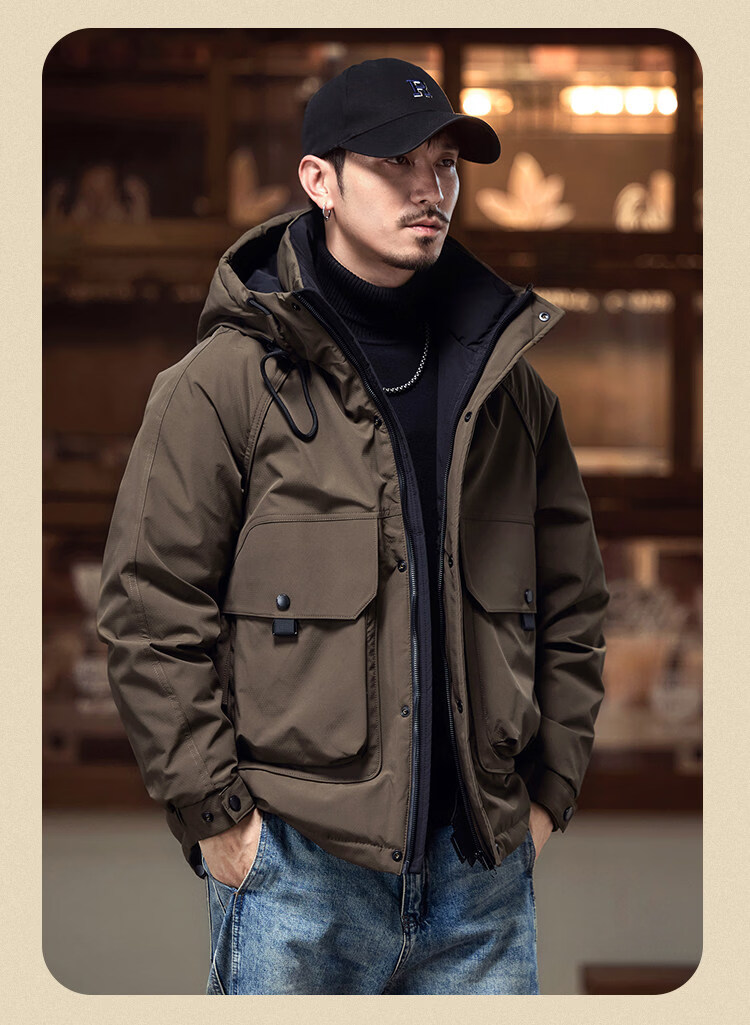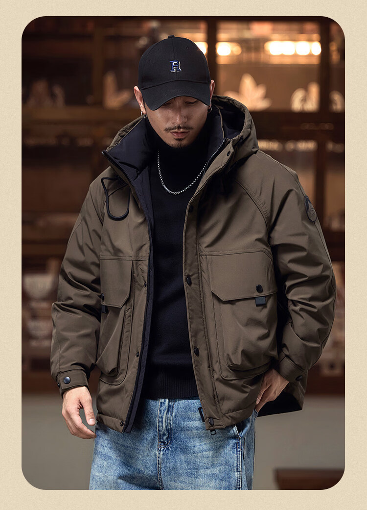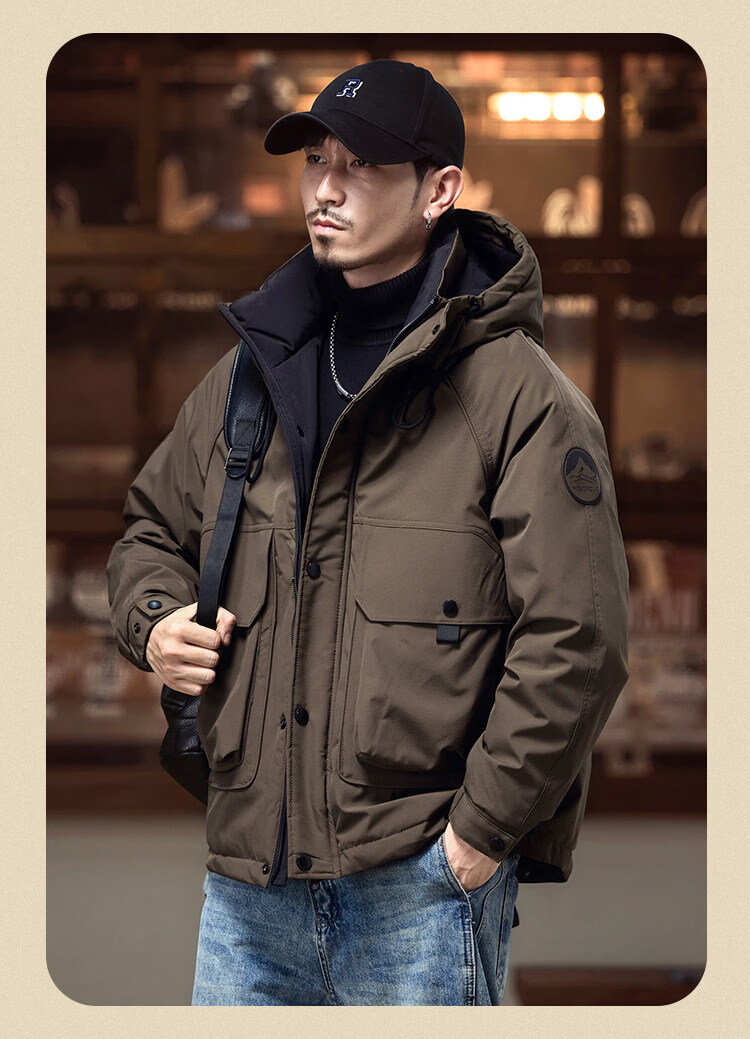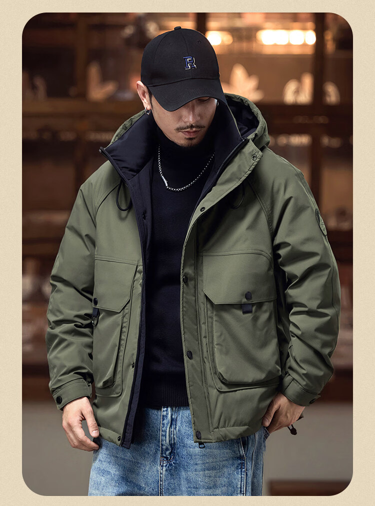 Mark Huafei mountain style workwear down jacket men's 90 duck down winter new trend outdoor assault hooded thickened warm jacket