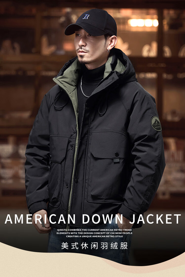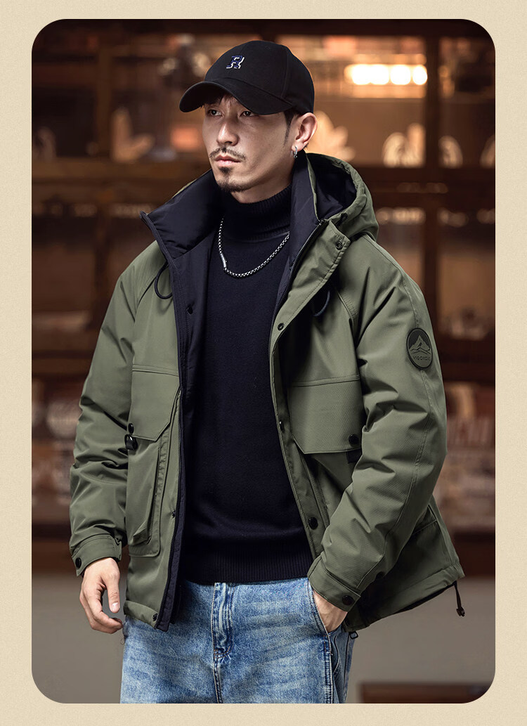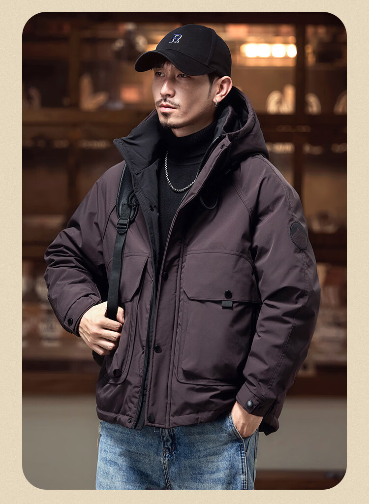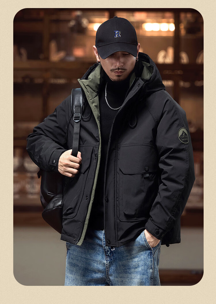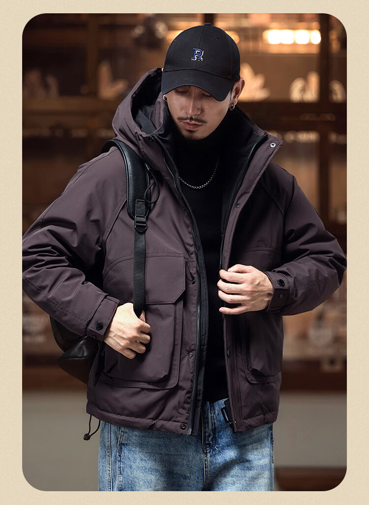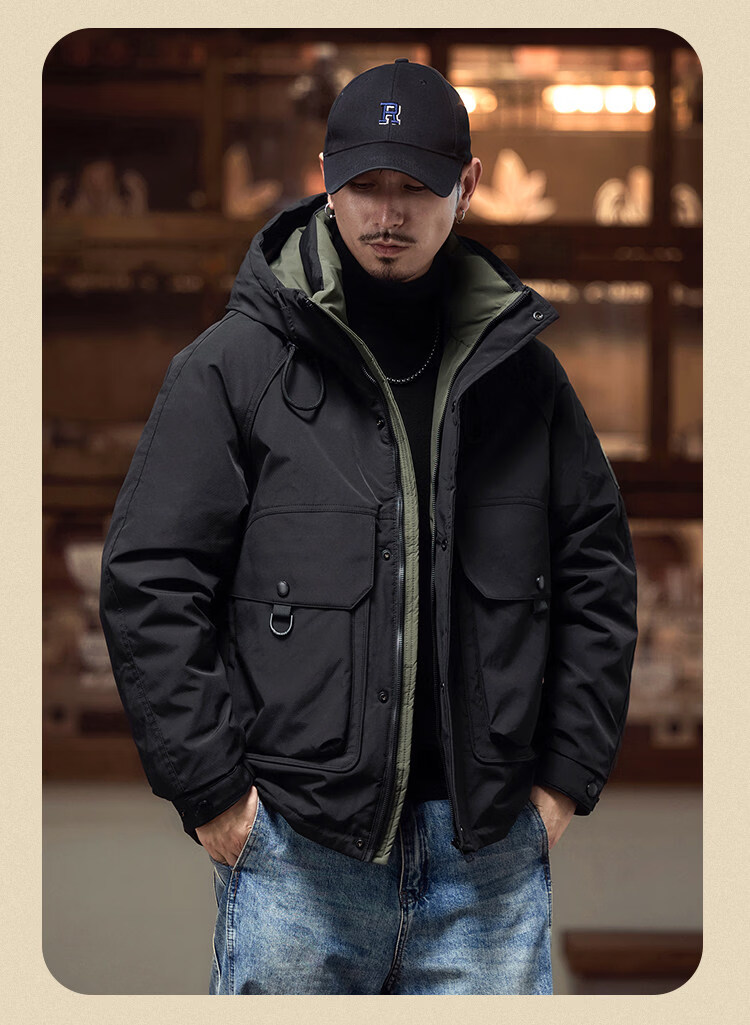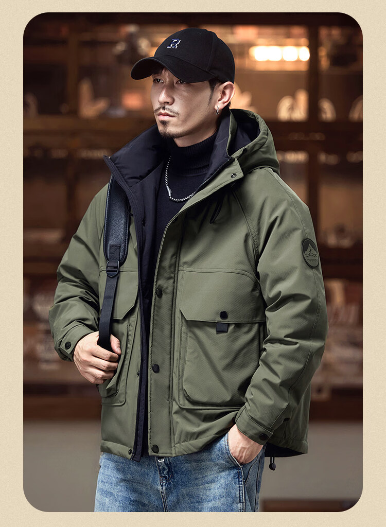 Mark Huafei mountain style workwear down jacket men's 90 duck down winter new trend outdoor assault hooded thickened warm jacket