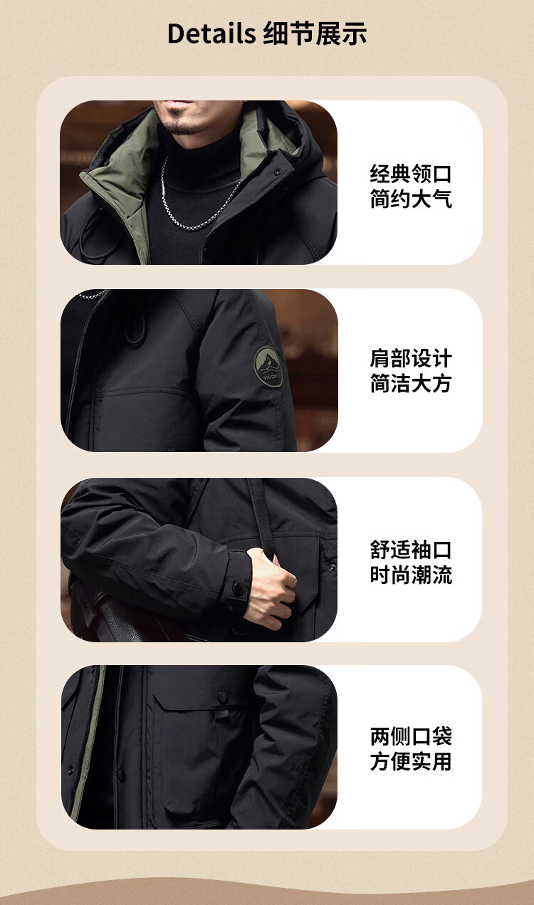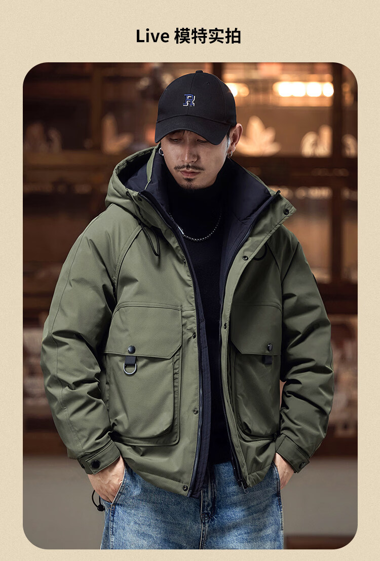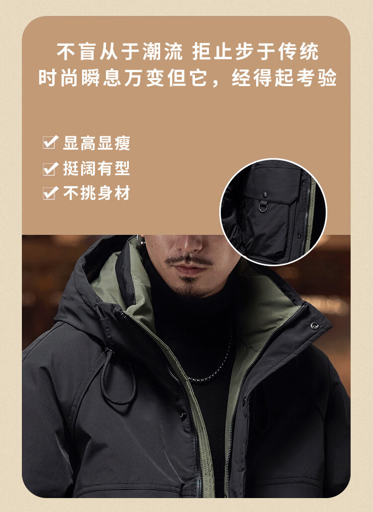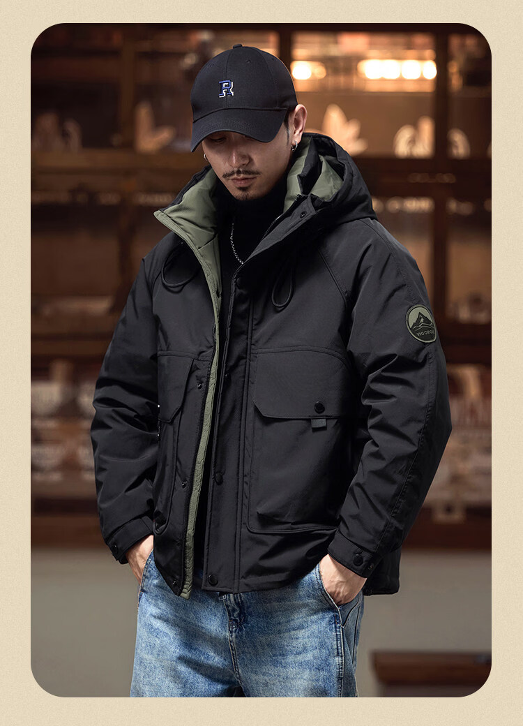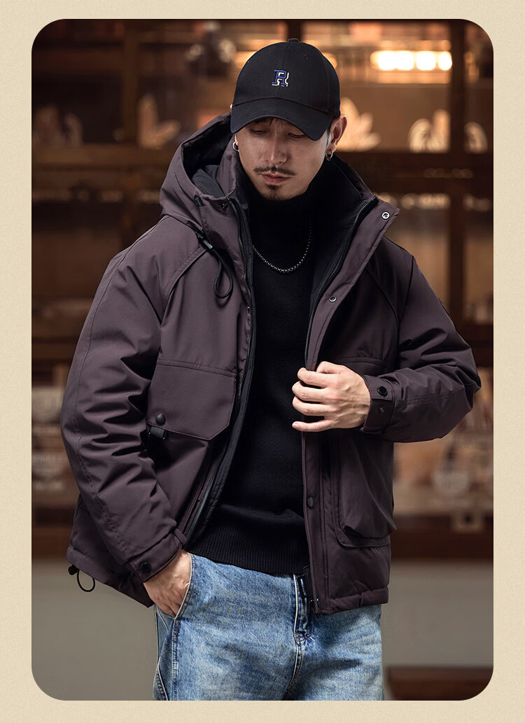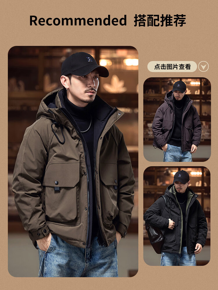 Mark Huafei mountain style workwear down jacket men's 90 duck down winter new trend outdoor assault hooded thickened warm jacket
