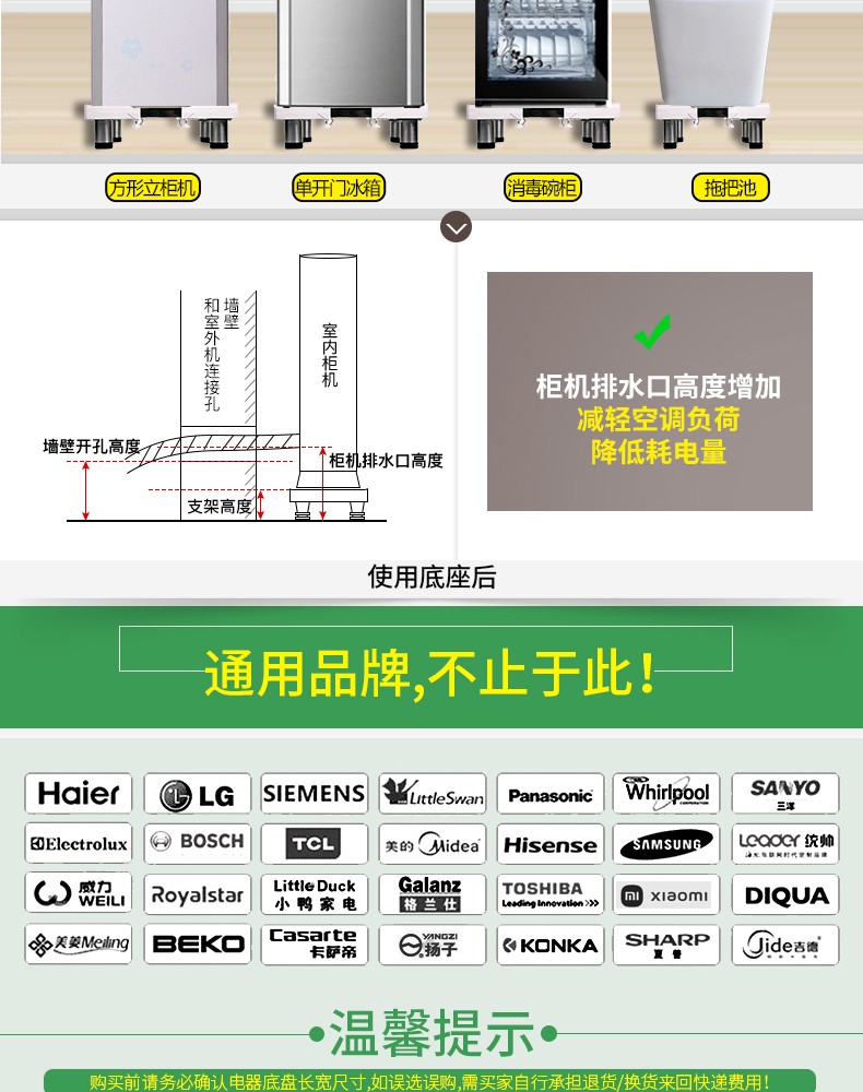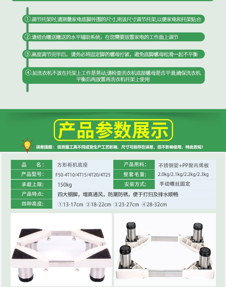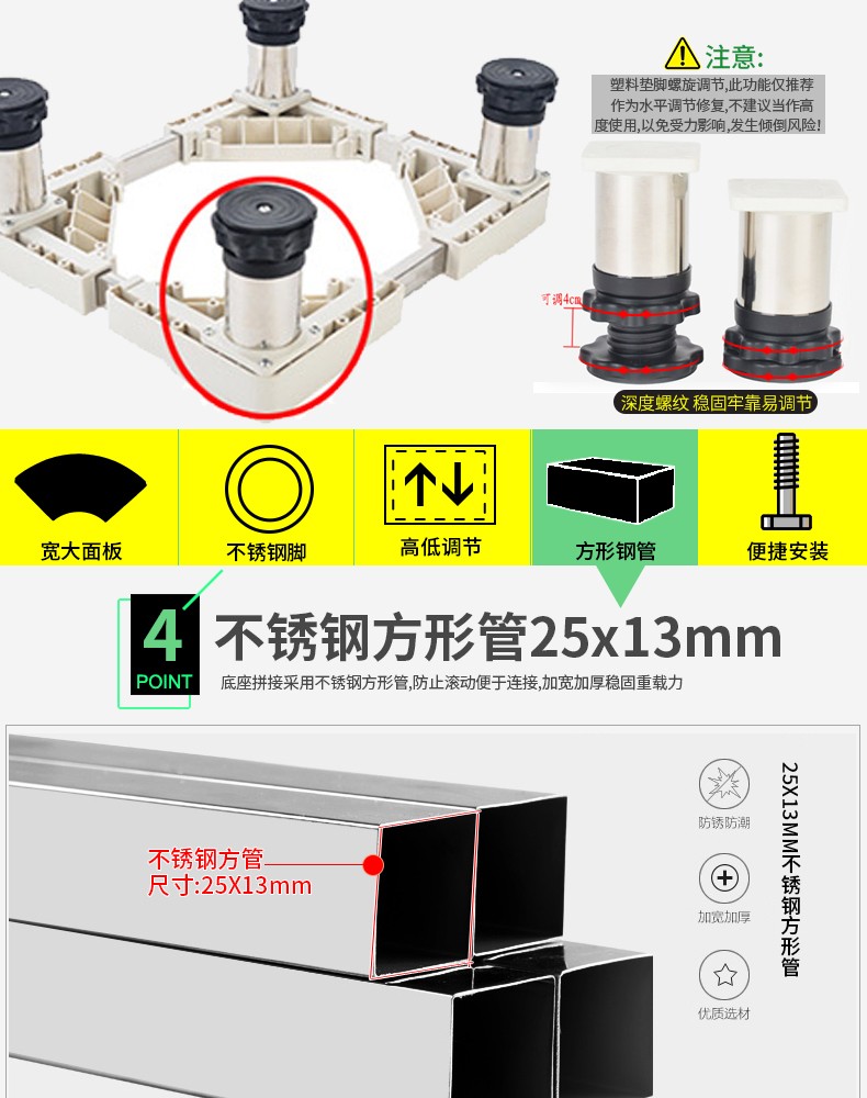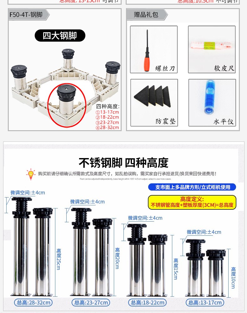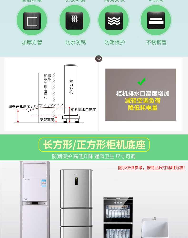 Weishilang vertical square air conditioner cabinet base heightening bracket 2 pcs 3 pcs suitable for Haier Gree duck Royalstar small refrigerator base disinfection cabinet mop pool mini washing machine bracket H4-column foot (fixed four feet, height adjustable) 9-11cm