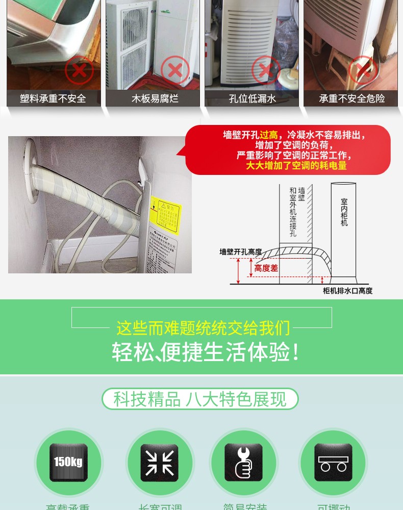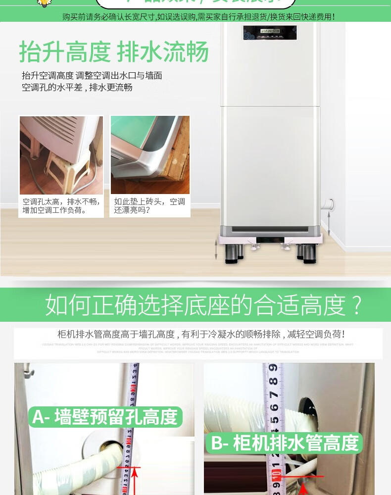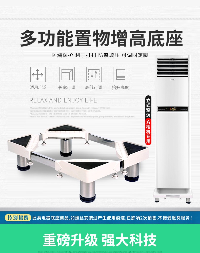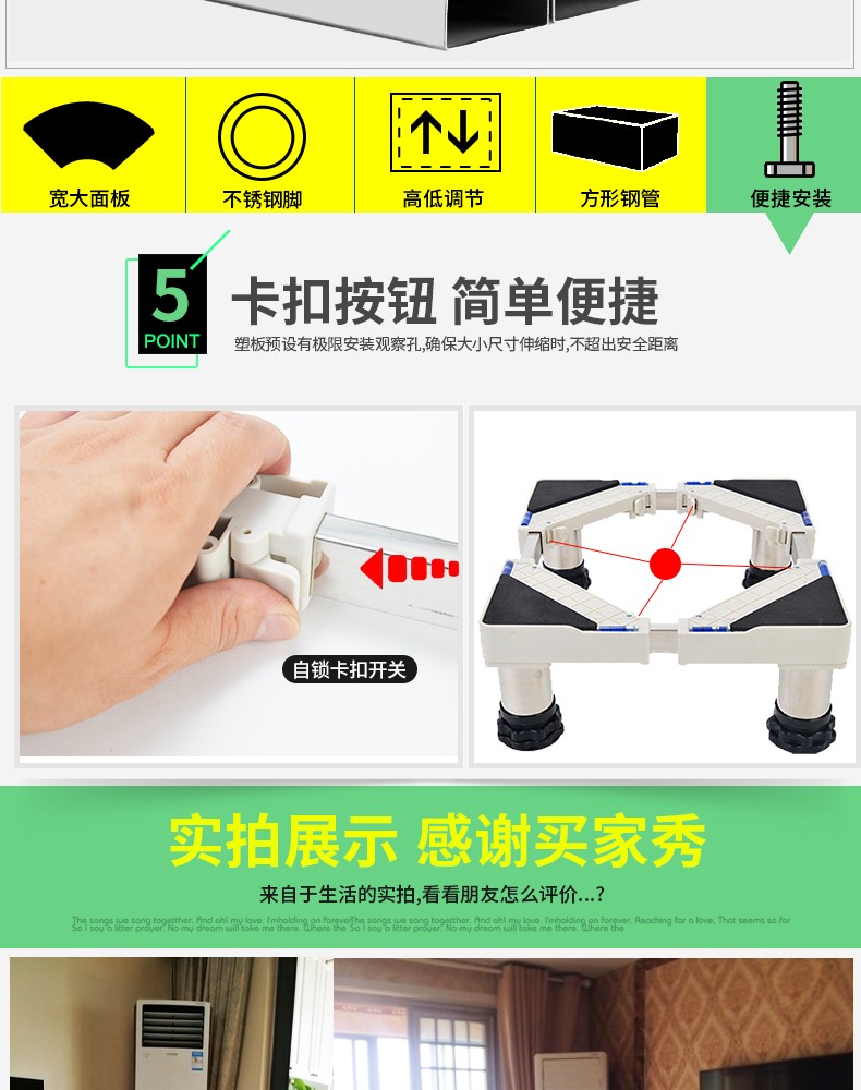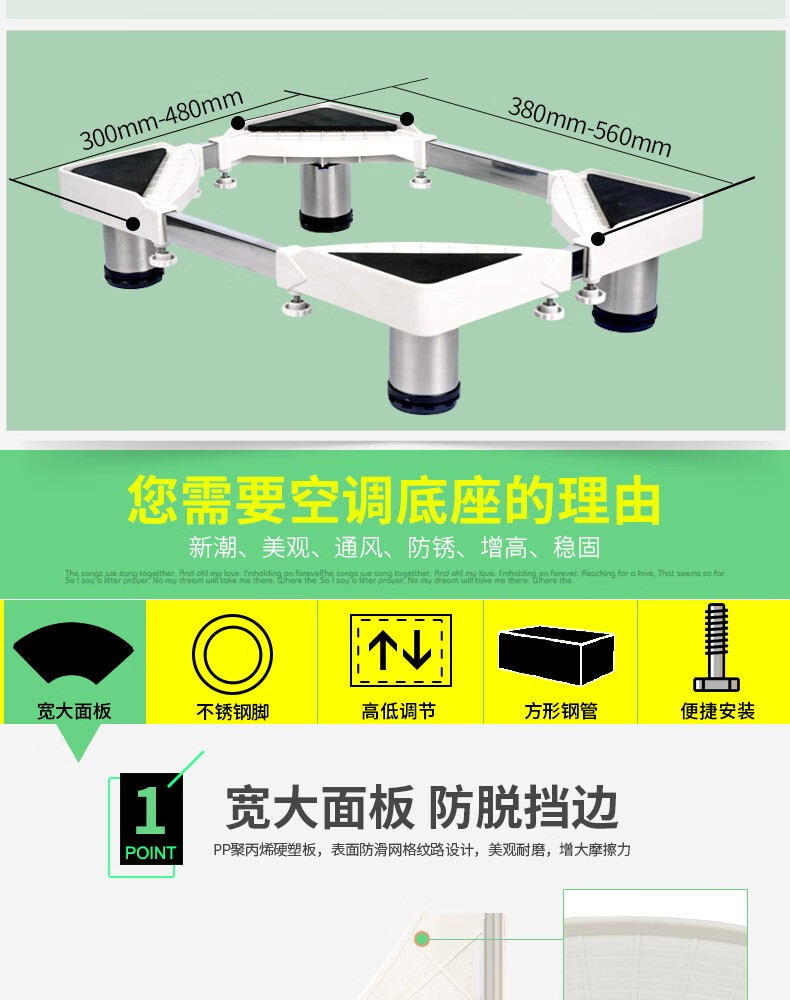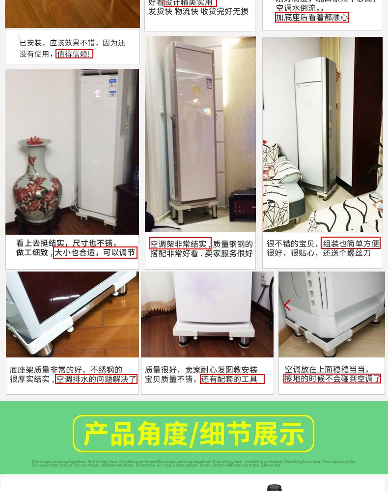 Weishilang vertical square air conditioner cabinet base heightening bracket 2 pcs 3 pcs suitable for Haier Gree duck Royalstar small refrigerator base disinfection cabinet mop pool mini washing machine bracket H4-column foot (fixed four feet, height adjustable) 9-11cm