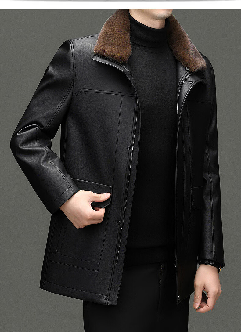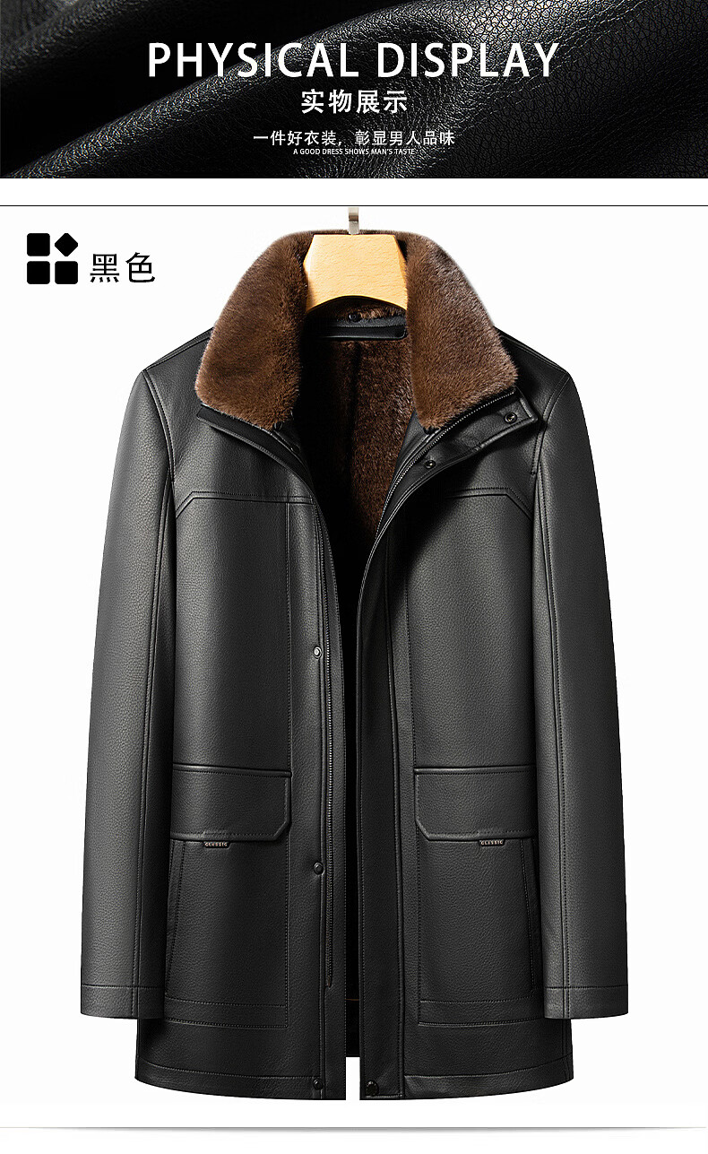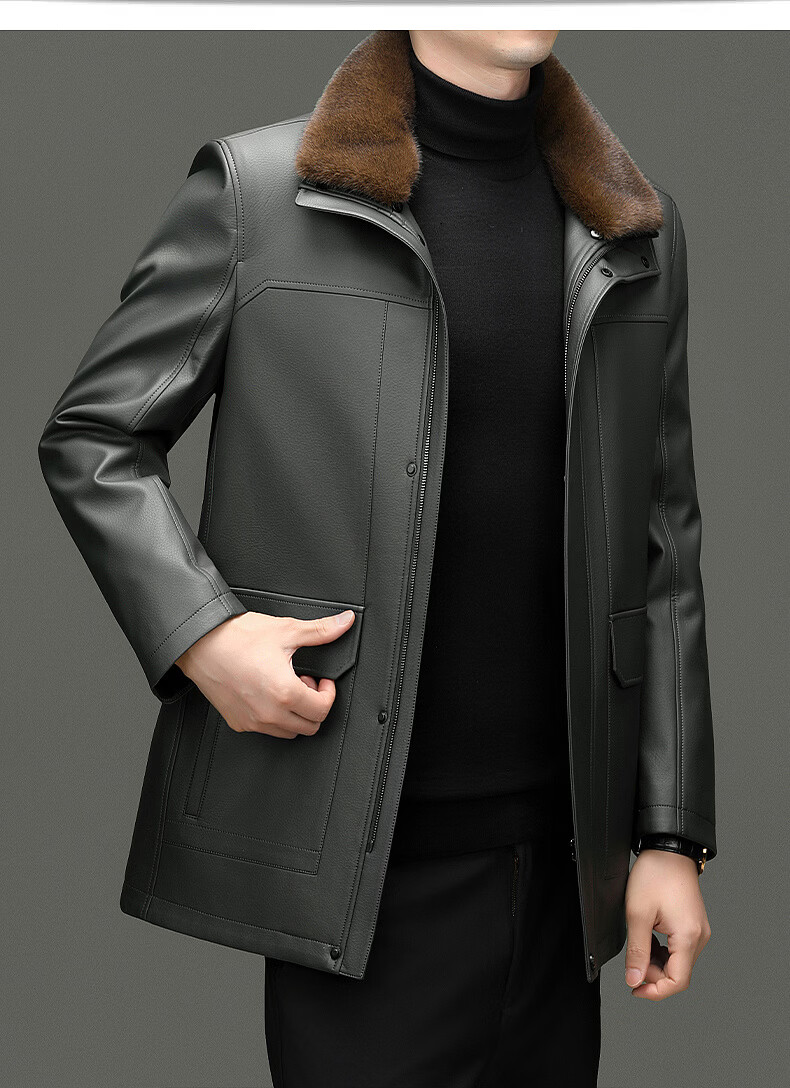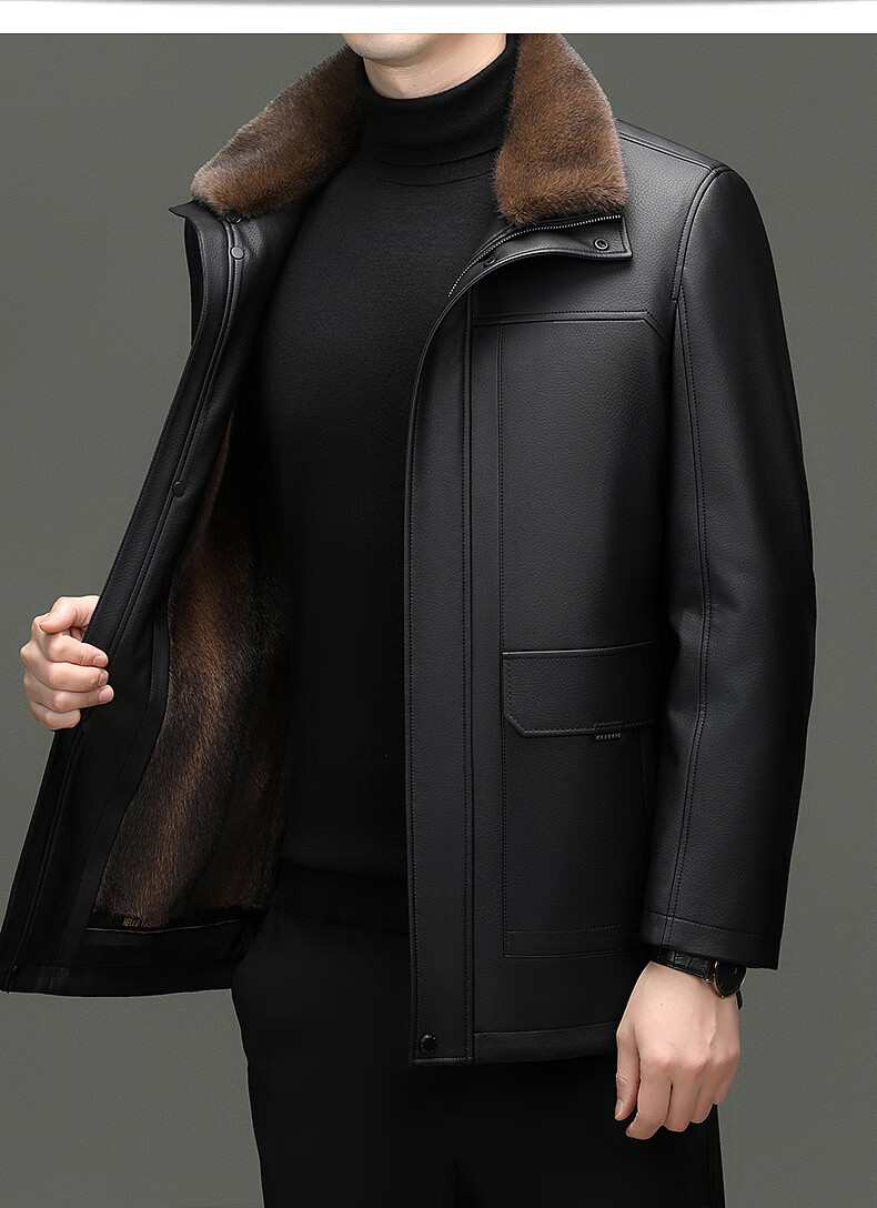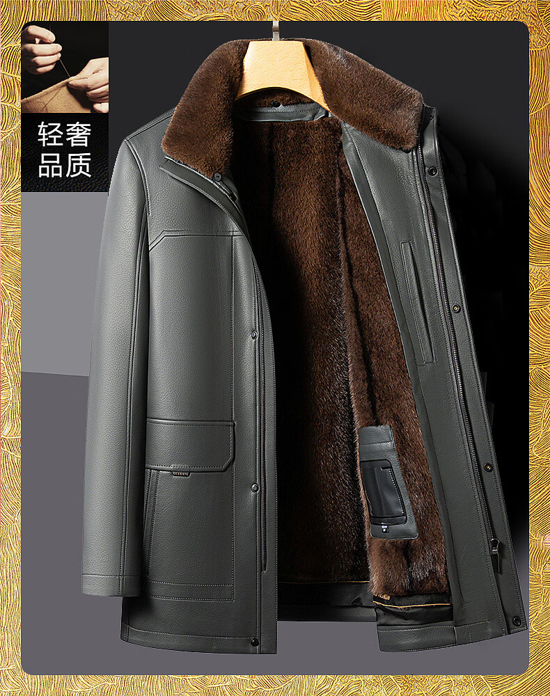 Yalu Genuine Leather Jacket Men's Medium and Long 2025 New Living Face Mink Velvet Liner Fur Collar Middle-aged and Elderly Leather Jacket