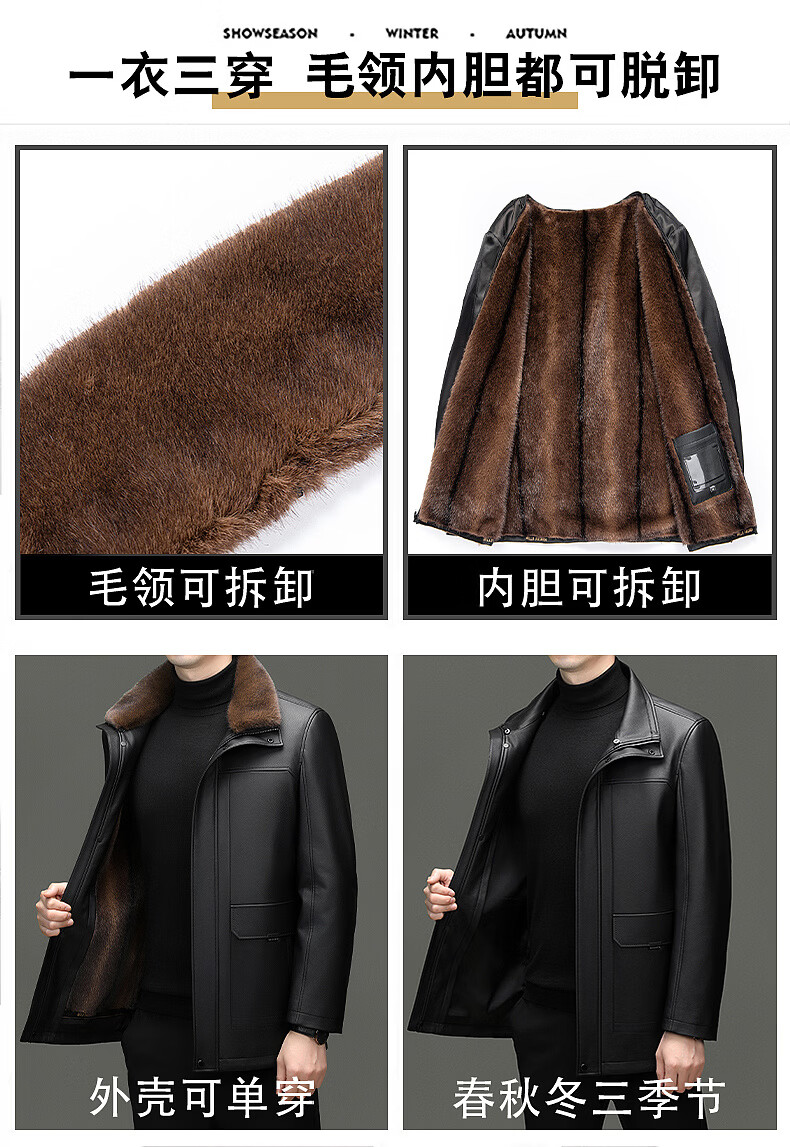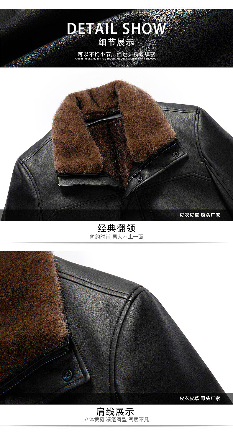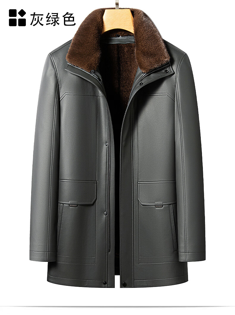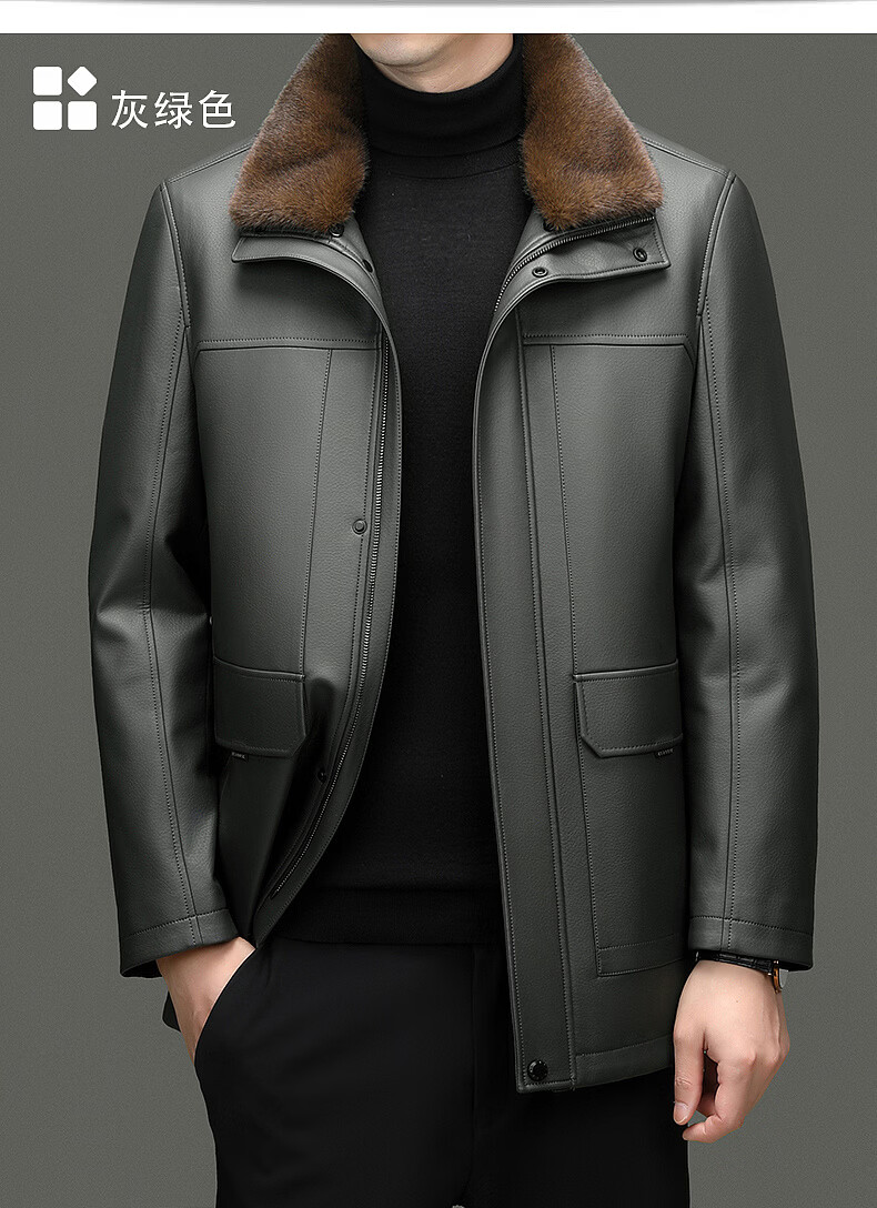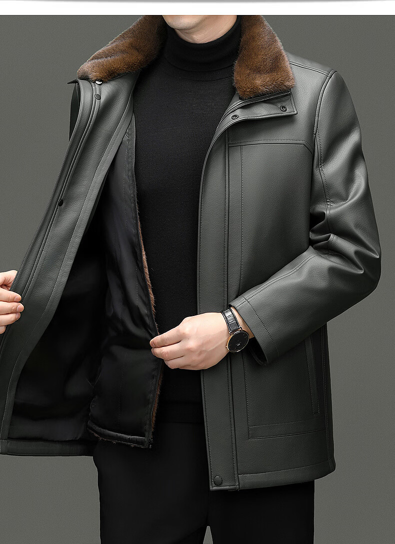 Yalu Genuine Leather Jacket Men's Medium and Long 2025 New Living Face Mink Velvet Liner Fur Collar Middle-aged and Elderly Leather Jacket