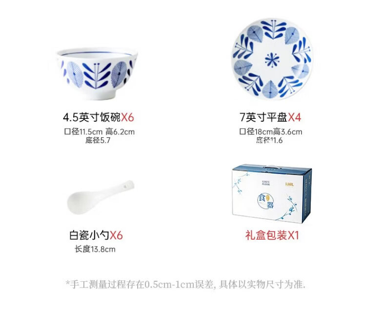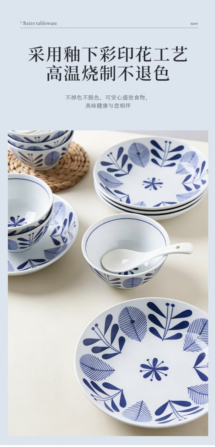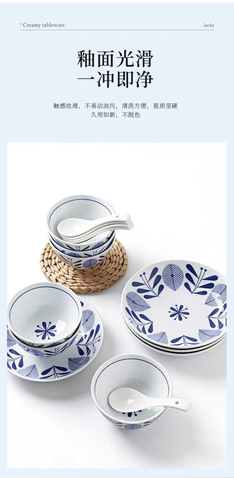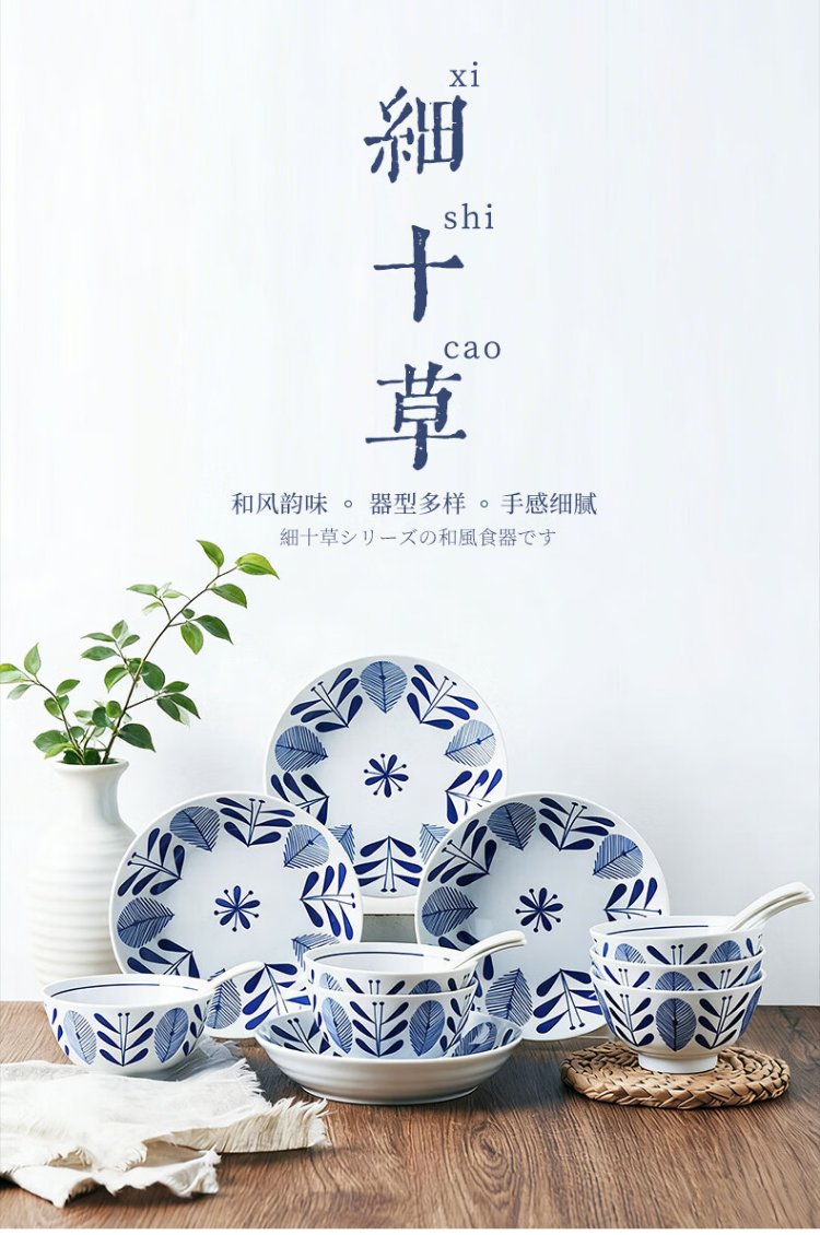 Yi Jia (IJARL) bowl and dish set tableware set bowl and plate ceramic tableware home bowl gift housewarming 16-piece set of fine ten grass