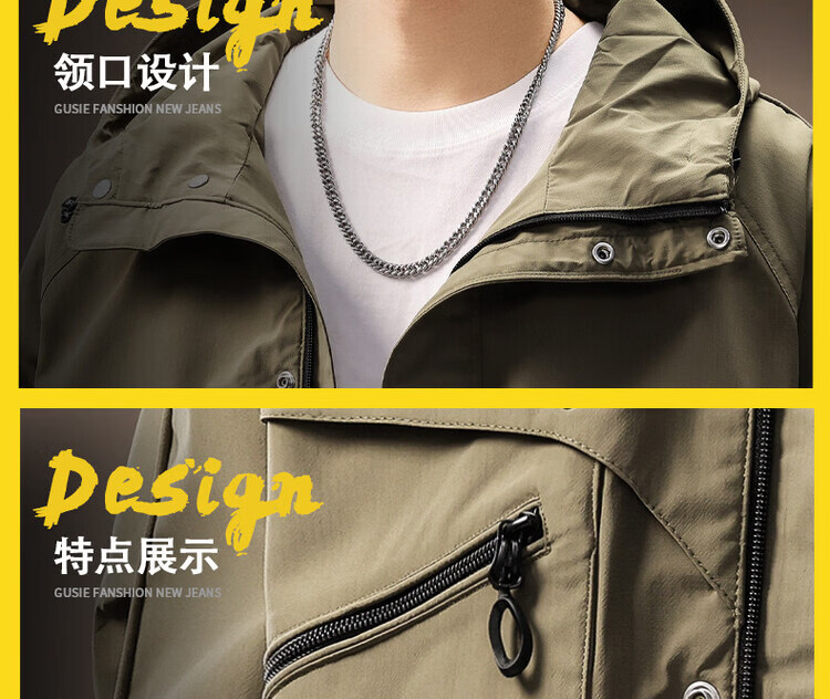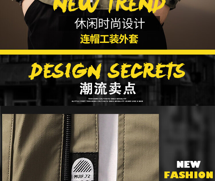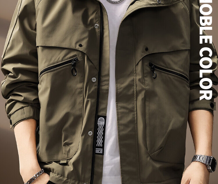 Noble color high-end American hooded work jacket for men spring and autumn new sports outdoor windproof assault jacket top