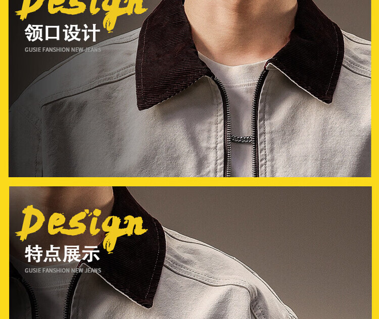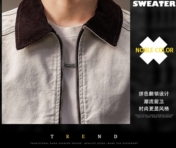 Noble color high-end American retro work jacket men's trendy brand spring and autumn pure cotton outdoor Detroit casual denim jacket
