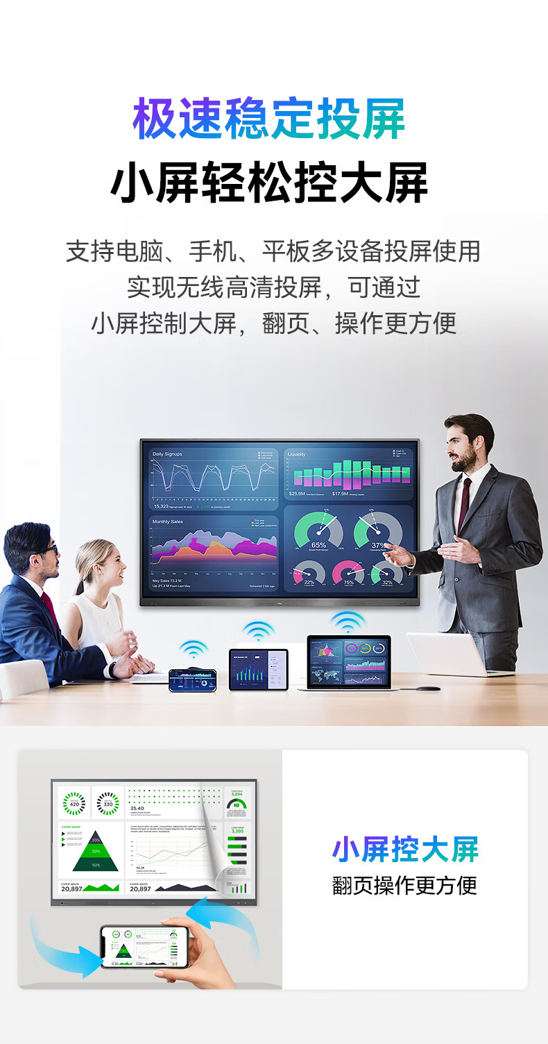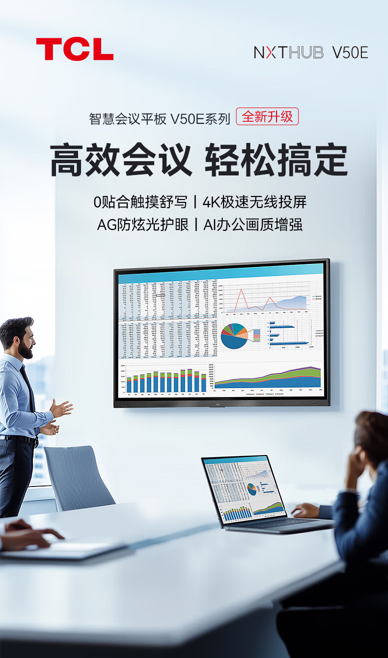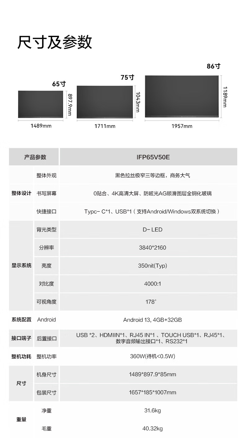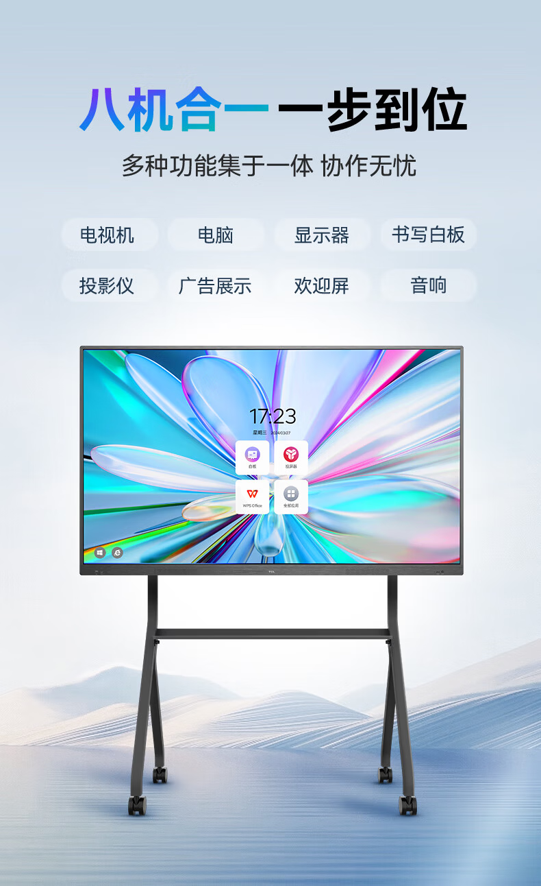 TCL conference tablet all-in-one 65-inch touch TV handwriting whiteboard wireless projection teaching training smart TV commercial office IFP65V50E free screen projection device + cart