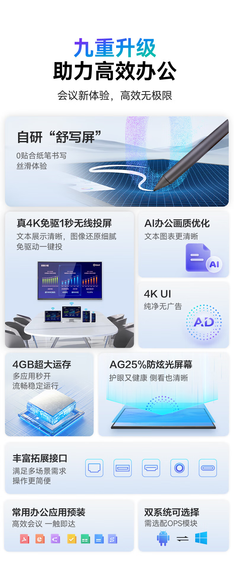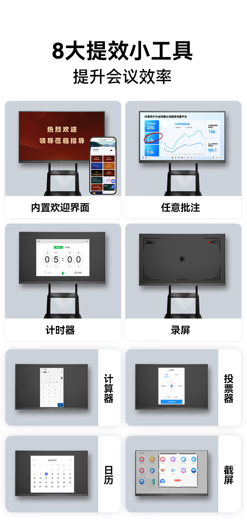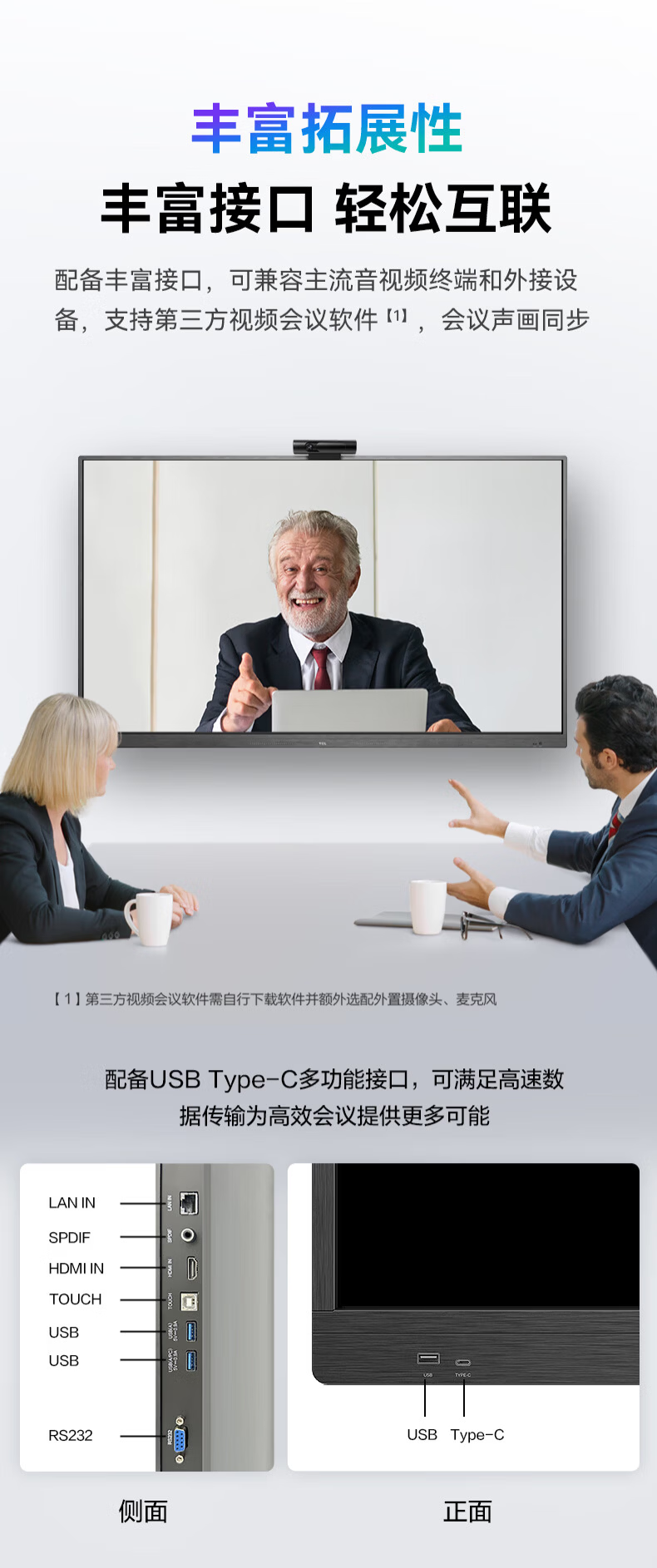 TCL conference tablet all-in-one 65-inch touch TV handwriting whiteboard wireless projection teaching training smart TV commercial office IFP65V50E free screen projection device + cart