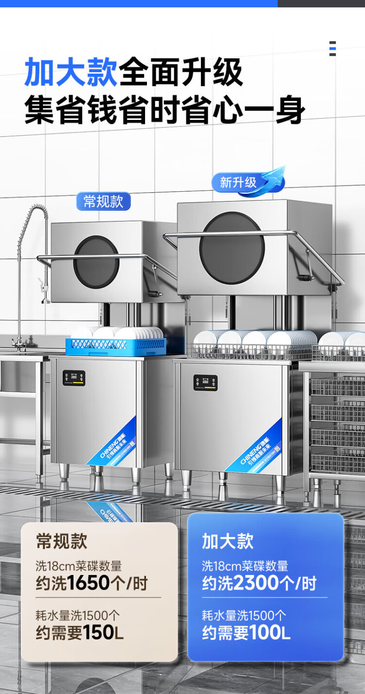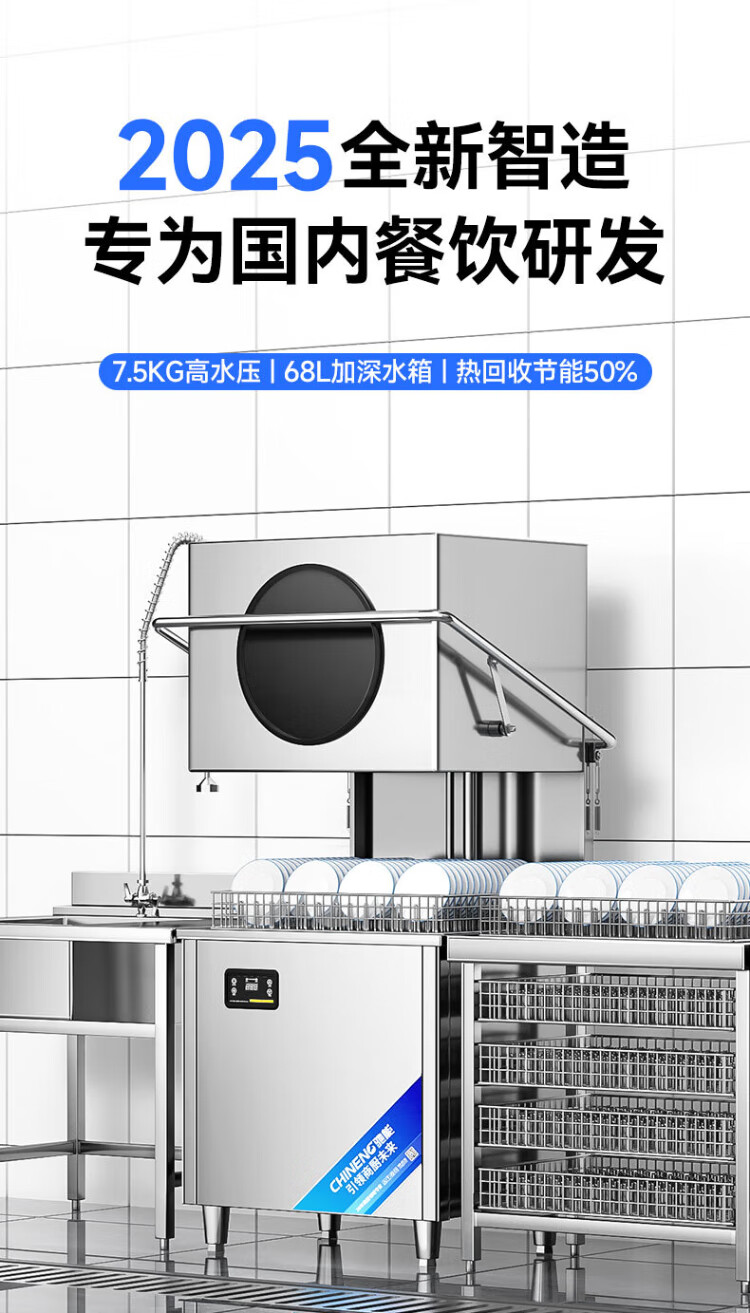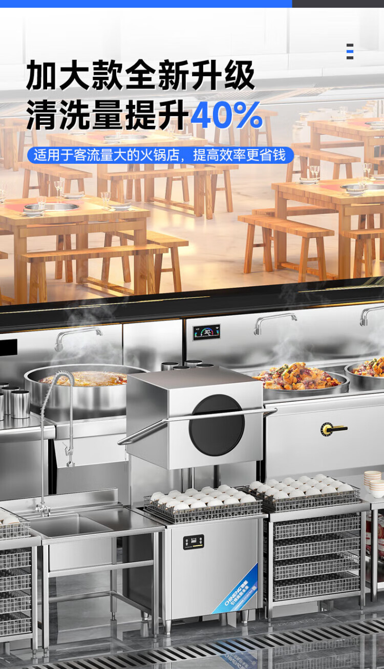 CHINENG commercial dishwasher for restaurants, hotel canteen chain catering, fully automatic large-capacity kitchen lift-type lid dishwasher, stainless steel plate and dishwasher, entrepreneurial upgrade, free maintenance + live water circulation + national standard 304 + new customer gift