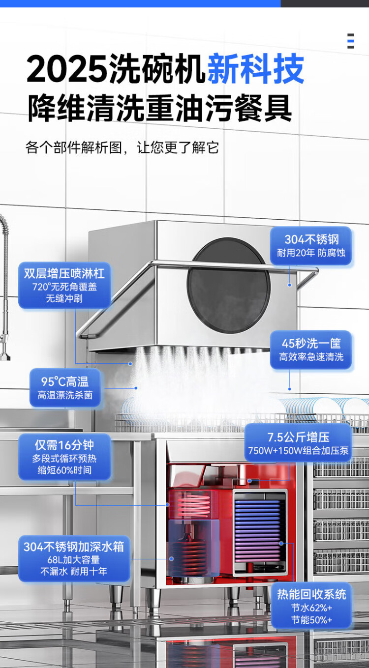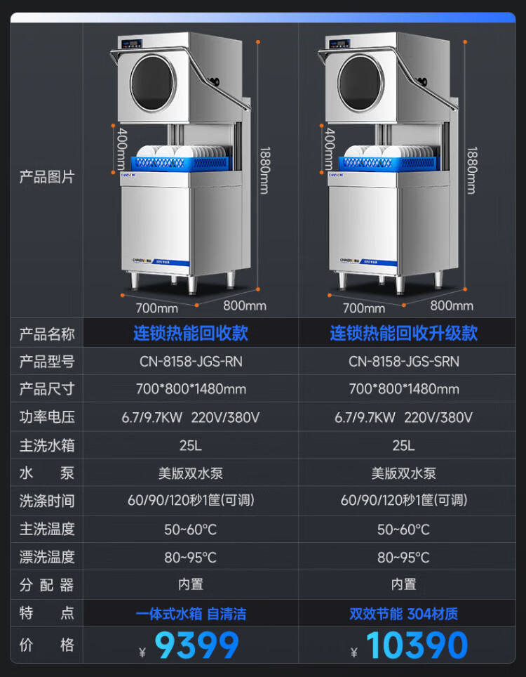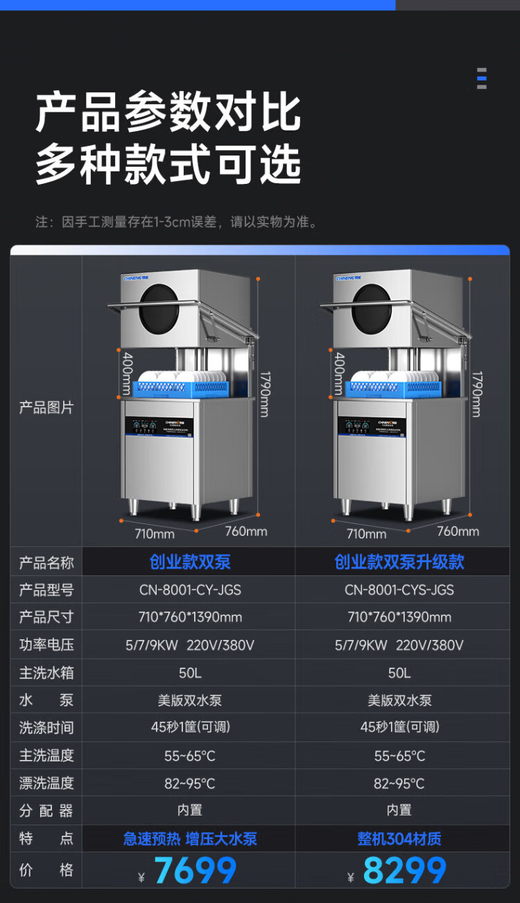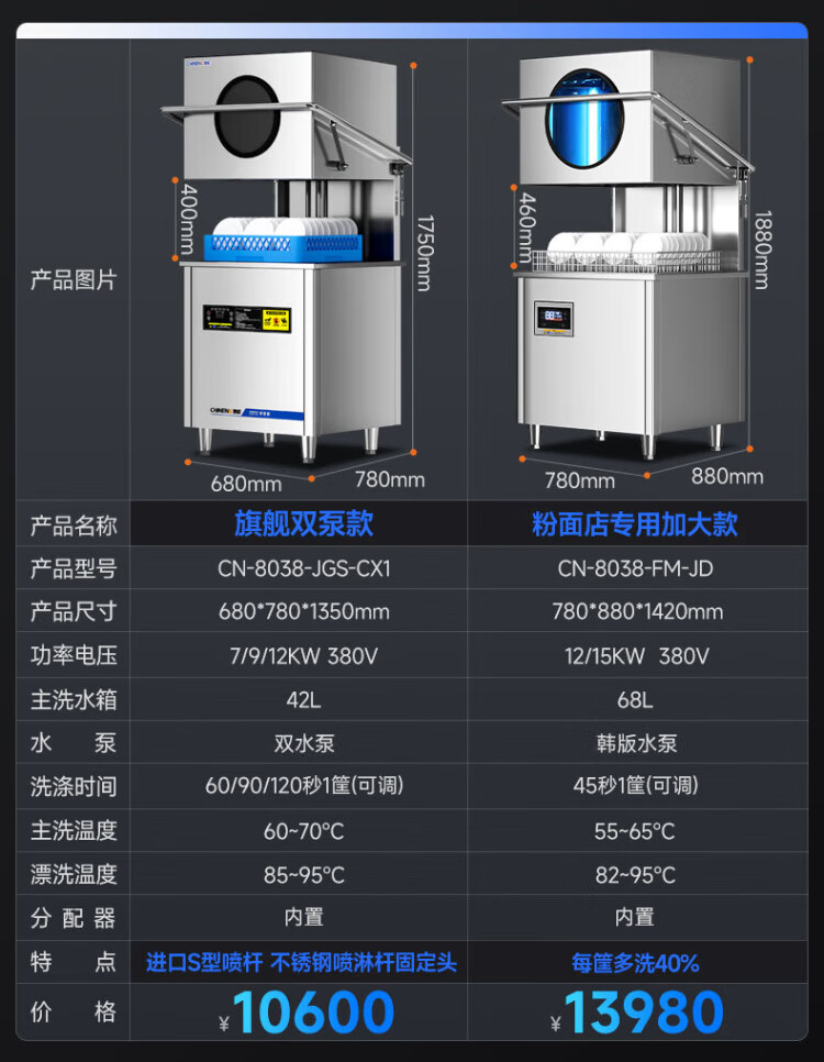 CHINENG commercial dishwasher for restaurants, hotel canteen chain catering, fully automatic large-capacity kitchen lift-type lid dishwasher, stainless steel plate and dishwasher, entrepreneurial upgrade, free maintenance + live water circulation + national standard 304 + new customer gift