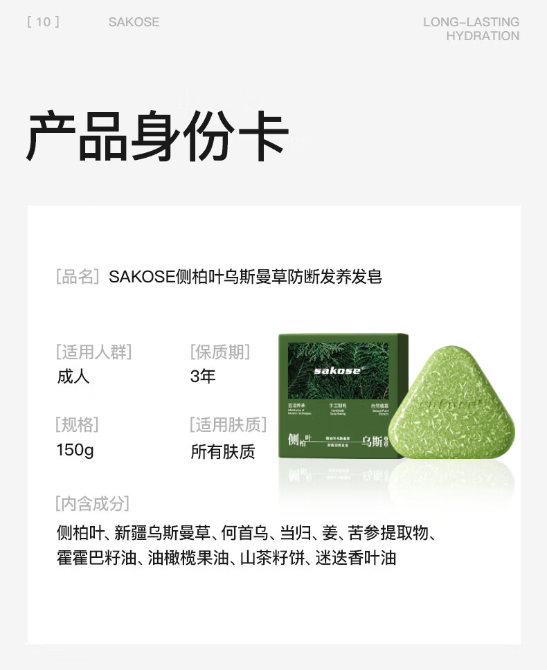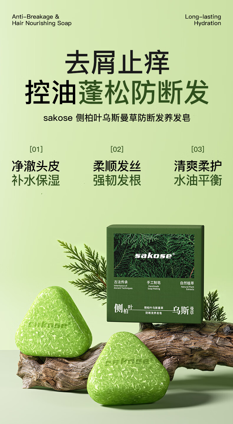 Sakose Platycladus arborvitae leaf Usman grass anti-hair breakage shampoo shampoo soap 150g oil control fluffy anti-dandruff hair solid soap hair nourishing soap