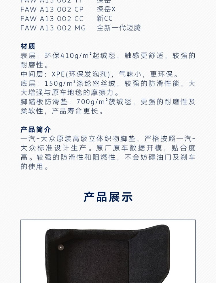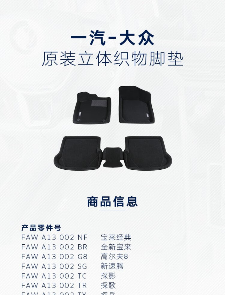 FAW-Volkswagen in-store service original accessories three-dimensional fabric floor mats Tanyue three-dimensional fabric floor mats