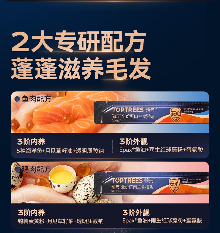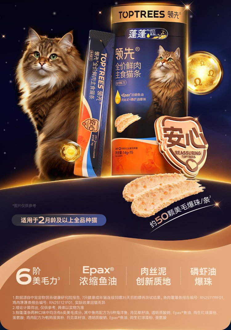 Leading full-price fresh meat staple cat strips, fluffy strips, mixed flavor, beautiful hair, beautiful hair, shredded pork paste texture, 14g*90 strips