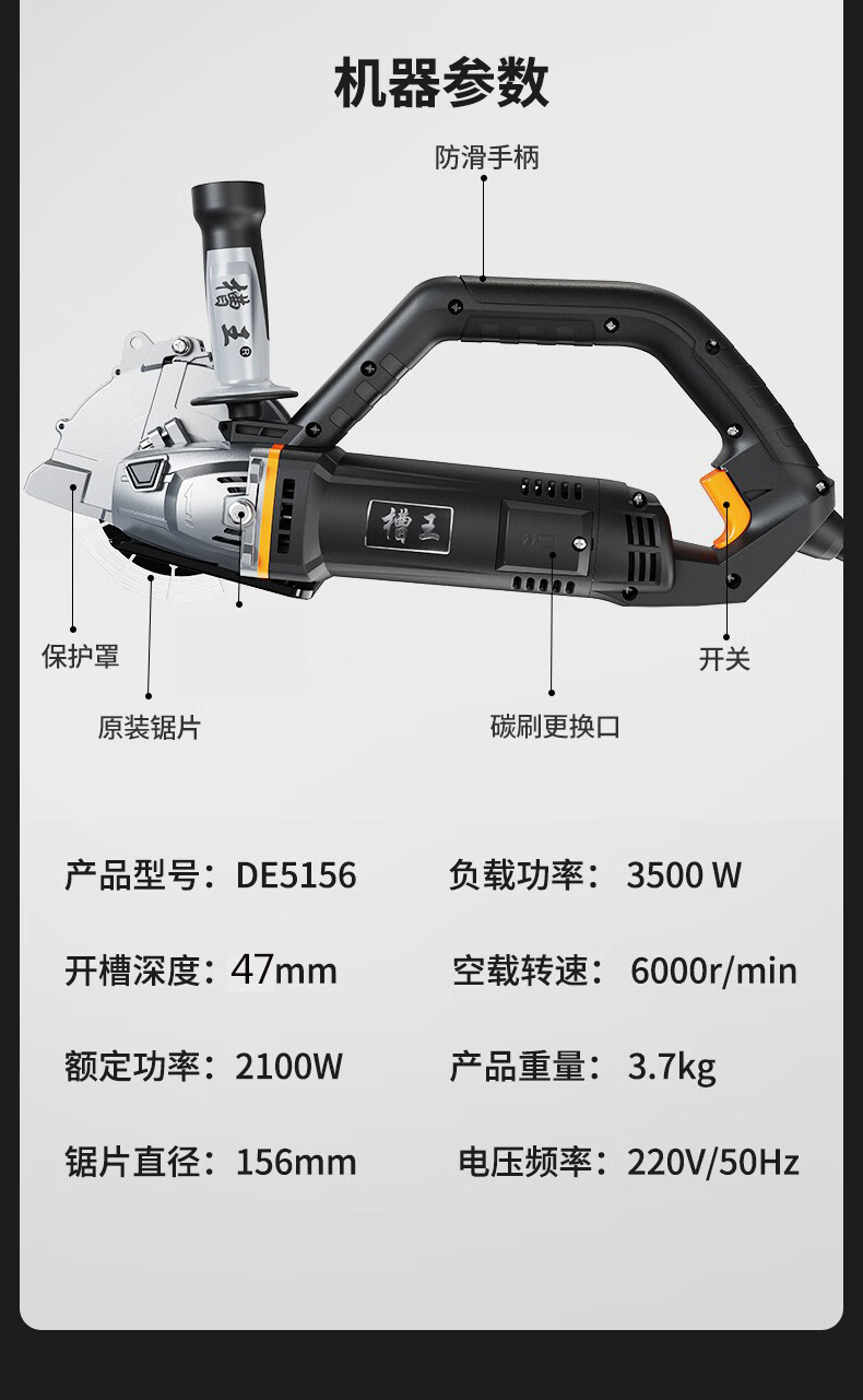 Groove King Single-chip grooving machine, cutting machine, wire opening box, dust-free cutting, water and electricity installation, high-power marble machine, wall trunking DE5156