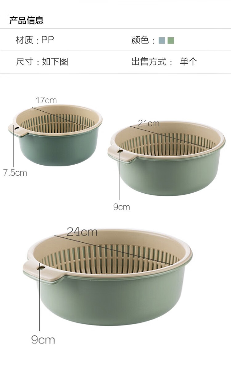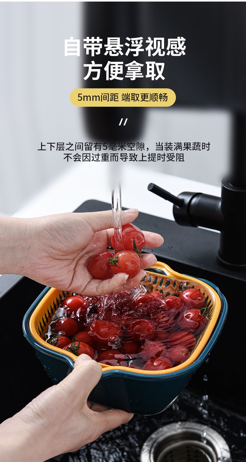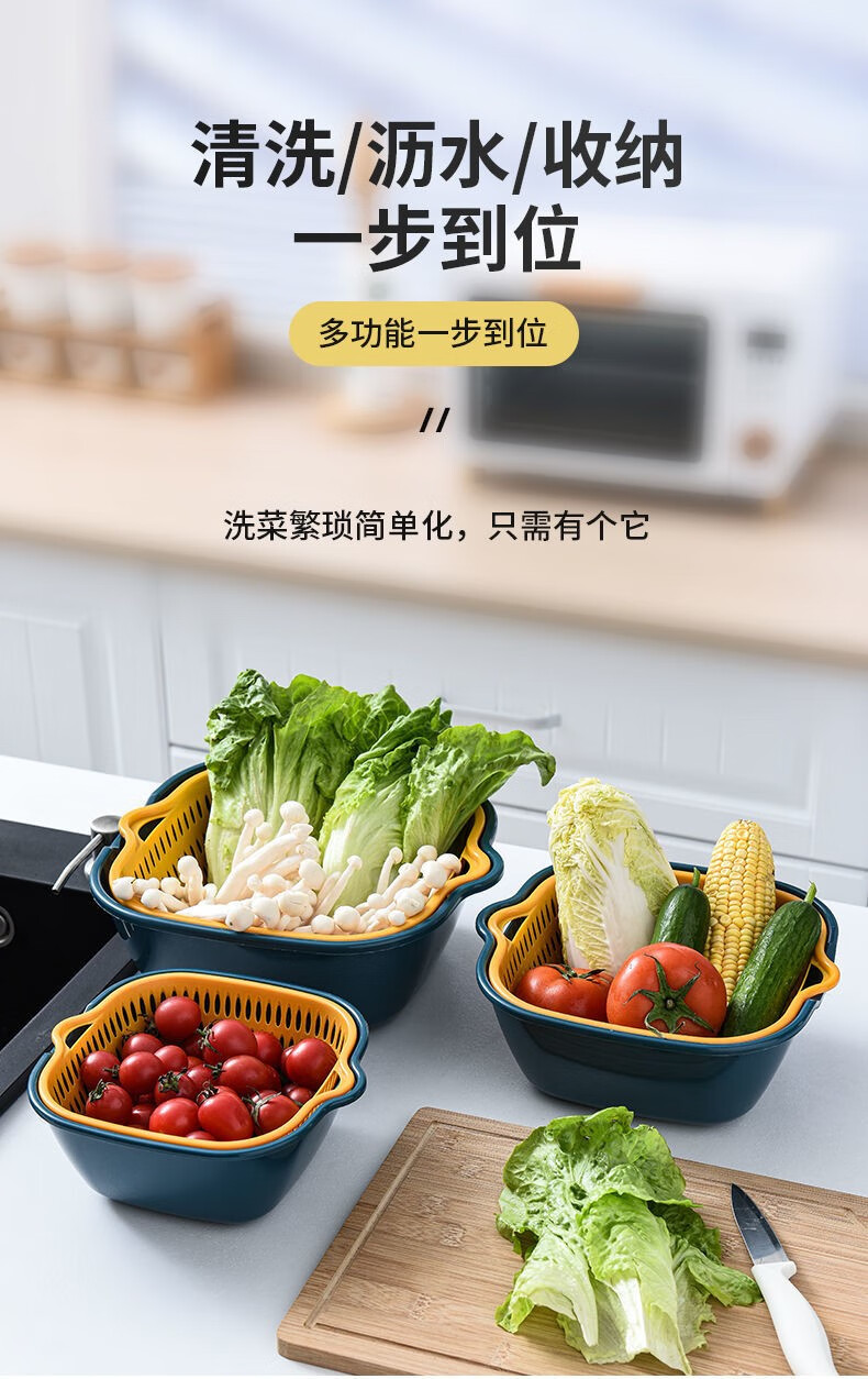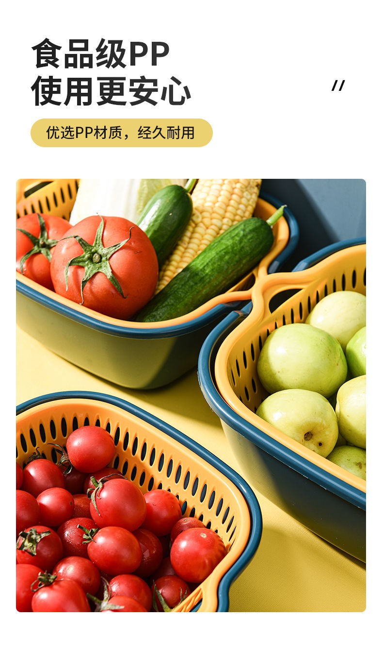 Iron Islands 6-piece set of double-layer drain basket kitchen drain basket household multi-functional vegetable basket storage basket vegetable basket small + medium + large 6-piece set - mixed color 3L