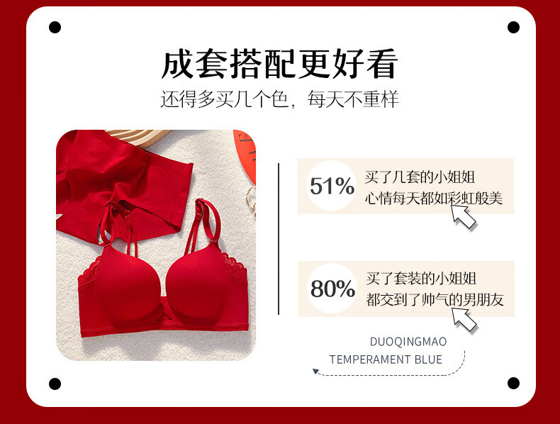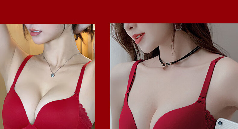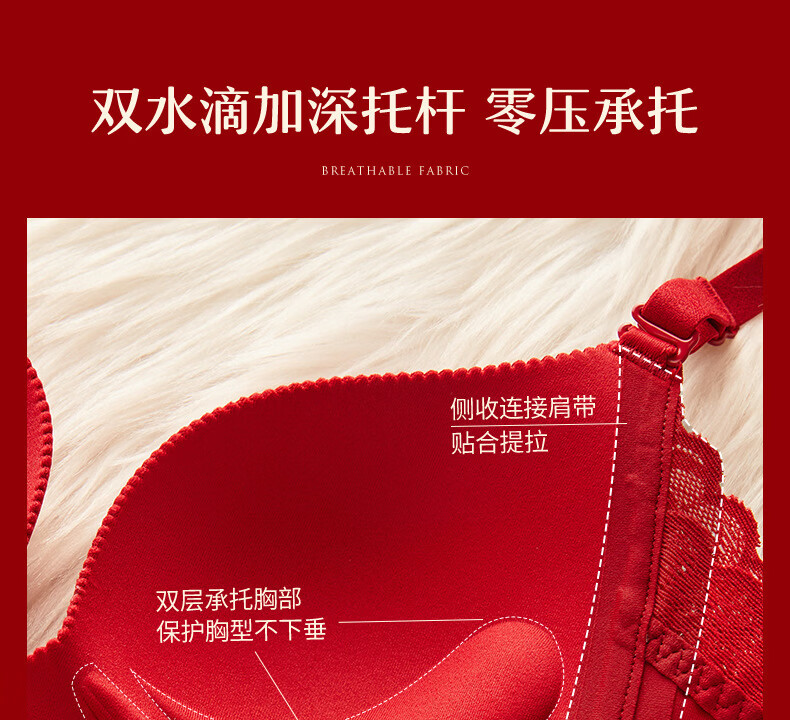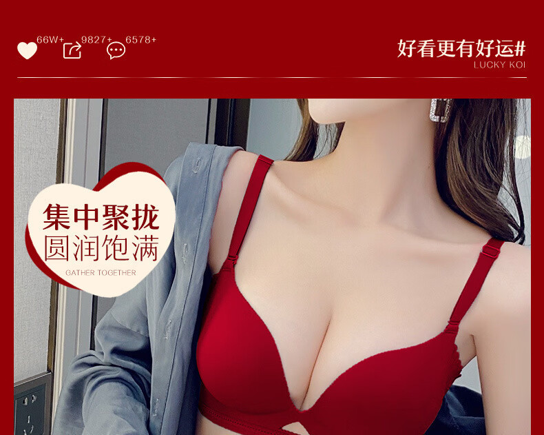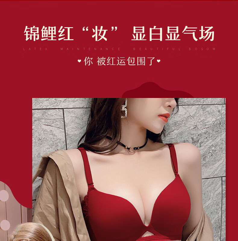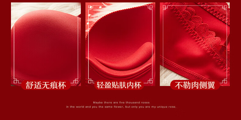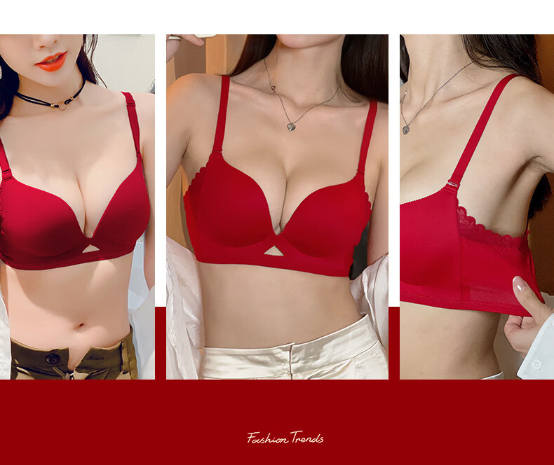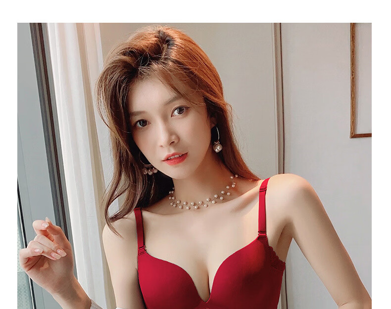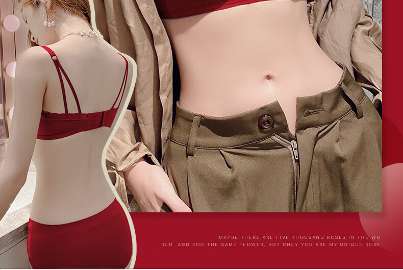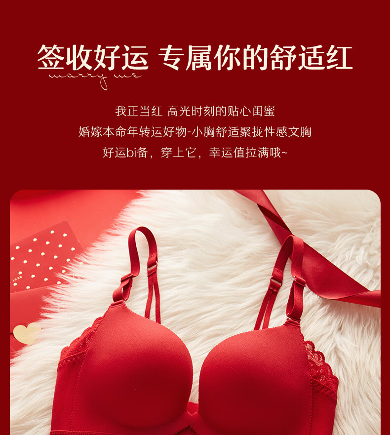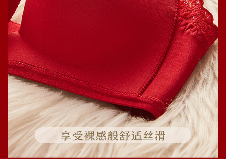 ANDSEEYOU zodiac year red underwear women's small breasts gathered seamless beautiful back wedding bridal bra bra set New Year's gift