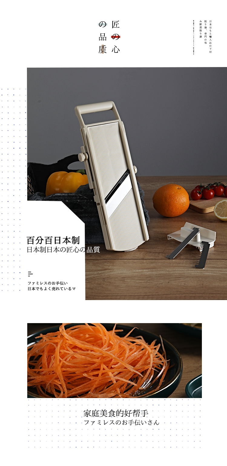 Shimomura Japanese imported shredder and grater, multifunctional grater, vegetable cutter, slice and shred thickness, adjustable grater