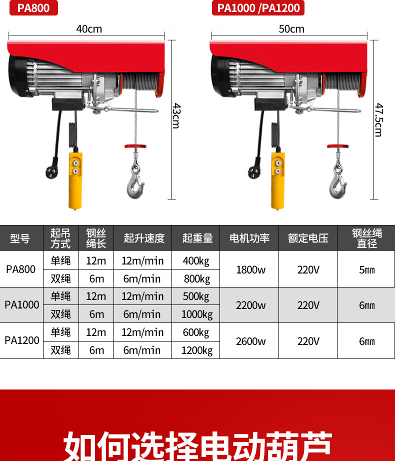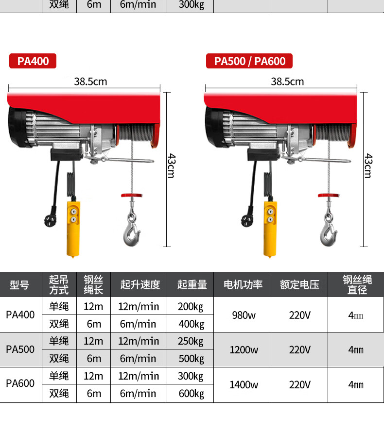 Jinyou mini electric hoist 220V household crane small hoist 1 ton 0.5 ton winch lifting crane PA200-12 meters (upgraded model)