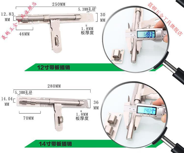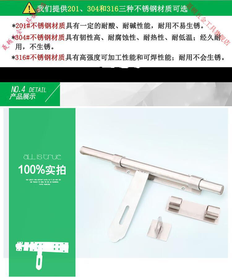 Stainless steel door bolt with plate latch lock thickened stainless steel mortise lock door latch with large bright latch premium thickened solid core (can be invoiced) 14 inch plate latch 201#