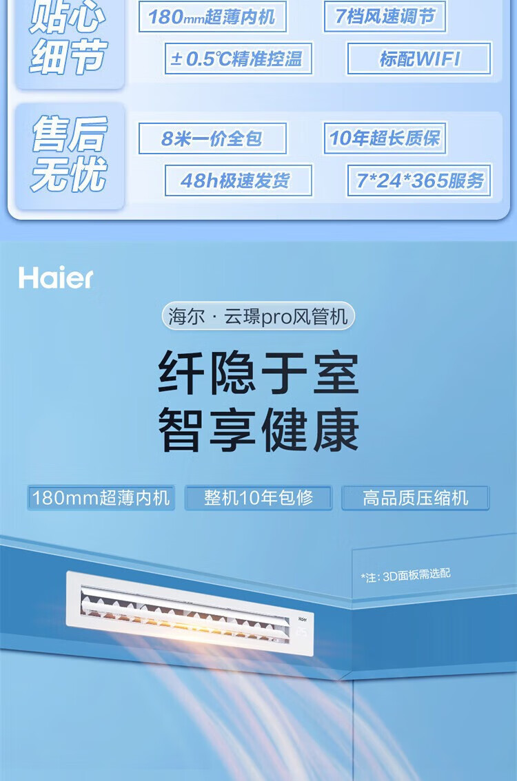 Haier 1.5/2/3 HP central air conditioner duct machine household one-to-one full DC variable frequency first-level energy efficiency embedded air conditioner ultra-thin silent bedroom living room heating and cooling card machine 1.5 HP first-level energy efficiency Haier new product丨Installation included