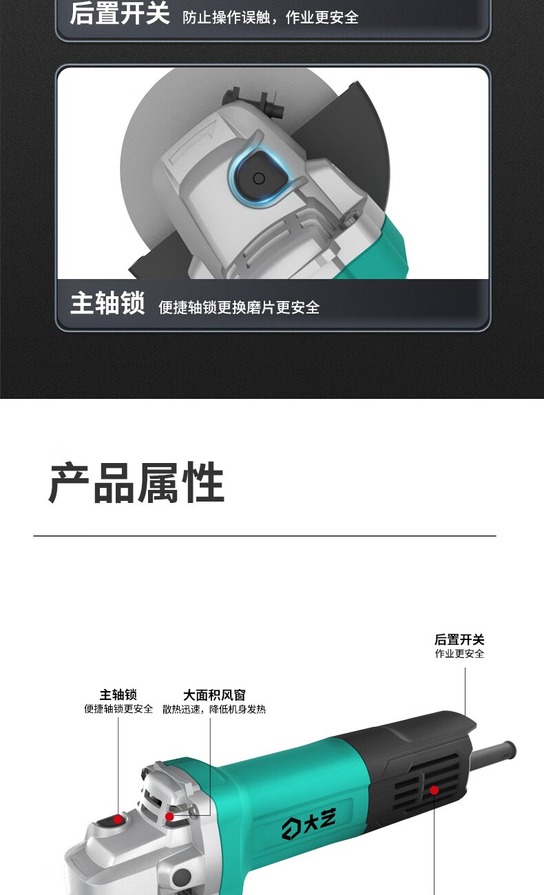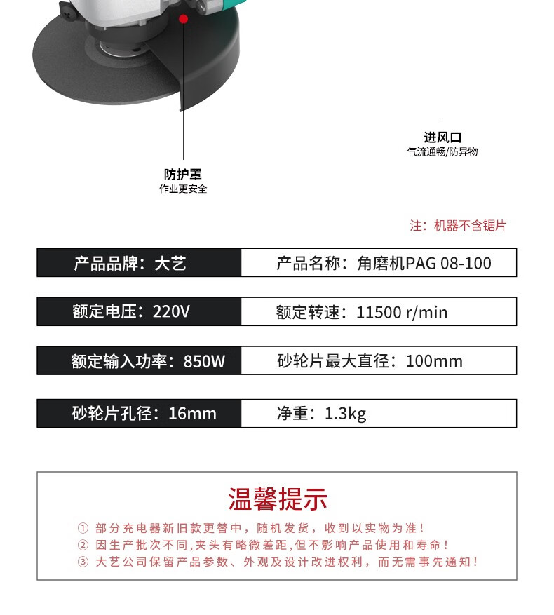 Dayi angle grinder polisher household industrial cutting machine hand grinding polishing machine hand grinding wheel power tool 08-100 PAG 08-100 bare metal