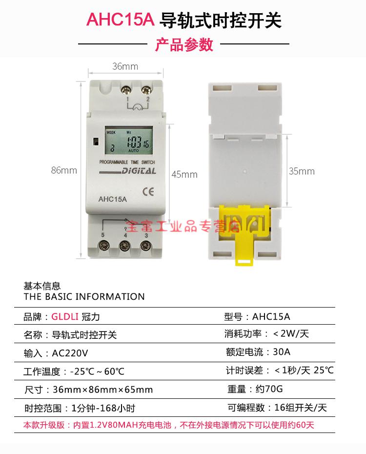 Suitable for AHC15A rail-type time control switch 220v timer time switch THC15A fully automatic time controller regular model 220V