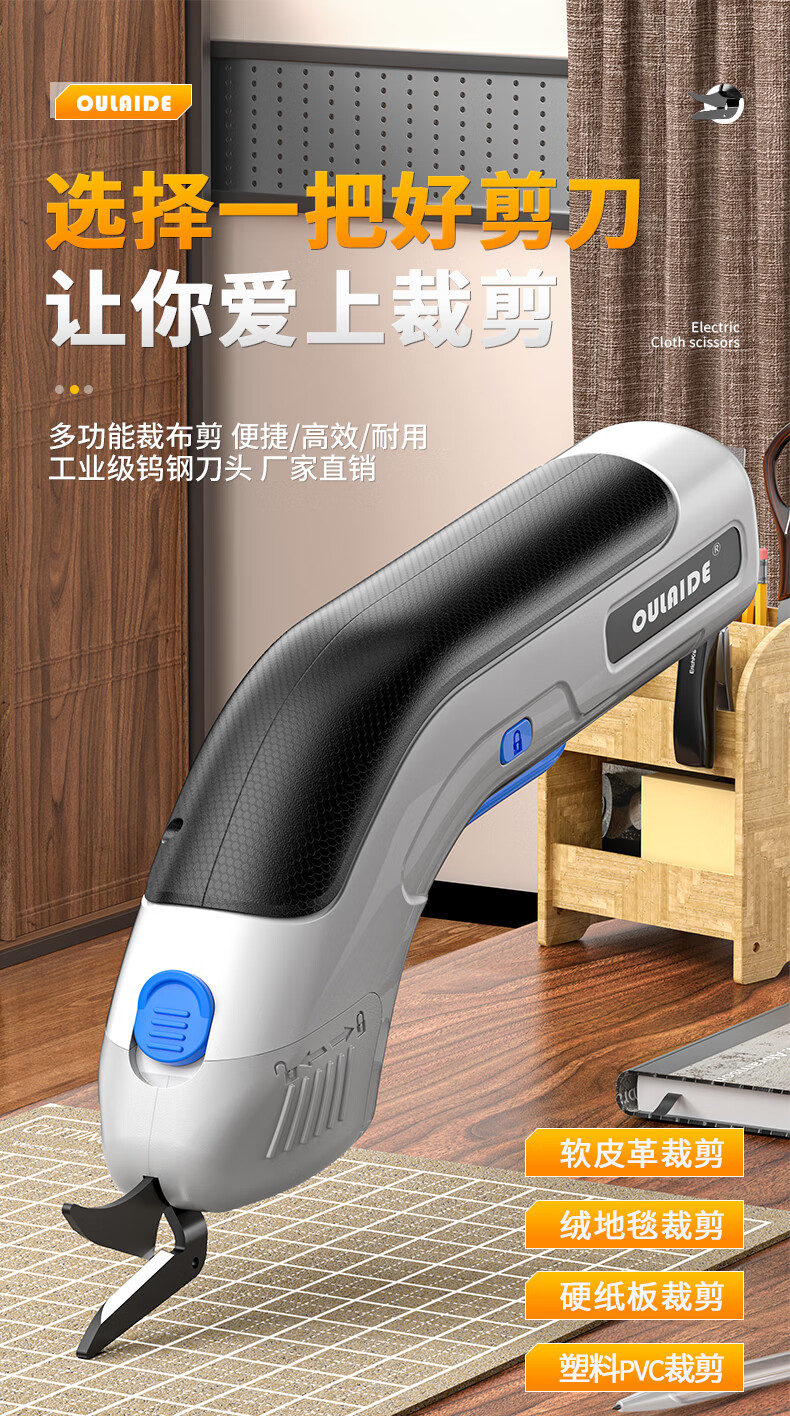 OLED electric scissors lithium-ion hand-held cloth cutting artifact clothing cardboard carpet leather cloth cutting machine cloth cutting machine 6.8VF household rechargeable cloth cutting shears alloy head * 2 + carton