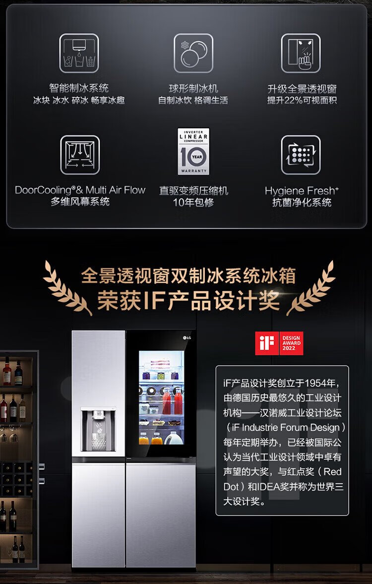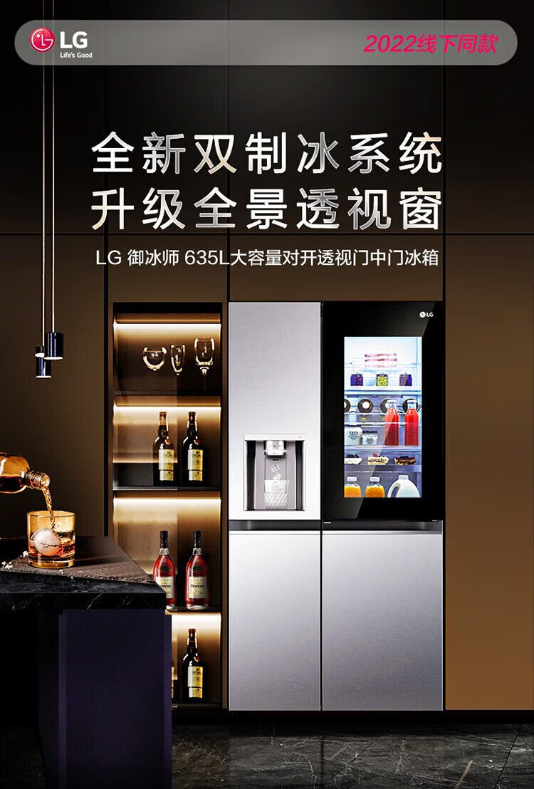 LG635L side-by-side refrigerator, fully automatic ice making machine, air-cooled, frost-free, energy-saving, variable frequency, purifying, flavor-preserving, see-through window door-in-door, household large-capacity smart embedded see-through window ice making machine, silver S651MB78B