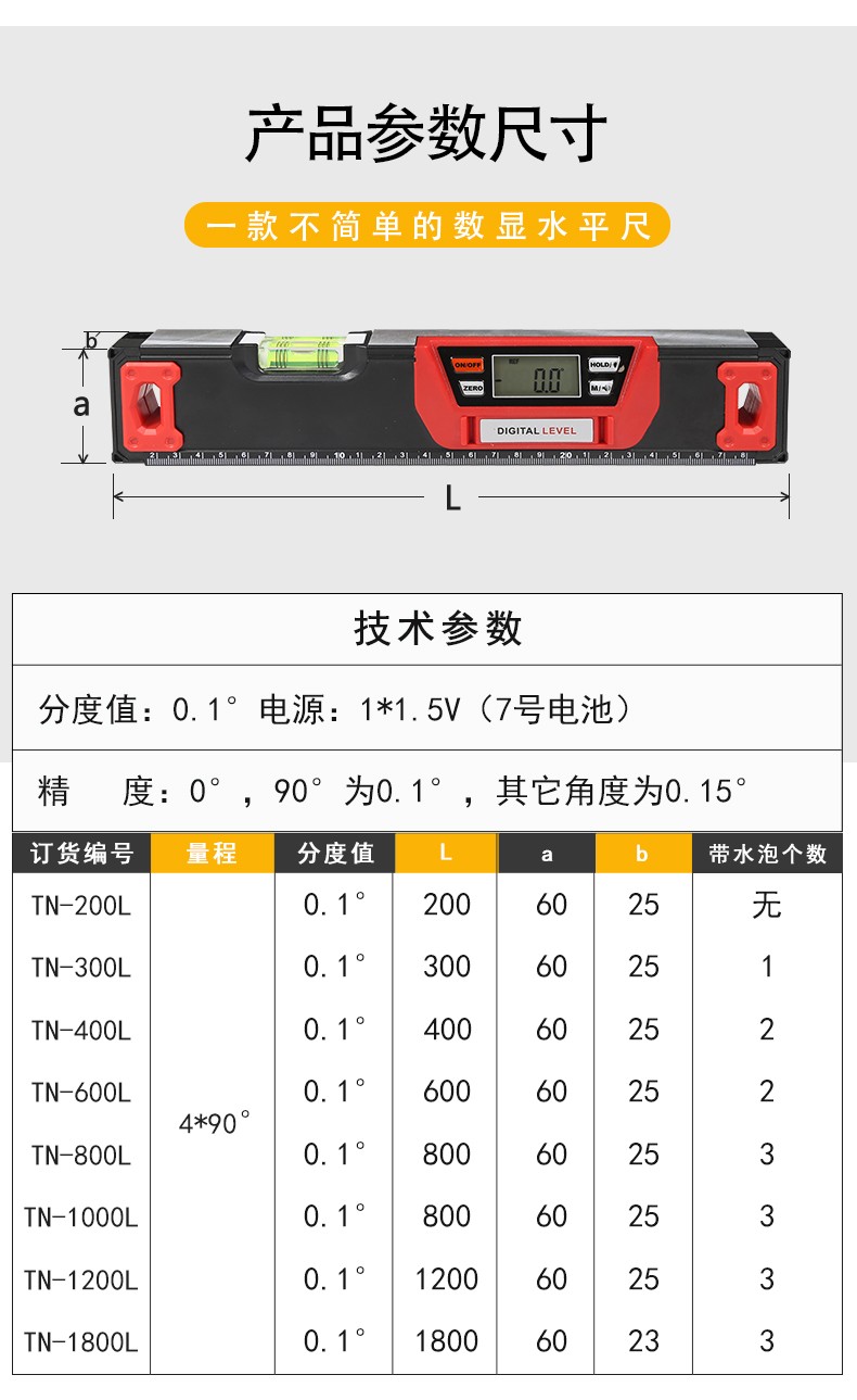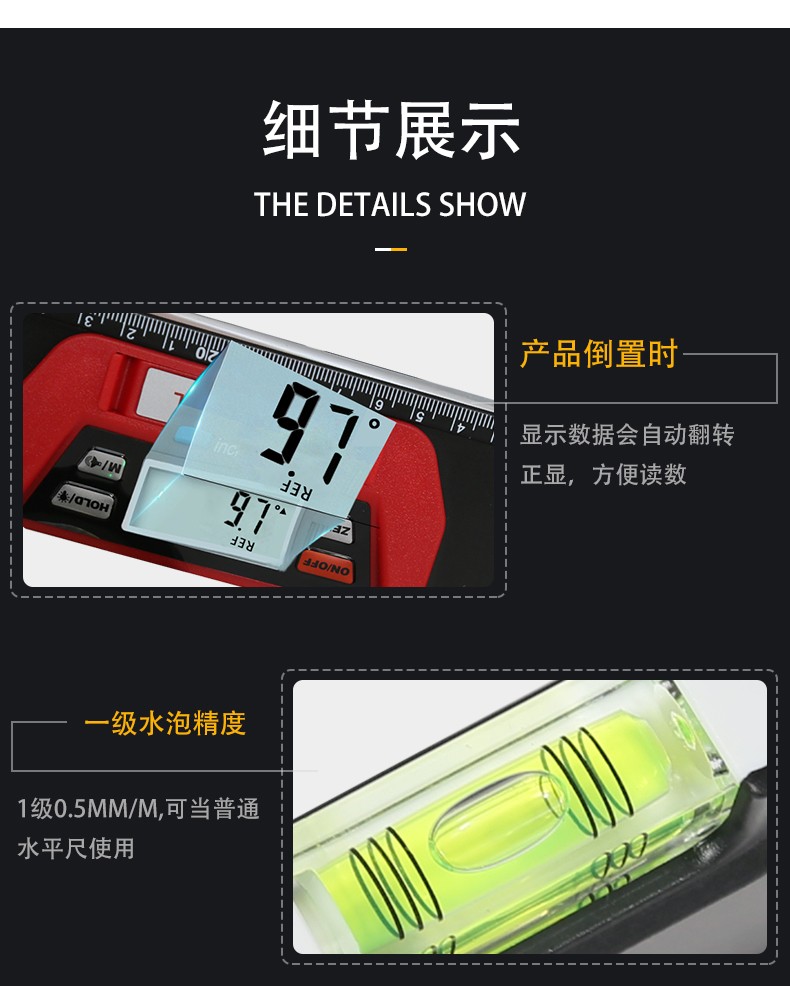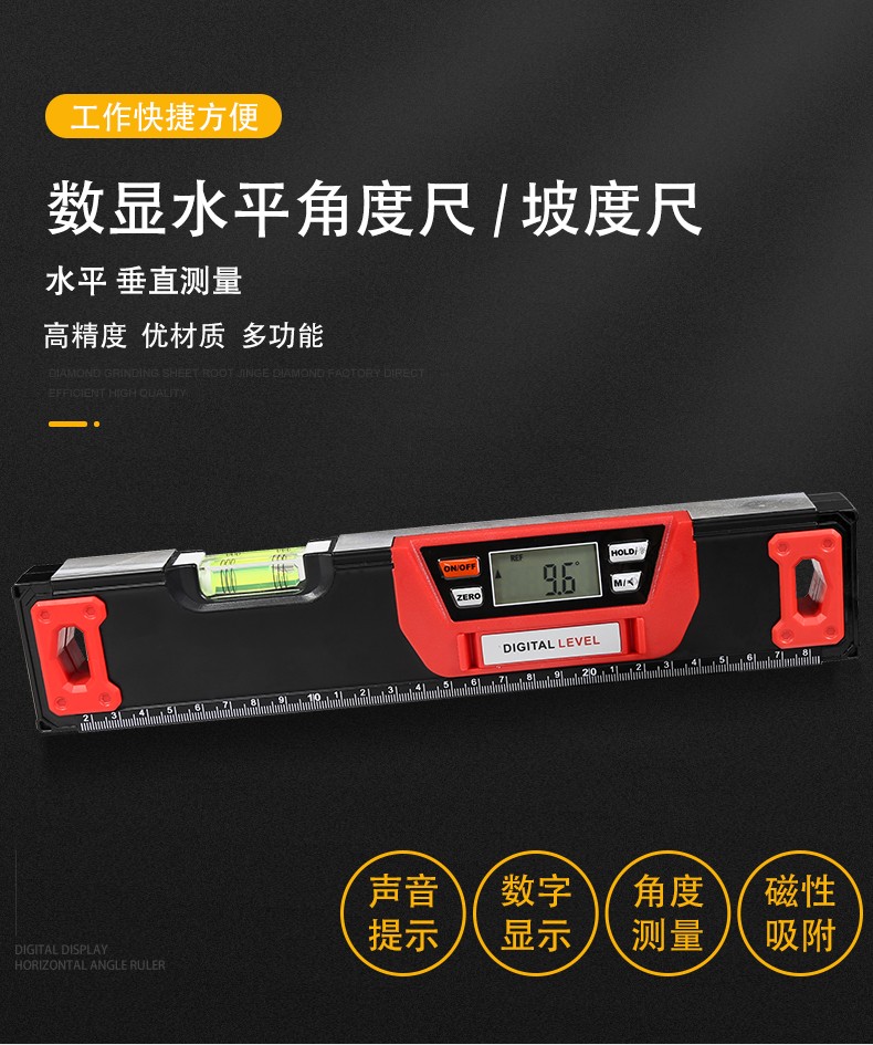GOODSUPERJST electronic digital display level high-precision decoration ruler imported magnetic slope ruler vertical level fan small 200-600 anti-fall new 300mm with 1 blister