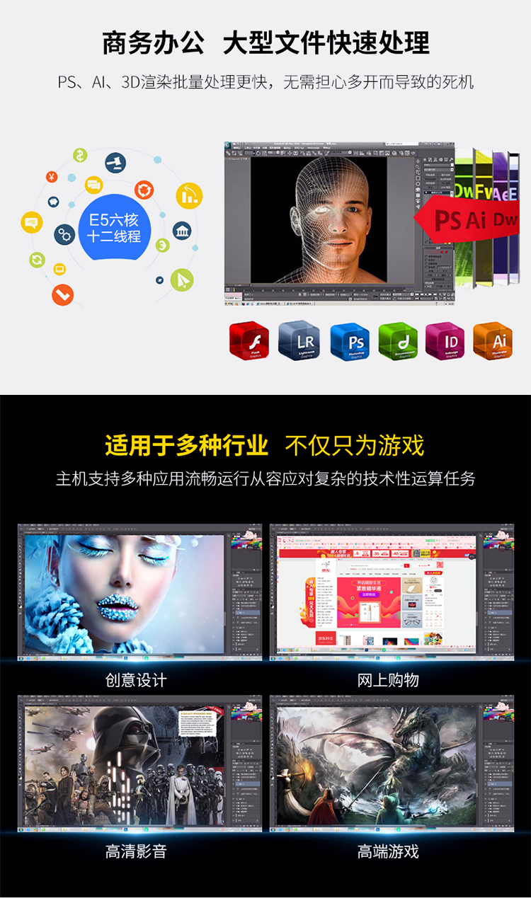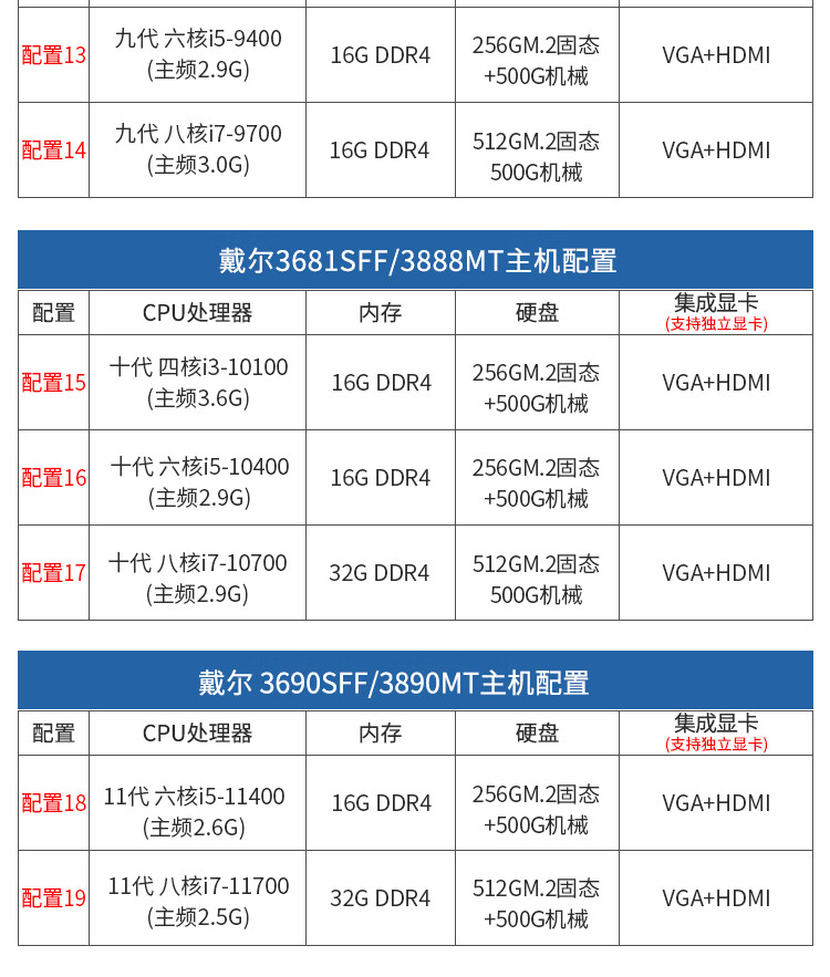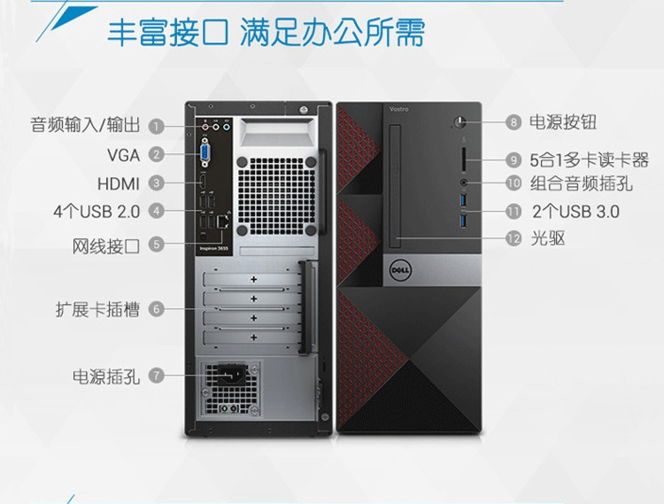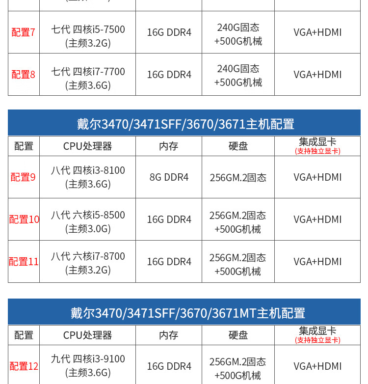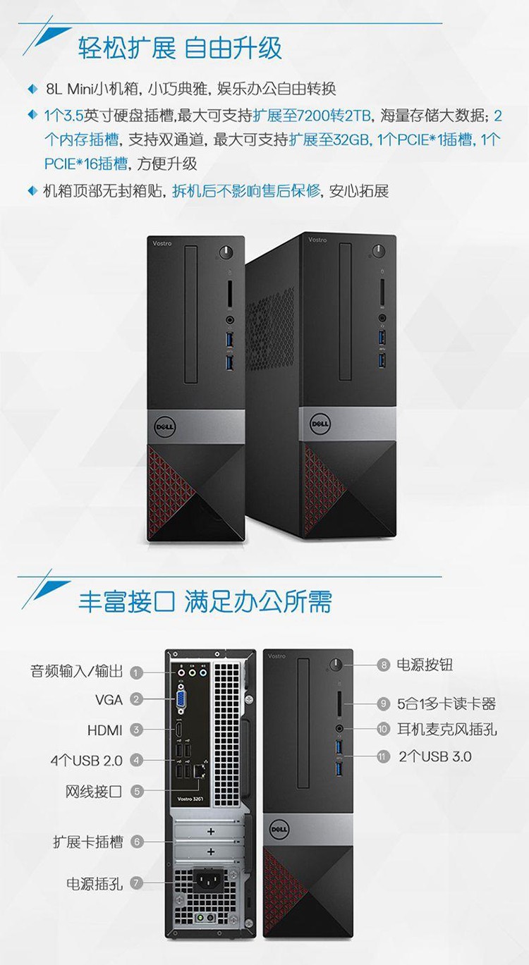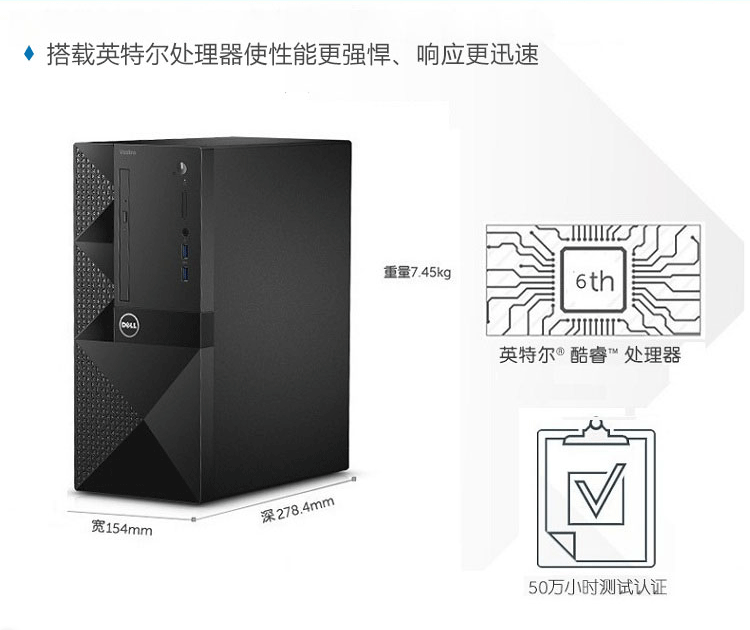 Second-hand 90% new Dell Vostro 6/7/8/9 generation desktop computer i3i5i7 home business office game console configuration 3 i5 6500+16G+240G+500G large chassis