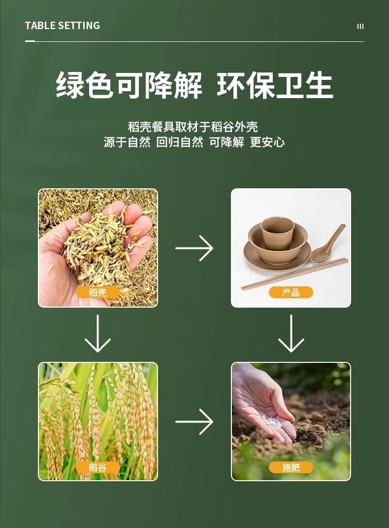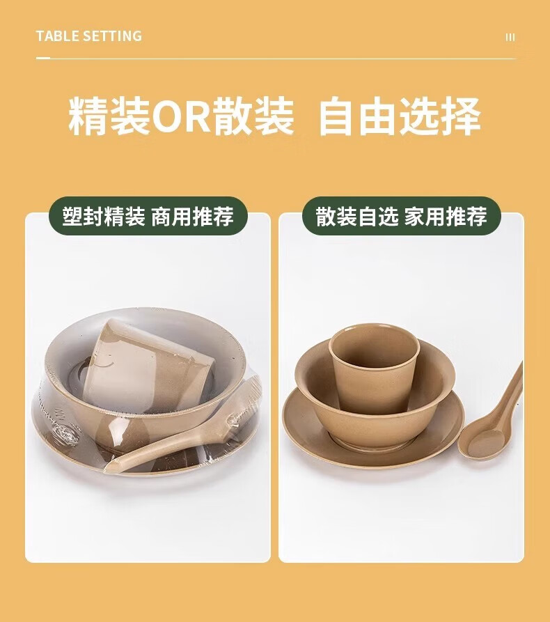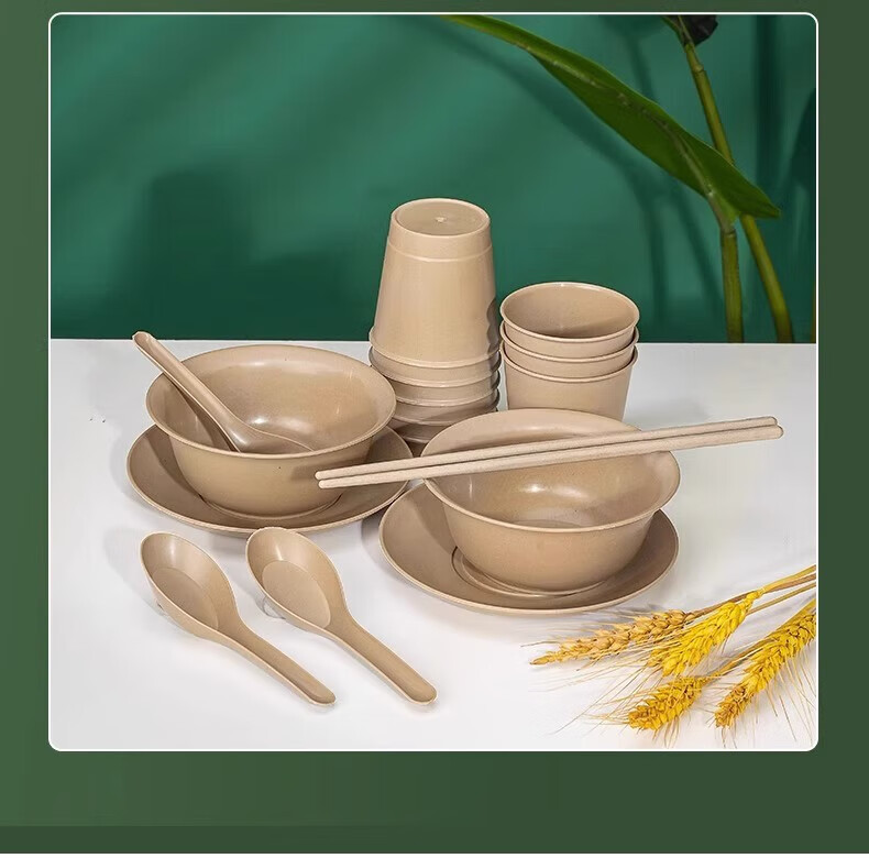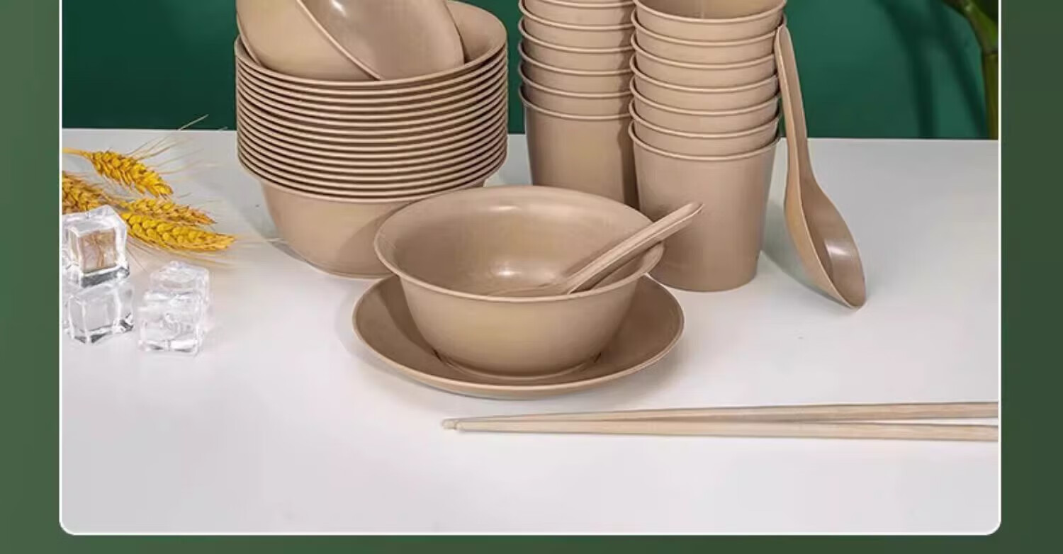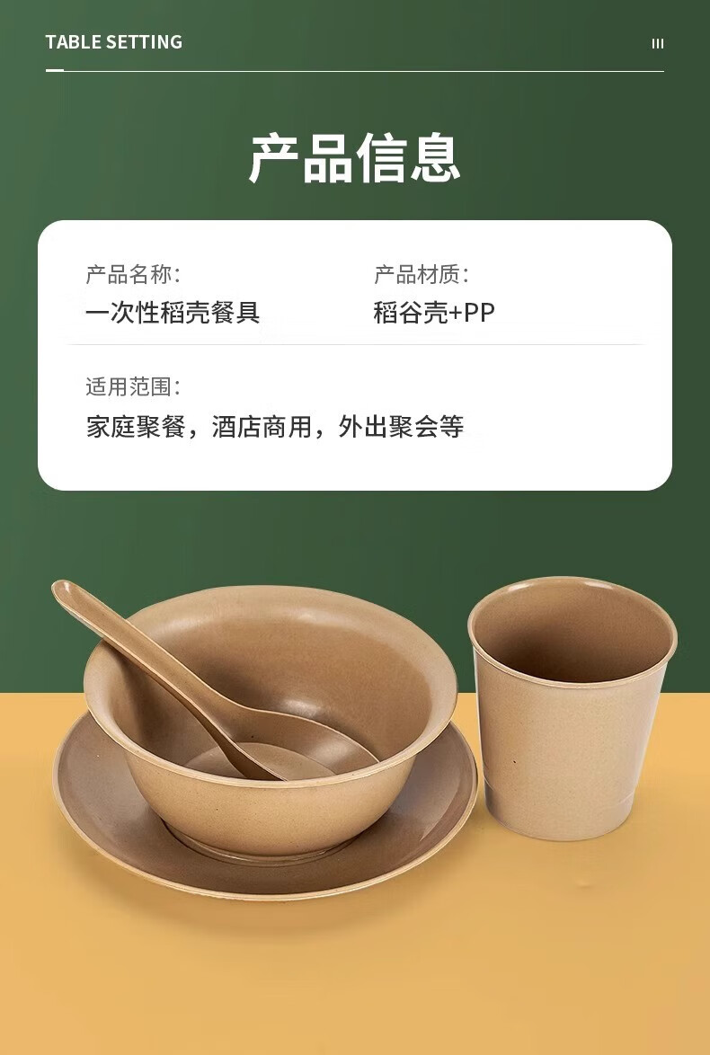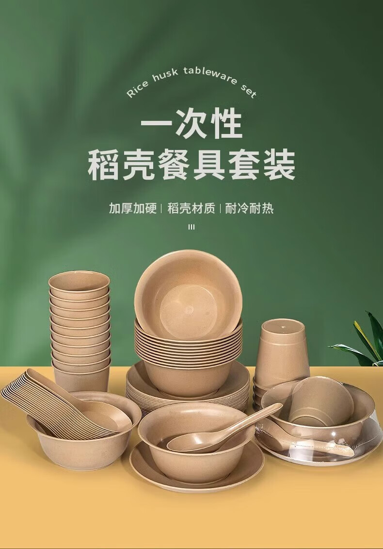 Shenfu disposable tableware set, biodegradable rice husk set, four-piece set, bowls, chopsticks, cups, spoons, plates, wine banquets, home use, natural rice husk octagonal cups, 50 pieces, combination pack