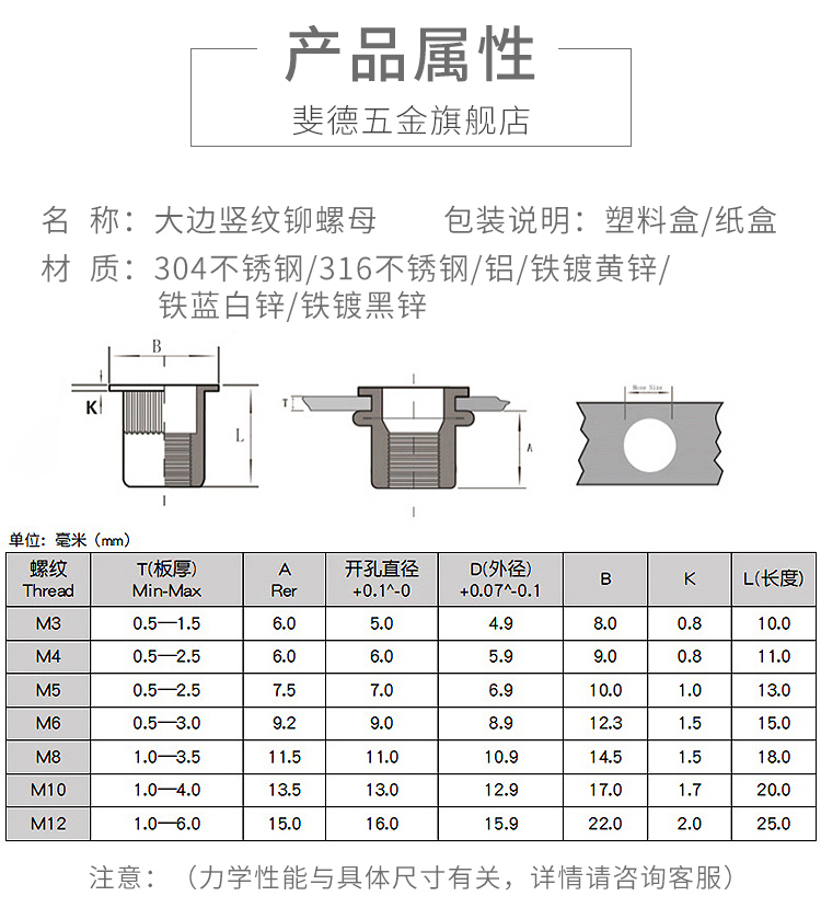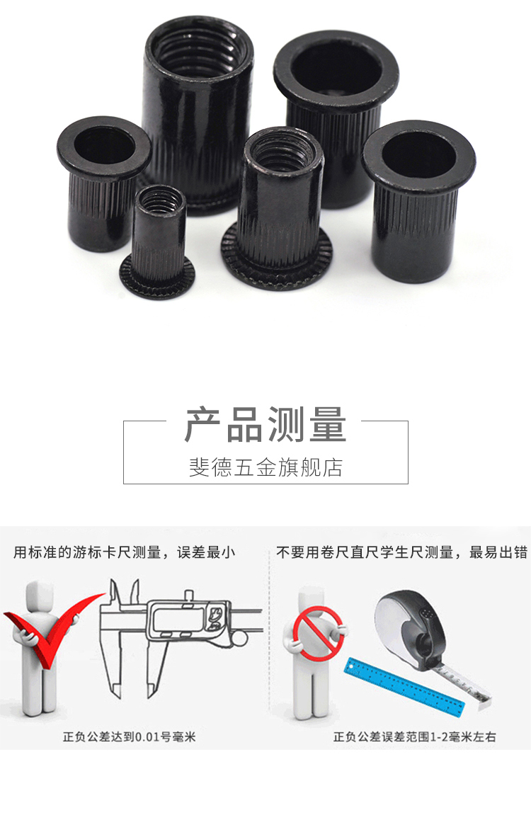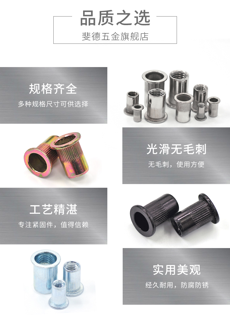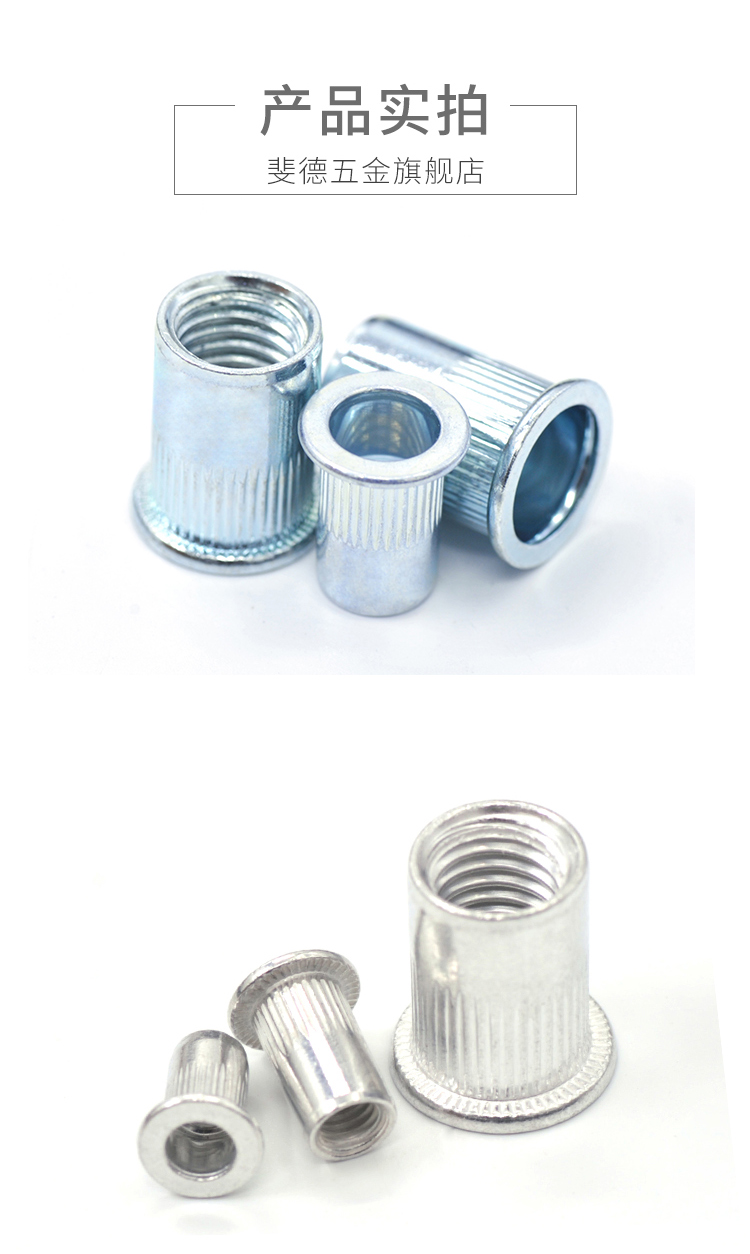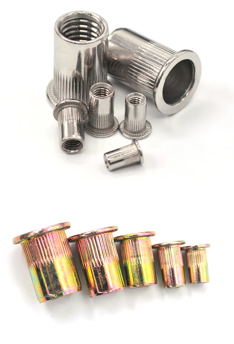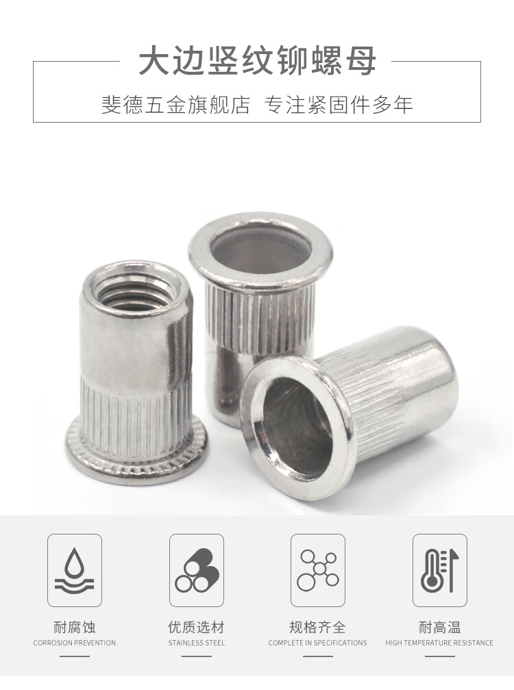 Feide large side vertical stripe rivet nut 304 stainless steel large side aluminum alloy cylindrical pull cap nut M3-M12 M6 stainless steel 304 (50 pieces)
