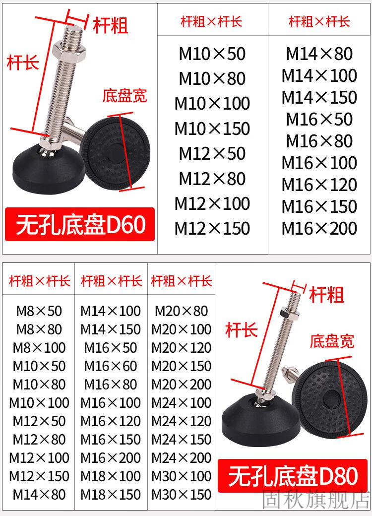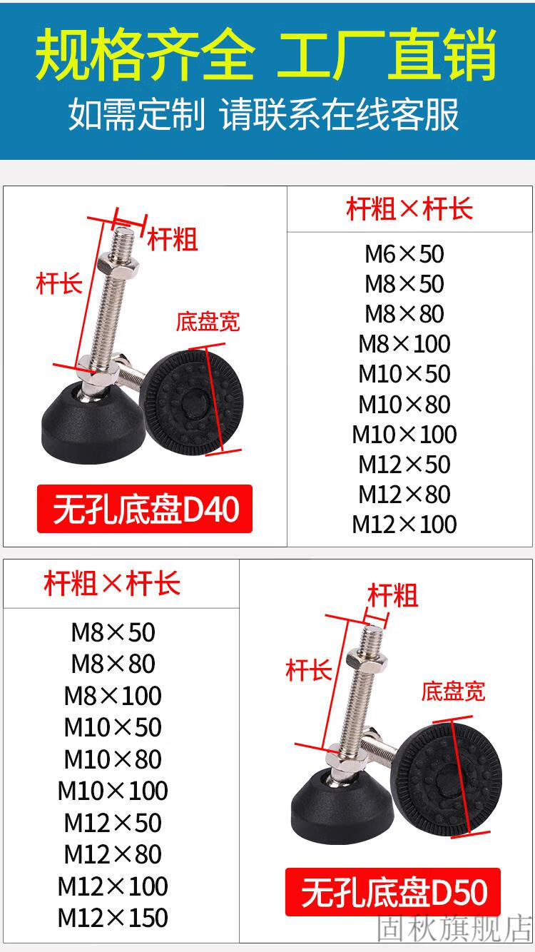 Fubang reinforced nylon universal adjustable foot cup rubber adjustment anti-slip anti-shock support joint hoof foot machine tool anchor screw milky white 40/M6*50 (10 pieces)