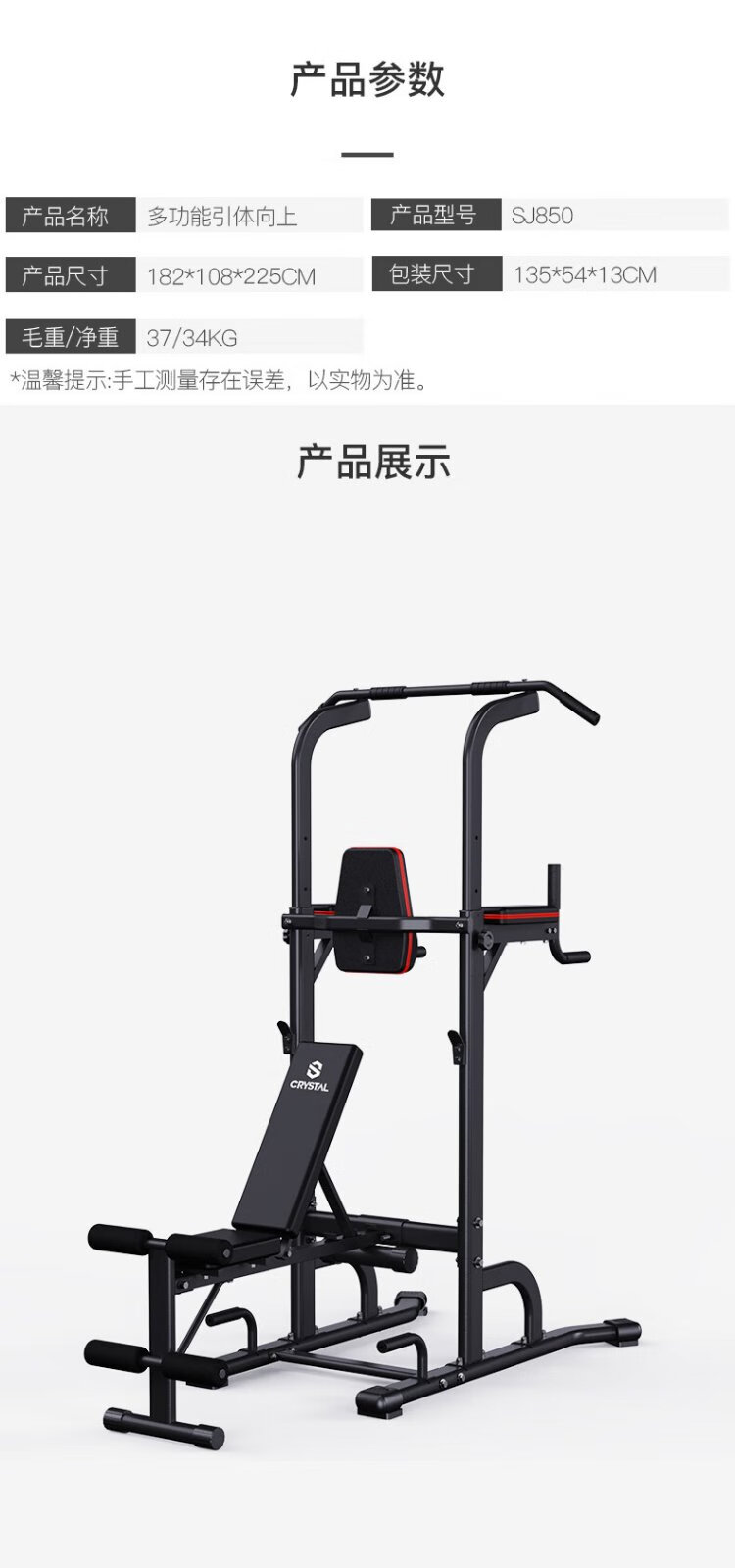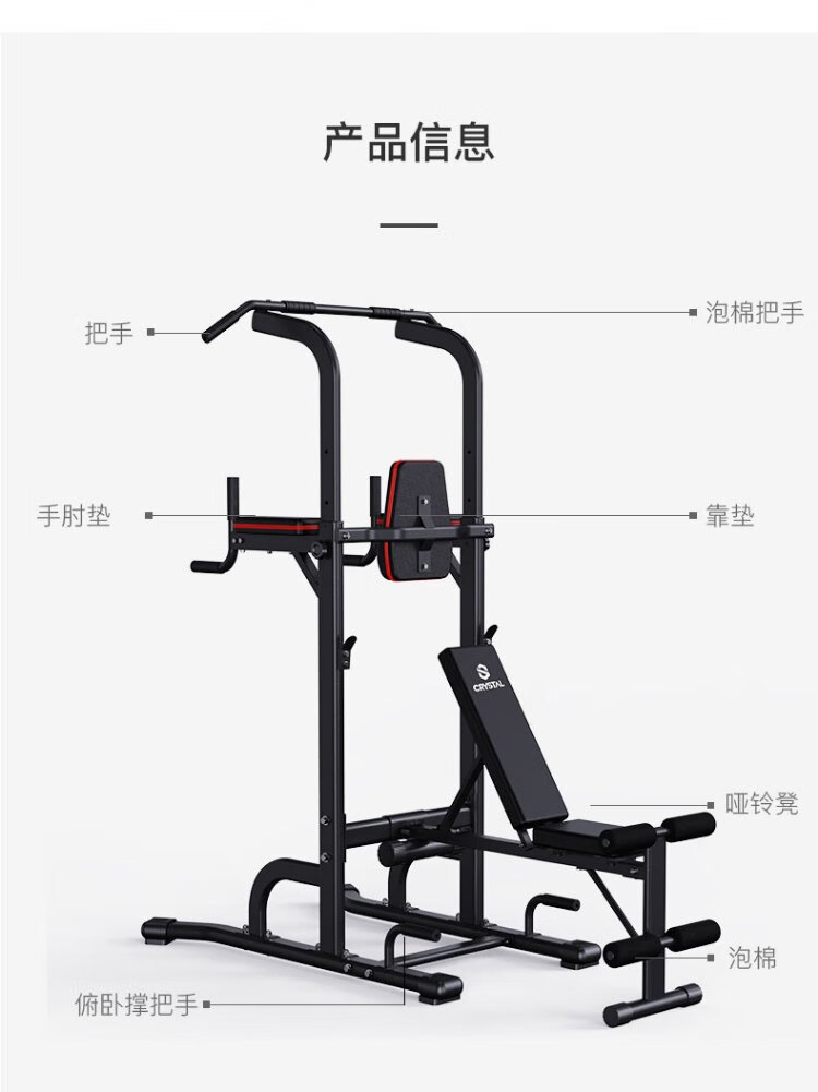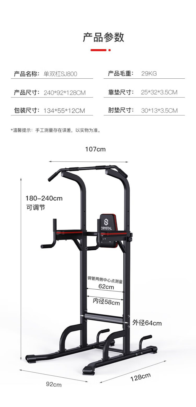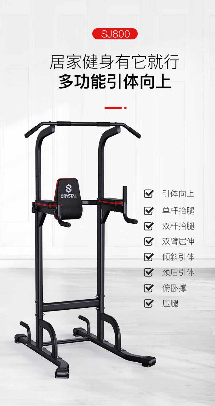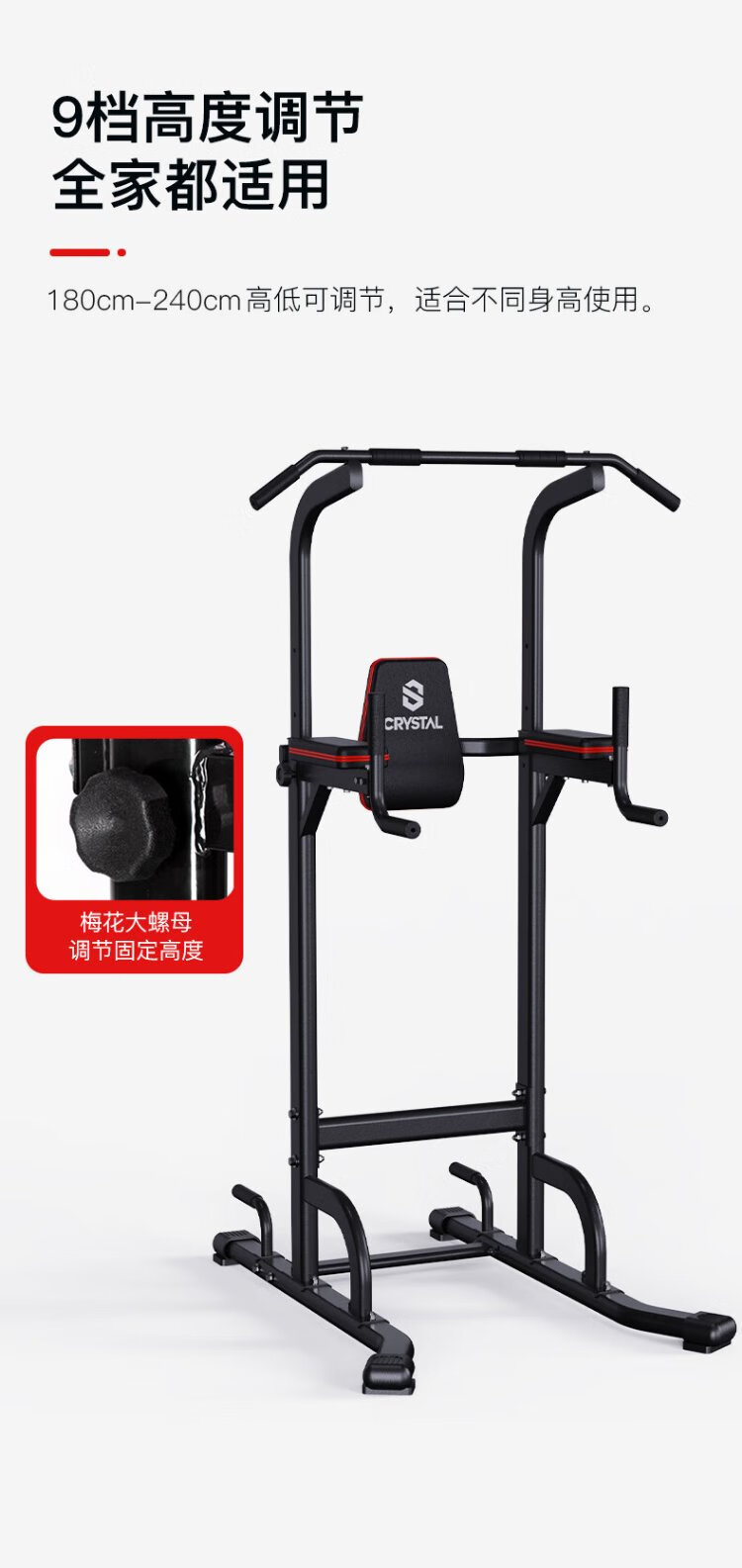 CRYSTAL single and parallel bars household adjustable pull-up device horizontal bar indoor multi-functional children's fitness equipment 9-speed adjustment eight-figure outsole thickened steel tube