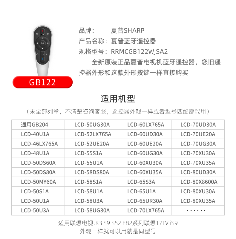 Sharp SHARP Sharp TV remote control original original GB122 smart voice Bluetooth 204 58s1A 60LX765A 55U1A U3A DS80A Lenovo remote control TV original GB122 (same appearance, buy directly)