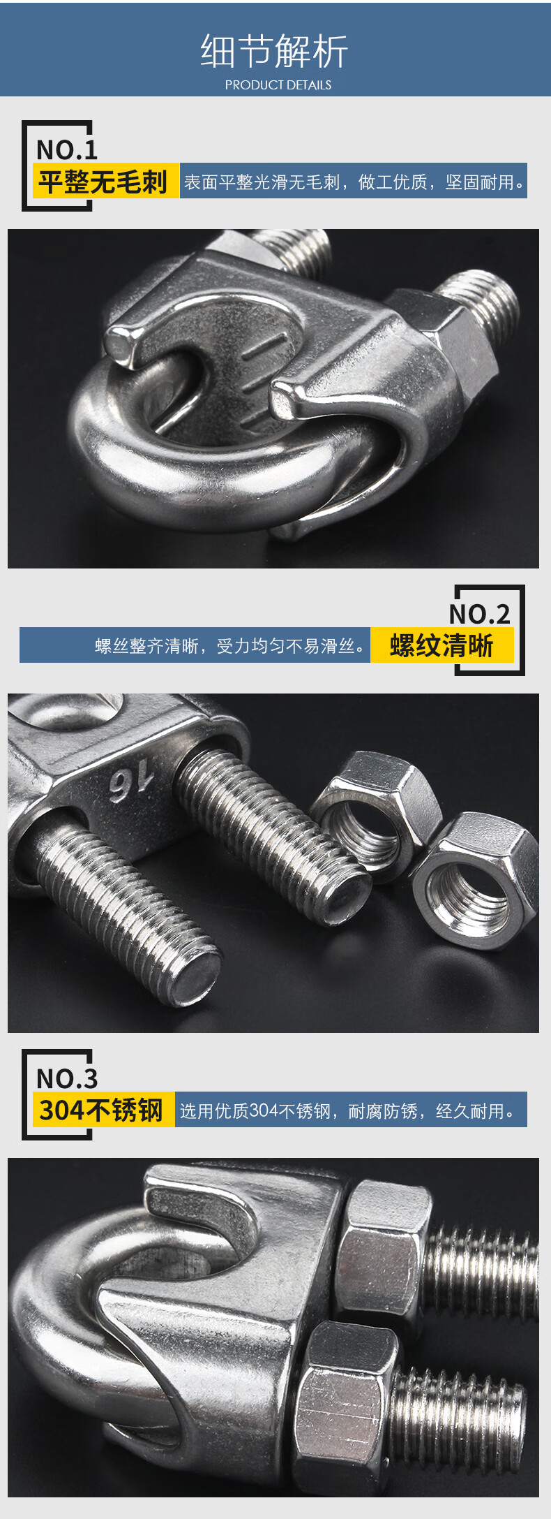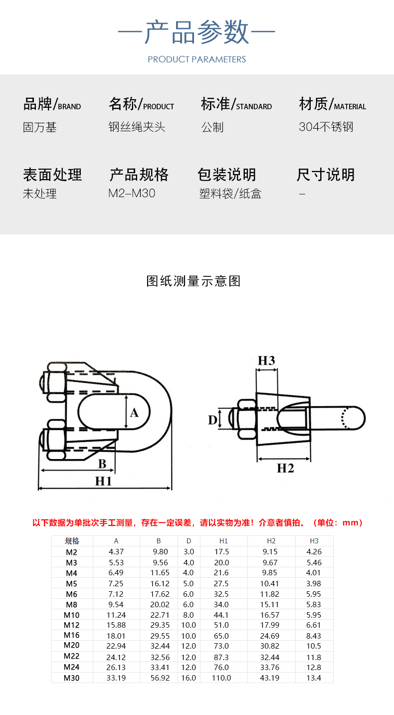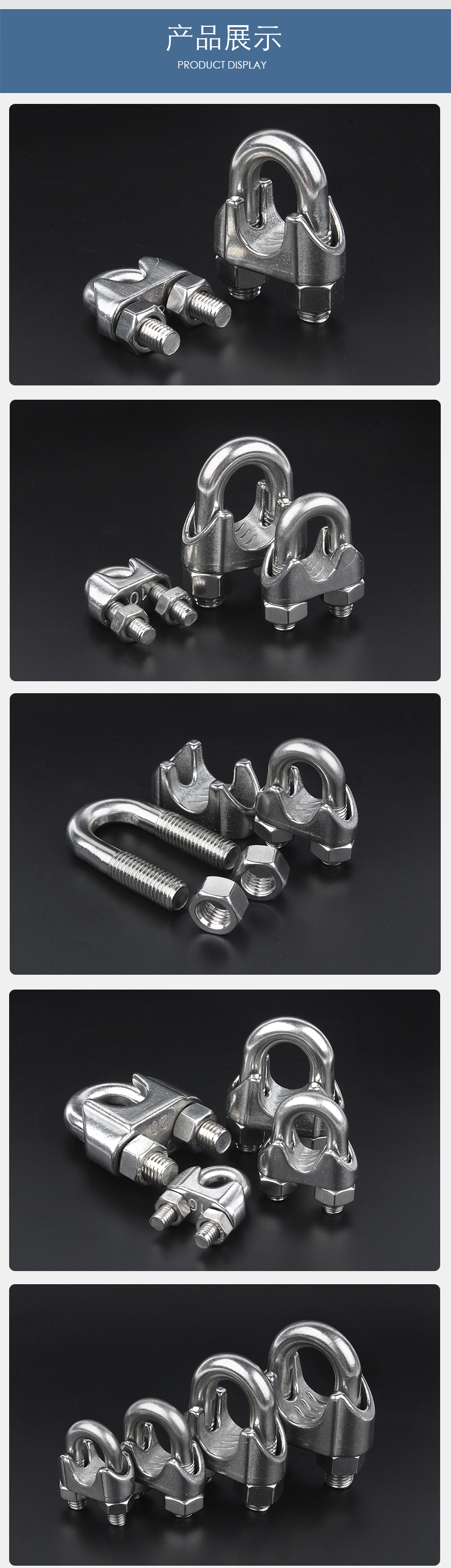Guwanji 304 stainless steel wire rope chuck chuck U-shaped clamp rolling head wire wire clamp clamp lock rope tightener 304 material M5 2 pieces