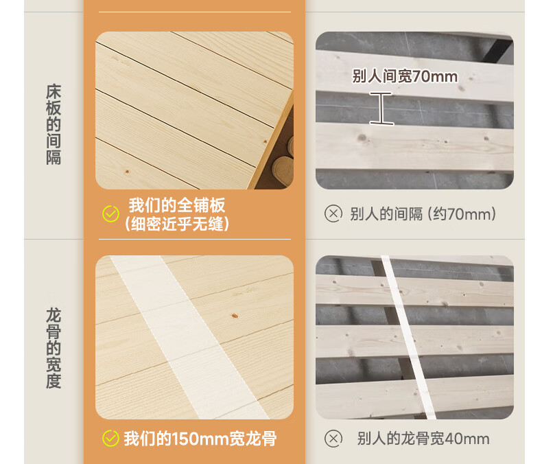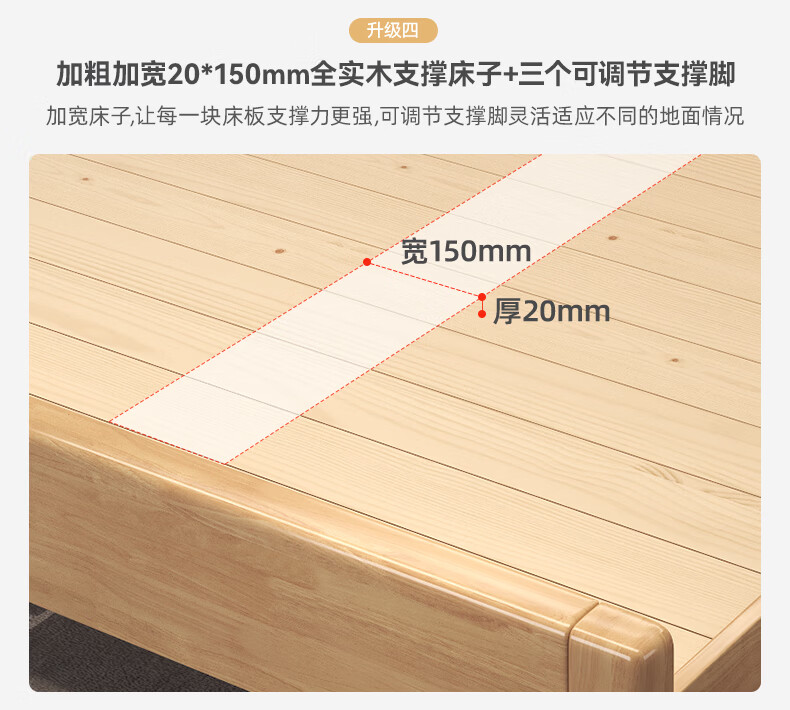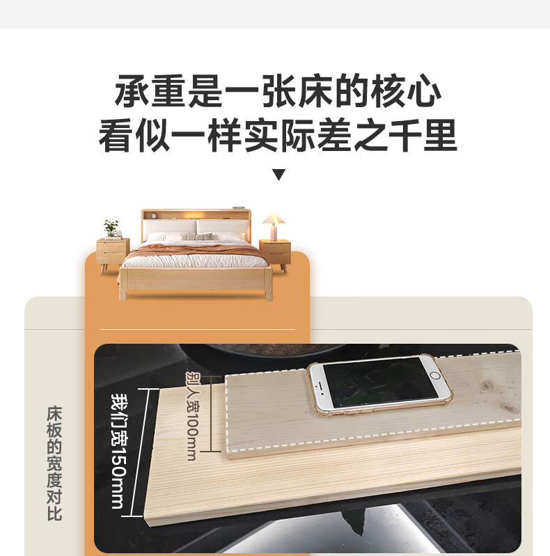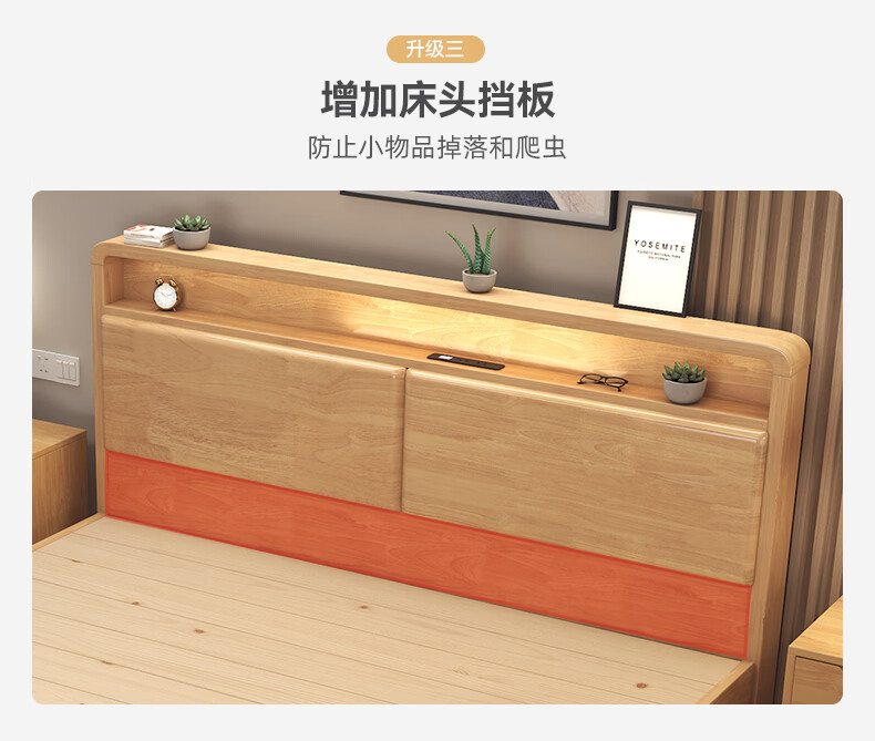 EON HOME bed Nordic solid wood bed double bed master bedroom storage wedding bed night light charging soft back bed soft back bed + 20cm coconut palm spring mattress 1.5*2.0 meters (fully covered large board frame bed)